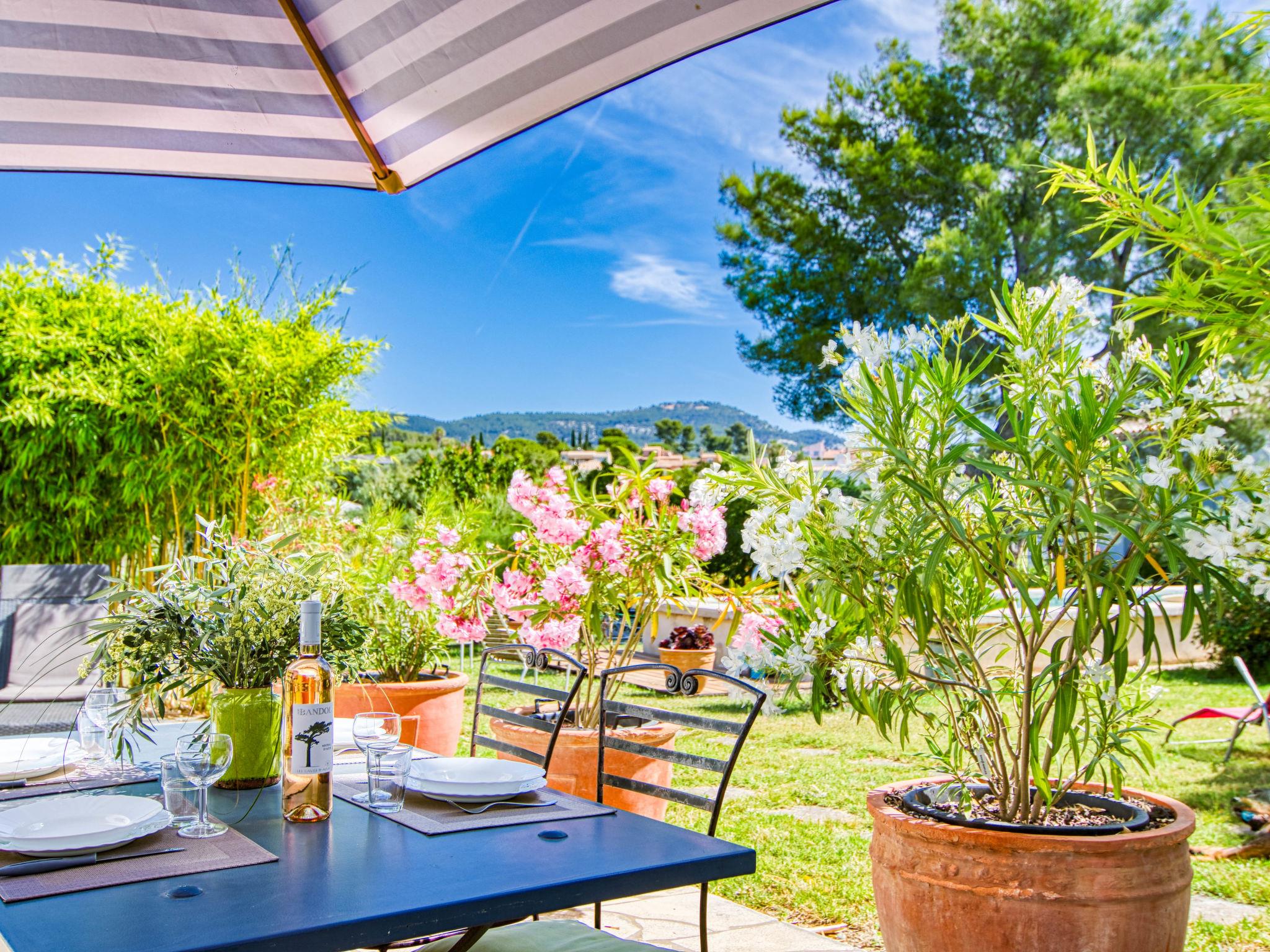 Beautiful 2-family house "Liska Blu". 2.8 km from the centre of Sanary-sur-Mer, 3.2 km from the centre of Bandol, 13 km from the centre of Toulon, 800 m from the sea. For shared use: beautiful garden 6'000 m2 (fenced) with plants and trees, meadow, swimming pool (10 x 3 m, depth 160 cm, seasonal availability: 01.Jan. - 31.Dec.) with salt-electrolysis pool-cleaning system. Outdoor shower, garden furniture. In the house: central heating system. Shop 1.4 km, supermarket 3 km, bus stop 50 m, railway station "Sanary- Ollioules" 4 km, sandy beach 800 m. Nearby attractions: Presqu'île de Giens, Calanques de Cassis, Porquerolles, Iles des Embiez, Presqu Ile du Gaou. Please note: the owner lives in the same residence. The owner has a dog.
