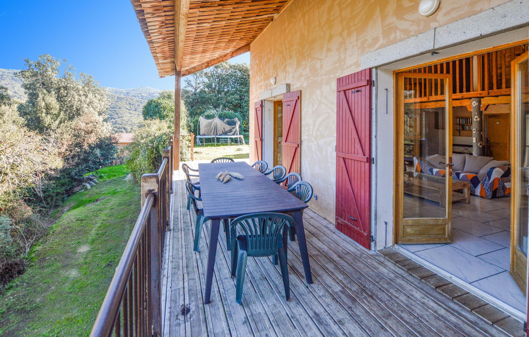 Erleben Sie dieses große Ferienhaus auf Korsika mit herrlichem Bergblick.