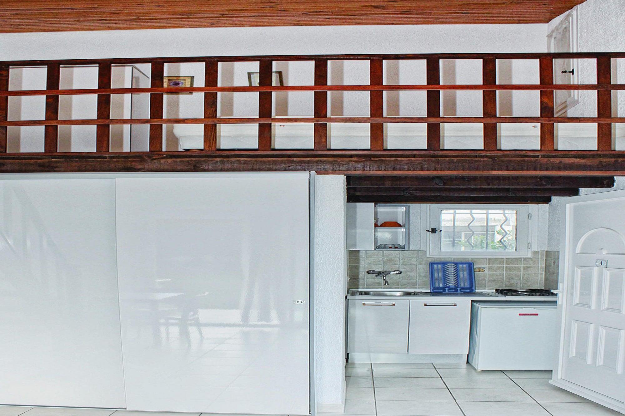 Ground floor: (open kitchen(hob(2 ring stoves, 4 ring stoves, electric), electric kettle, toaster, microwave, dishwasher, fridge-freezer), Living/bed room(double bed, TV, dining table, seating area), bedroom(double bed), bathroom(shower, washbasin, toilet)) tumble dryer(shared with other guests, paid), washing machine(shared with other guests, paid), balcony or terrace, air conditioning, parking, baby crib(paid)