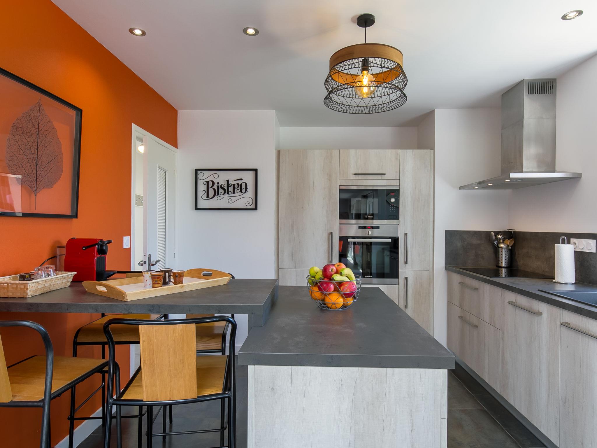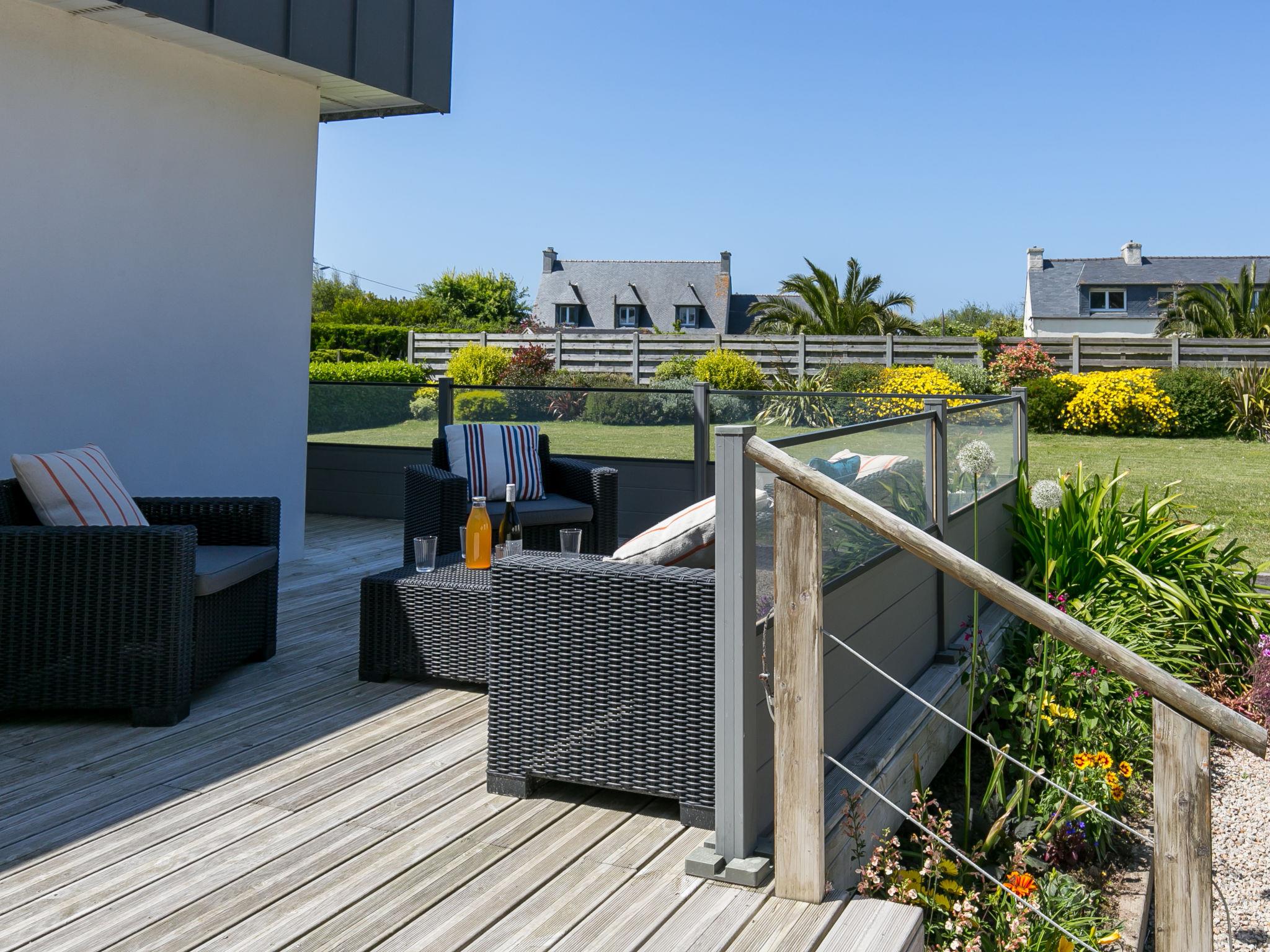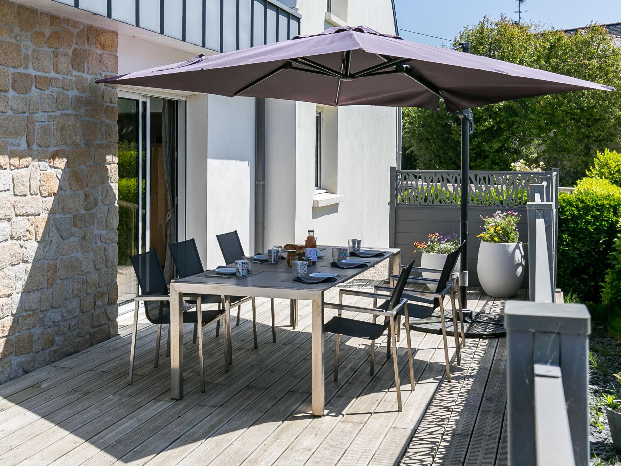 Modern, beautiful, comfortable single-family house "Maison du Venec". 550 m from the centre of Santec, 5 km from the centre of Roscoff, 5 km from the centre of Saint-Pol-de-Léon, in a quiet position in the residential district, 550 m from the sea, 550 m from the beach, in a cul-de-sac. Private: property 1'000 m2 (fenced), large, well-kept garden with lawn and wildlife garden, parking (for 3 cars) on the premises. Shop 5 km, grocery 600 m, supermarket 5 km, shopping centre 5.5 km, restaurant 3 km, bakery 450 m, bus stop "Mairie" 500 m, sandy beach "Plage du Pouldu" 550 m, thermal baths "Thalasso Roscoff" 5 km. Sports harbour 5.4 km, marina 6 km, golf course (9 hole) 19 km, surf school 2.8 km, sailing school 5 km, walking paths from the house 500 m. Nearby attractions: Plage du Dossen, Île de Siek 3 km, Jardin exotique Roscoff, Île de Batz 5.5 km, Carantec 15 km, Plage 14 km, Château de Kerjean 21 km, Morlaix 26 km. Hiking paths: GR34, sentier des douaniers 550 m.