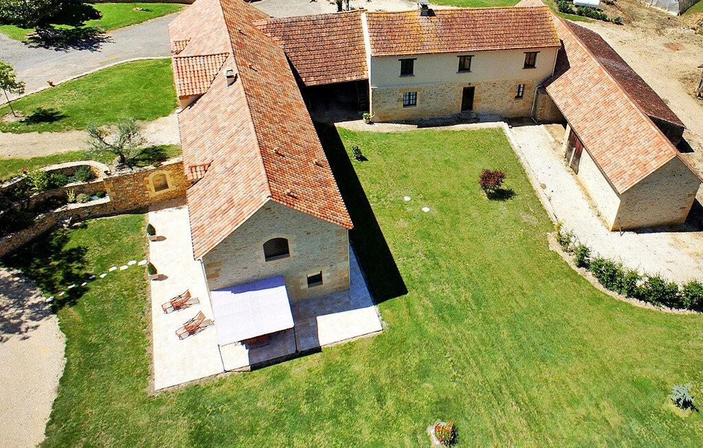 Die Außenbereiche bieten private gepflasterte Terrassen, Rasenflächen und eine überdachte Lounge im Freien. Der gemeinsame beheizte Pool sowie Pétanque, Beachvolleyball und eine Kinderschaukel stehen drei Ferienhäusern mit Platz für maximal 16 Personen zur Verfügung. Der Pool liegt etwa 200 m vom Mietobjekt entfernt und ist Teil des Grundstücks des Eigentümers, auf dem auch die Eltern in einem separaten Haus wohnen.