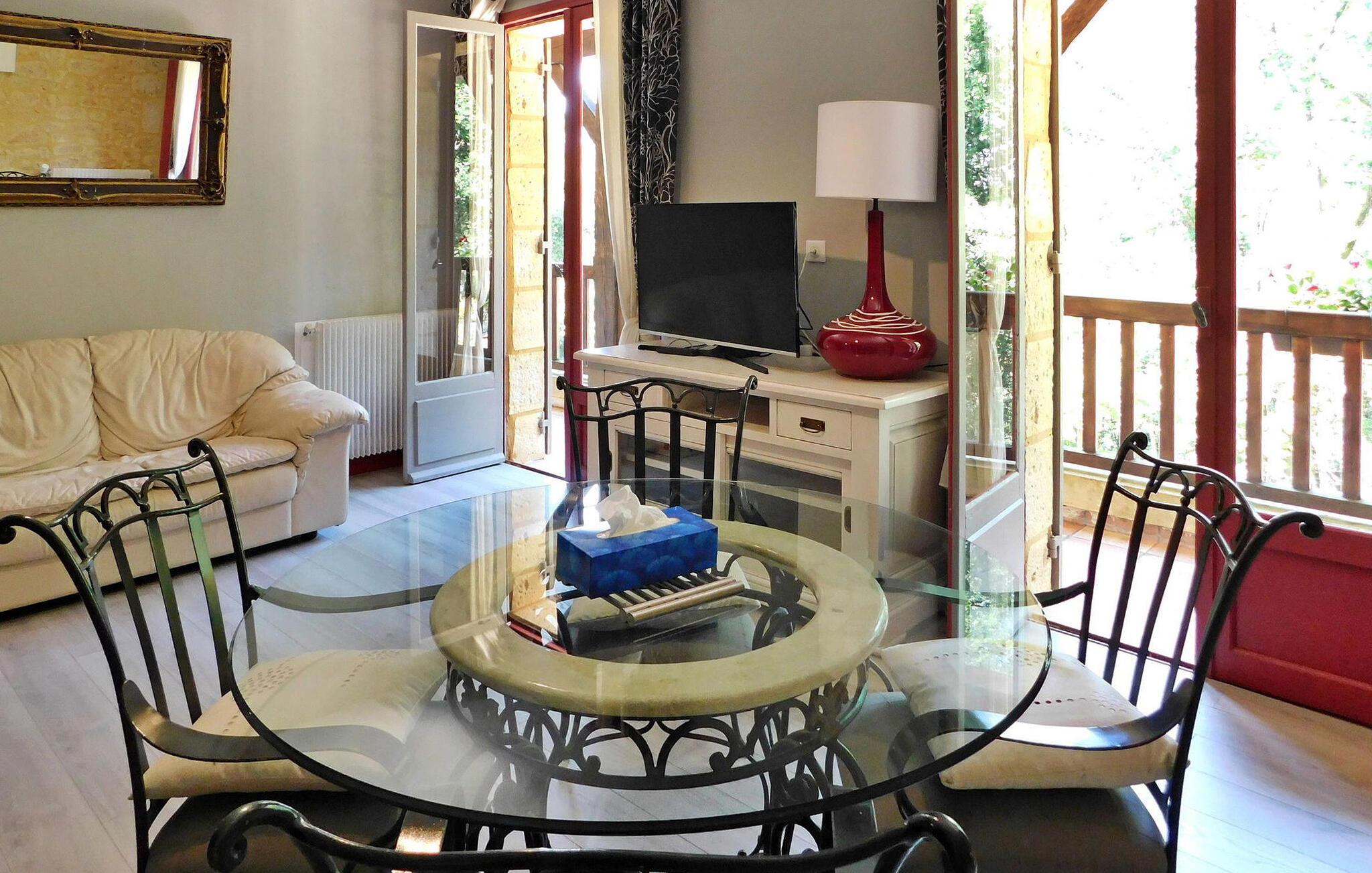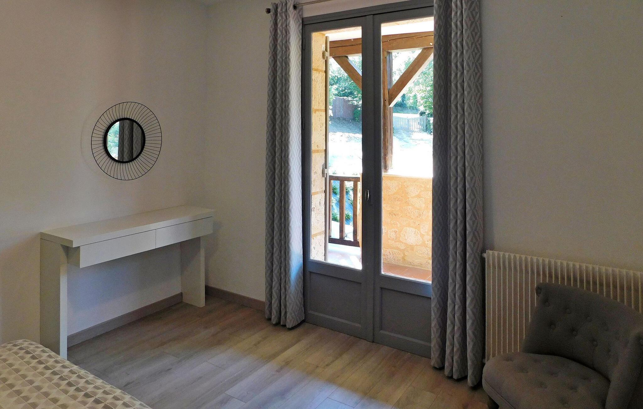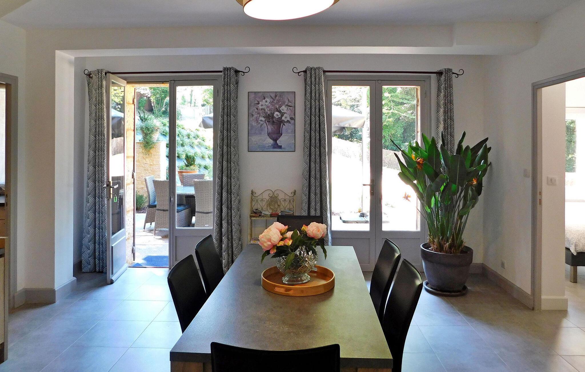 Erleben Sie einen herrlichen Urlaubsort in Sarlat, Dordogne, in einem typischen Périgourdine-Haus, das für die Unterbringung von Gästen in zwei angrenzenden Apartments (eines für 4 und eines für 6 Personen) konzipiert ist. Diese charmante Unterkunft verbindet Komfort mit einer malerischen Umgebung. Die erste Wohnung verfügt über einen Wohnbereich mit bequemen Sitzgelegenheiten und einem Essbereich sowie eine gut ausgestattete Küche und einen praktischen Keller. Es erwarten Sie drei Schlafzimmer, die jeweils einen ruhigen Rückzugsort bieten, ergänzt durch zwei Badezimmer. Im Obergeschoss verleiht ein Balkon dem Raum einen Hauch von Ruhe. Die angrenzende zweite Wohnung verfügt über einen Wohnbereich, der auf einen geräumigen Balkon führt, eine funktionale Küche, zwei Schlafzimmer und ein Duschbad, was den Komfort und die Bequemlichkeit erhöht. Genießen Sie draußen die Schönheit der Umgebung mit einer Hauptterrasse mit Plancha und einer Nebenterrasse für gemütliche Zusammenkünfte sowie einem ruhigen, bewaldeten Park. Genießen Sie den privaten, beheizten Pool, der aus Sicherheitsgründen umzäunt ist und mit einem Teppich in Kunstrasenoptik sowie Liegestühlen und Sonnenschirmen zum Entspannen ausgestattet ist. Bitte beachten Sie, dass die Eigentümer vor Ort in einem unabhängigen Haus an anderer Stelle auf dem Grundstück wohnen, um sicherzustellen, dass Ihr Aufenthalt unterstützt wird und gleichzeitig Ihre Privatsphäre respektiert wird. Tauchen Sie ein in den Charme von Sarlat und genießen Sie den Komfort und die Ruhe dieses entzückenden Ferienhauses, in dem sich Entspannung und landschaftliche Schönheit zu unvergesslichen Momenten vereinen. Das Anwesen liegt auf den Höhen von Sarlat, nicht weit vom Weiler Temniac entfernt, eine einzige Straße führt schnell ins Stadtzentrum (1,5 km).