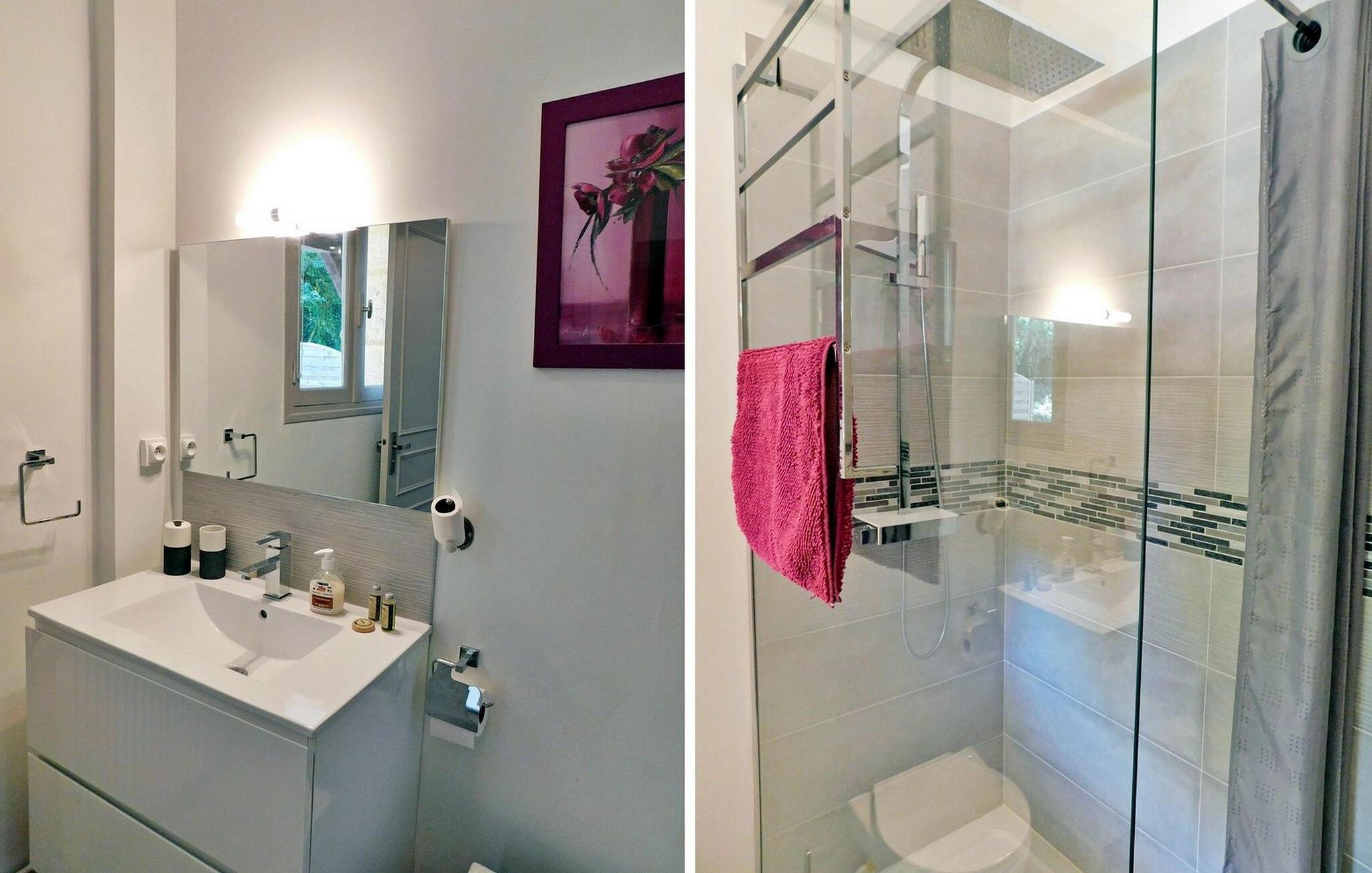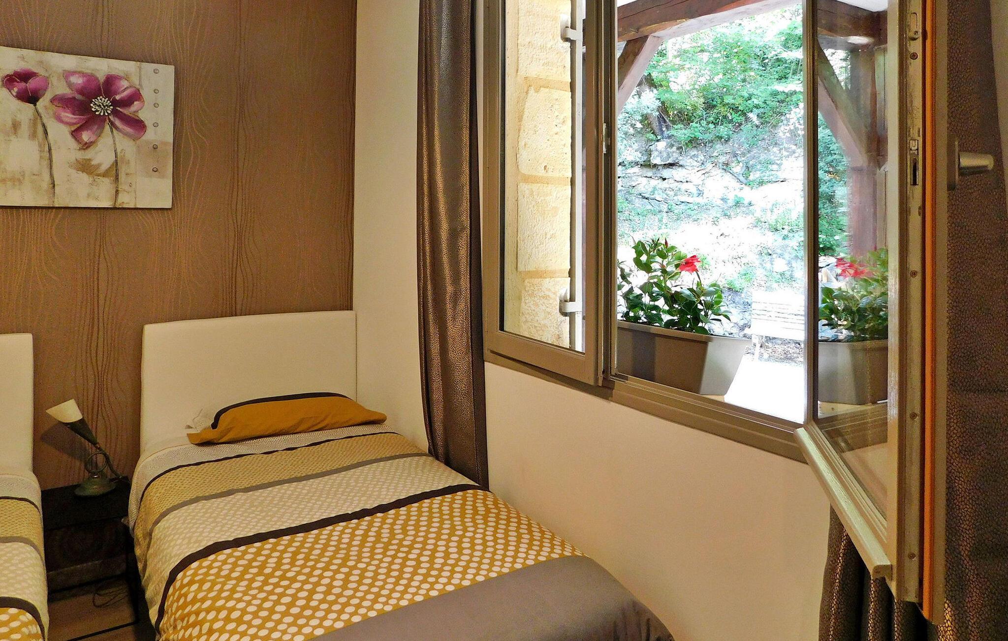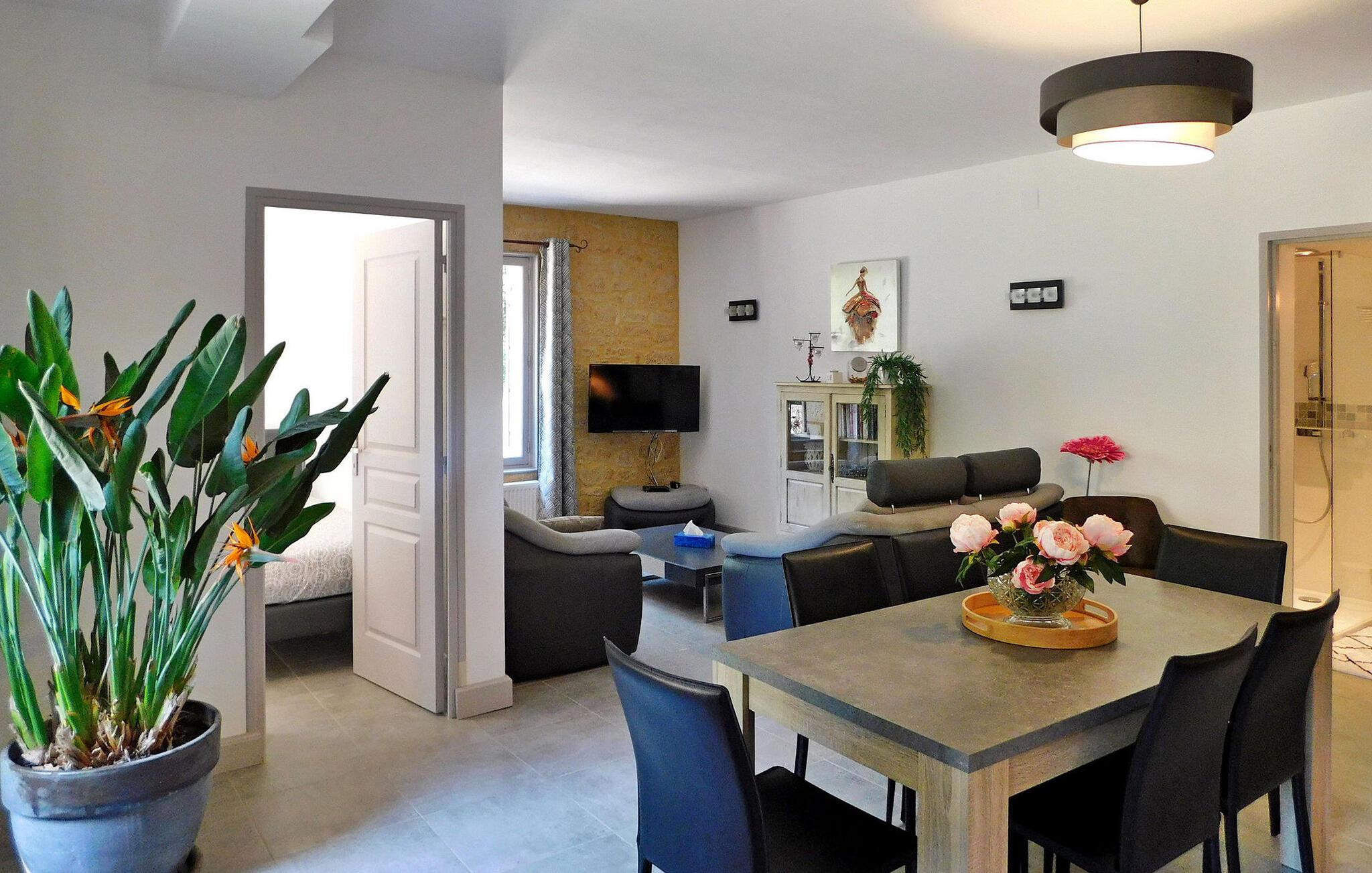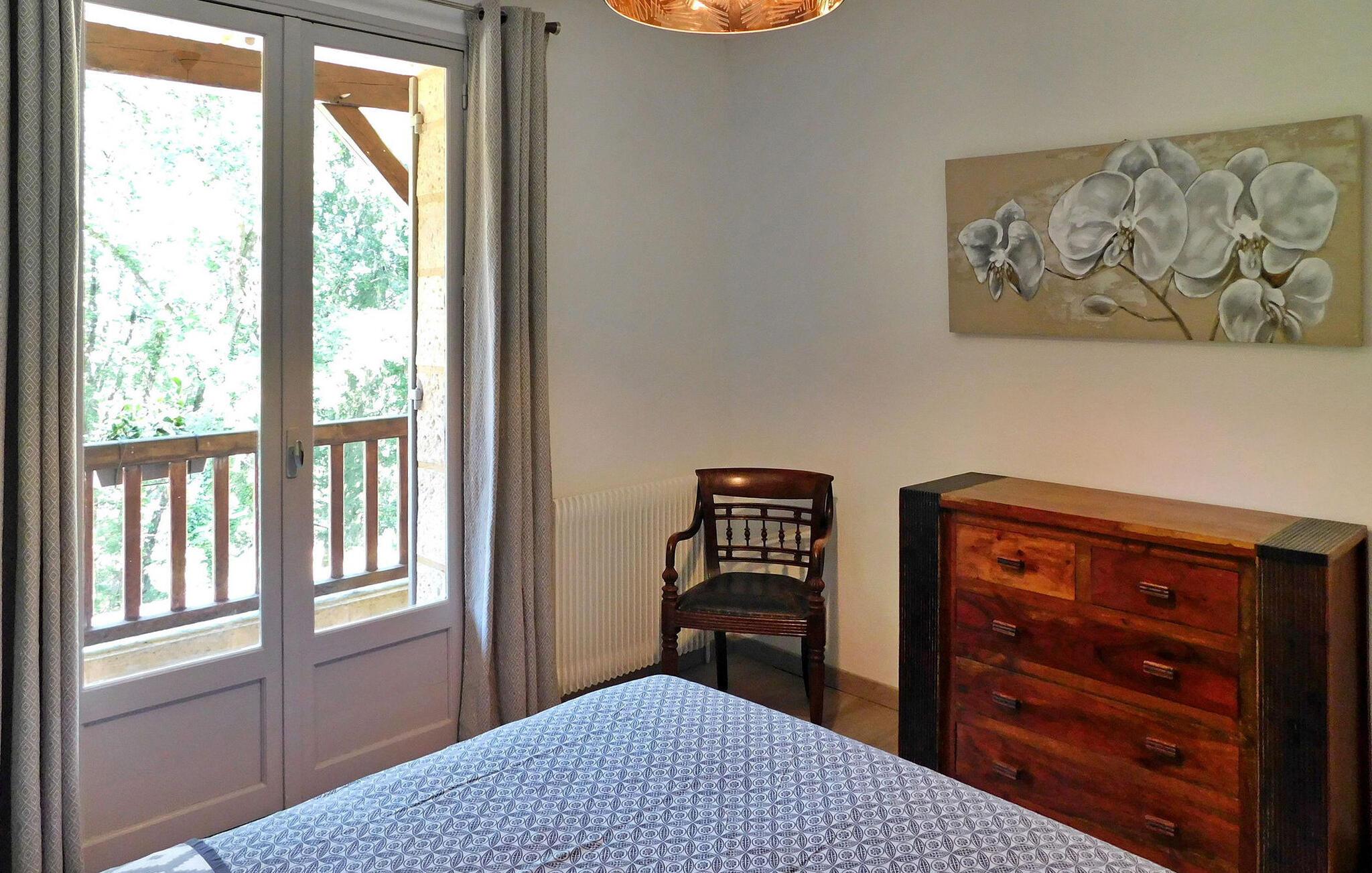 Erleben Sie einen herrlichen Urlaubsort in Sarlat, Dordogne, in einem typischen Périgourdine-Haus, das für die Unterbringung von Gästen in zwei angrenzenden Apartments (eines für 4 und eines für 6 Personen) konzipiert ist. Diese charmante Unterkunft verbindet Komfort mit einer malerischen Umgebung. Die erste Wohnung verfügt über einen Wohnbereich mit bequemen Sitzgelegenheiten und einem Essbereich sowie eine gut ausgestattete Küche und einen praktischen Keller. Es erwarten Sie drei Schlafzimmer, die jeweils einen ruhigen Rückzugsort bieten, ergänzt durch zwei Badezimmer. Im Obergeschoss verleiht ein Balkon dem Raum einen Hauch von Ruhe. Die angrenzende zweite Wohnung verfügt über einen Wohnbereich, der auf einen geräumigen Balkon führt, eine funktionale Küche, zwei Schlafzimmer und ein Duschbad, was den Komfort und die Bequemlichkeit erhöht. Genießen Sie draußen die Schönheit der Umgebung mit einer Hauptterrasse mit Plancha und einer Nebenterrasse für gemütliche Zusammenkünfte sowie einem ruhigen, bewaldeten Park. Genießen Sie den privaten, beheizten Pool, der aus Sicherheitsgründen umzäunt ist und mit einem Teppich in Kunstrasenoptik sowie Liegestühlen und Sonnenschirmen zum Entspannen ausgestattet ist. Bitte beachten Sie, dass die Eigentümer vor Ort in einem unabhängigen Haus an anderer Stelle auf dem Grundstück wohnen, um sicherzustellen, dass Ihr Aufenthalt unterstützt wird und gleichzeitig Ihre Privatsphäre respektiert wird. Tauchen Sie ein in den Charme von Sarlat und genießen Sie den Komfort und die Ruhe dieses entzückenden Ferienhauses, in dem sich Entspannung und landschaftliche Schönheit zu unvergesslichen Momenten vereinen. Das Anwesen liegt auf den Höhen von Sarlat, nicht weit vom Weiler Temniac entfernt, eine einzige Straße führt schnell ins Stadtzentrum (1,5 km).