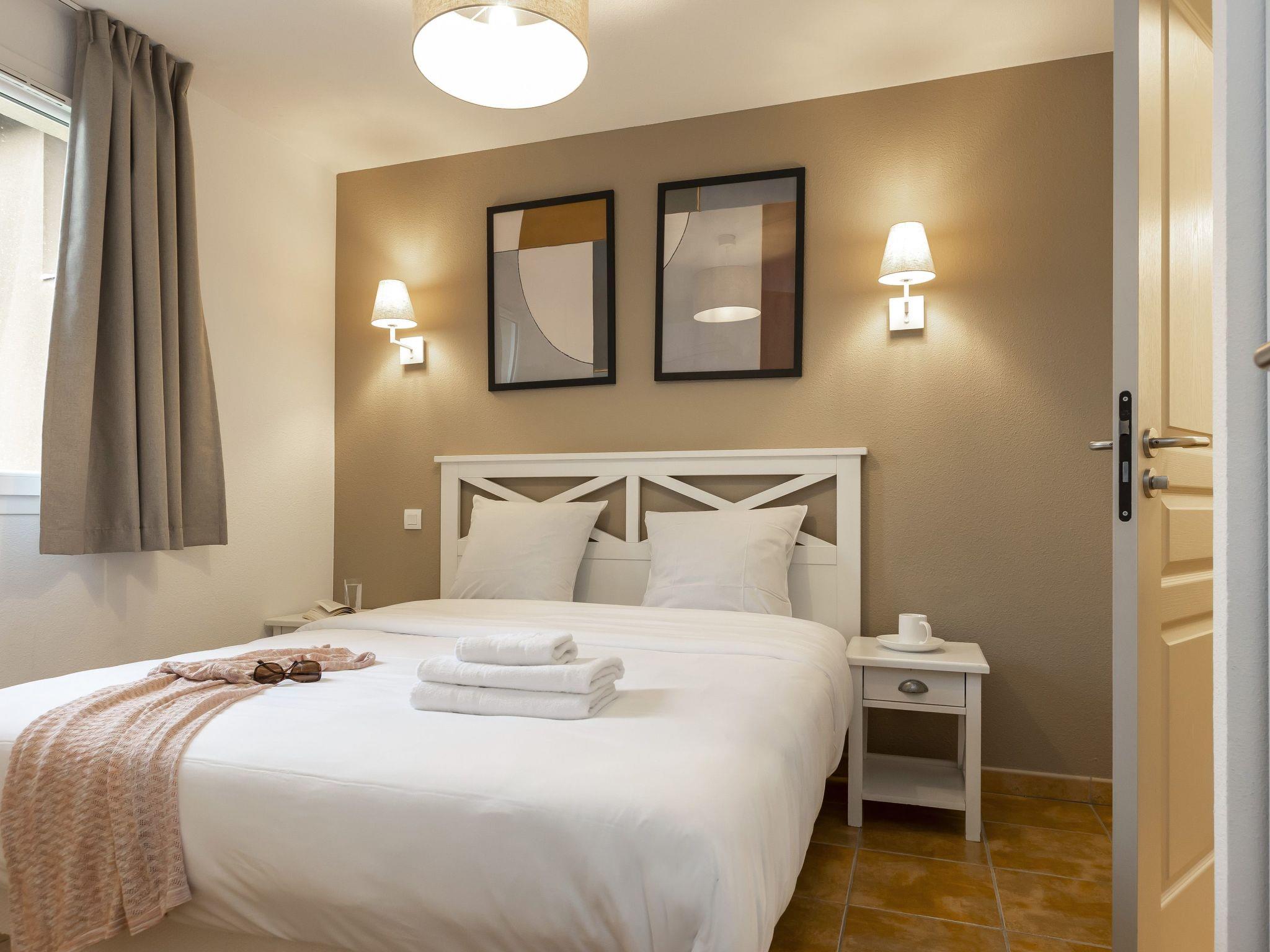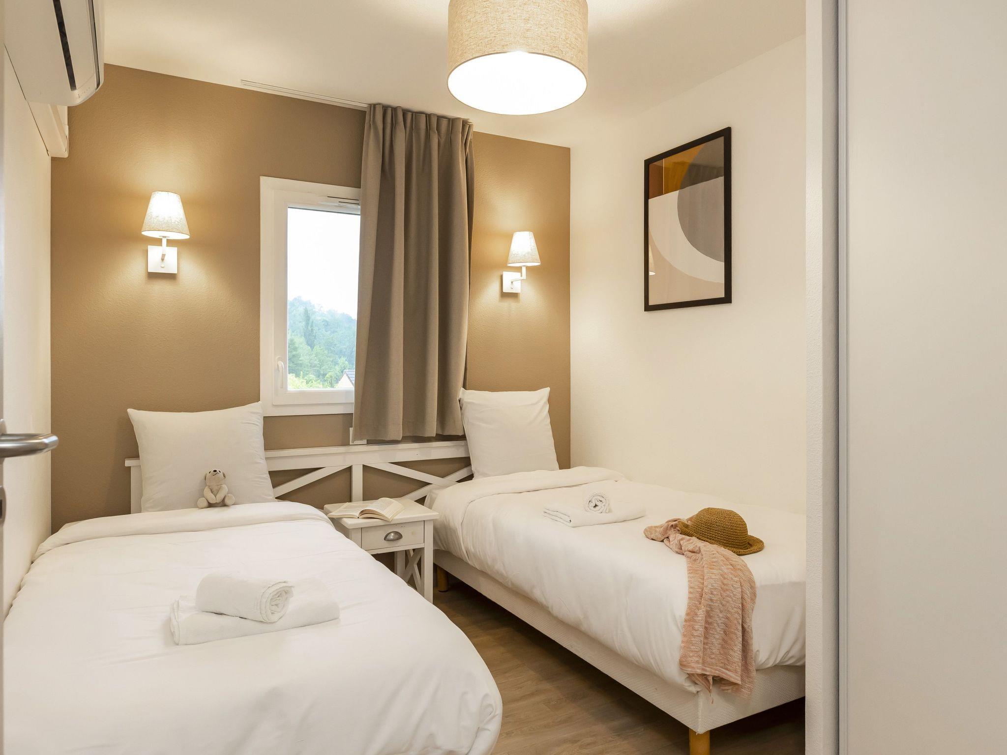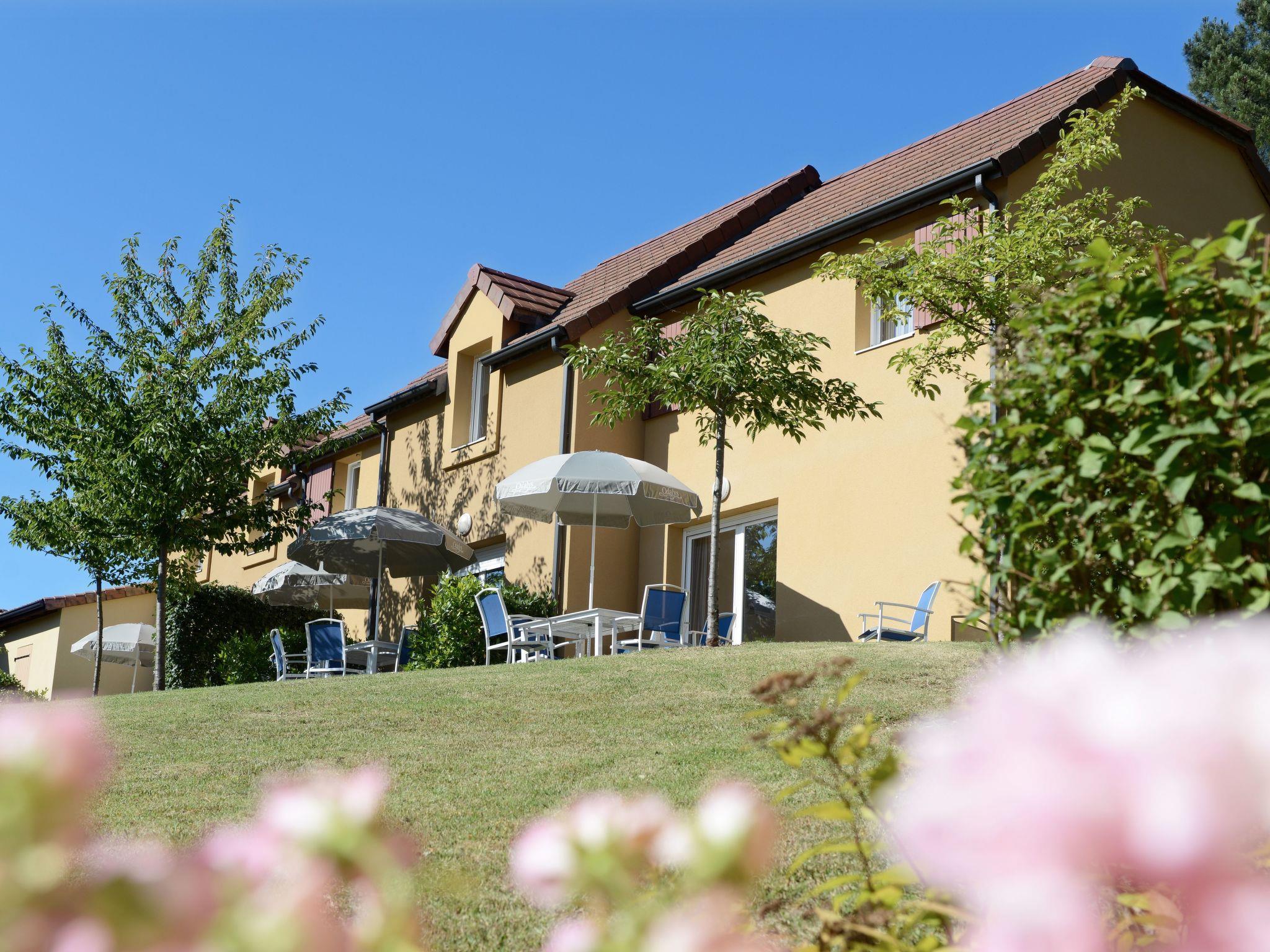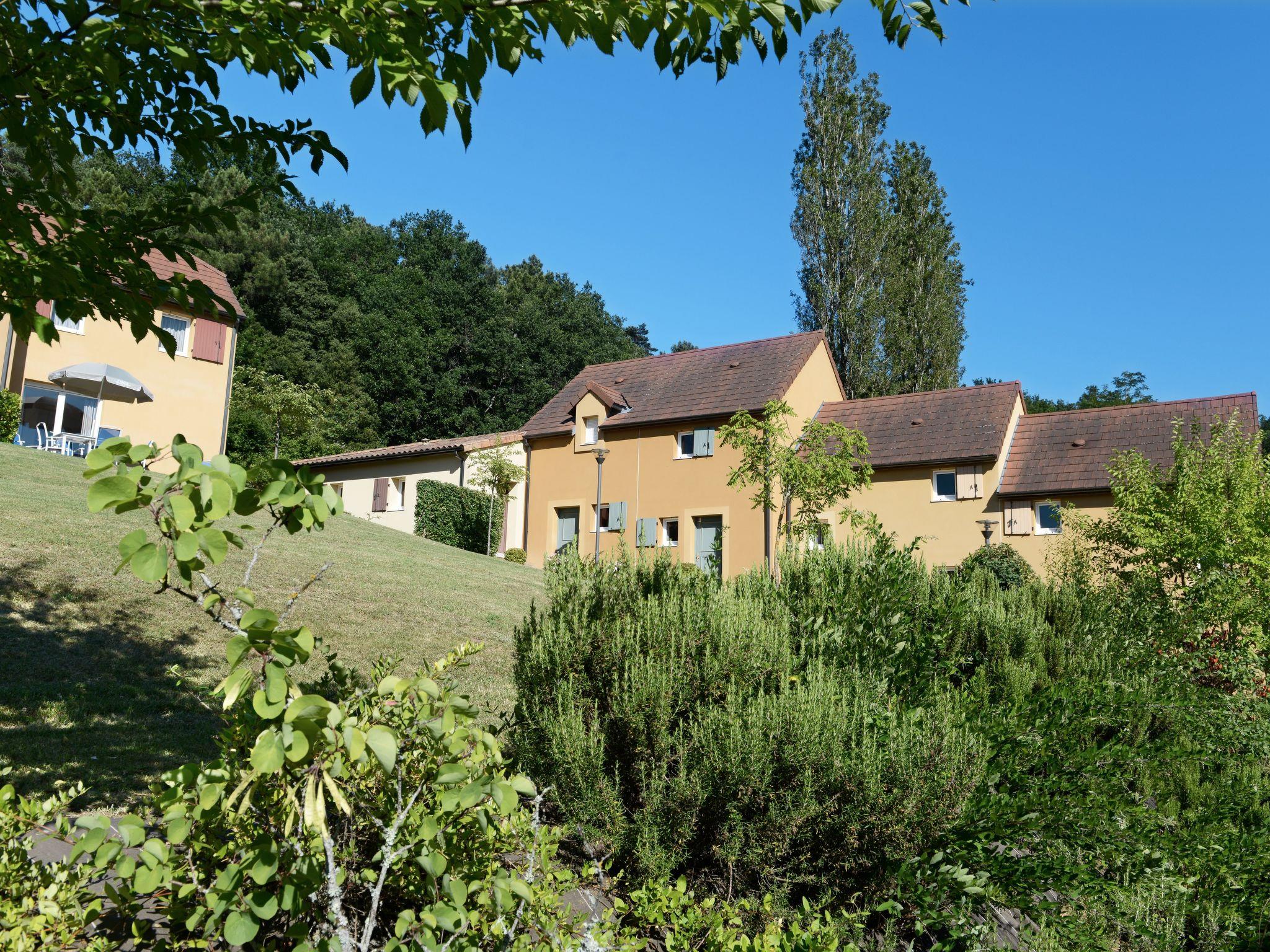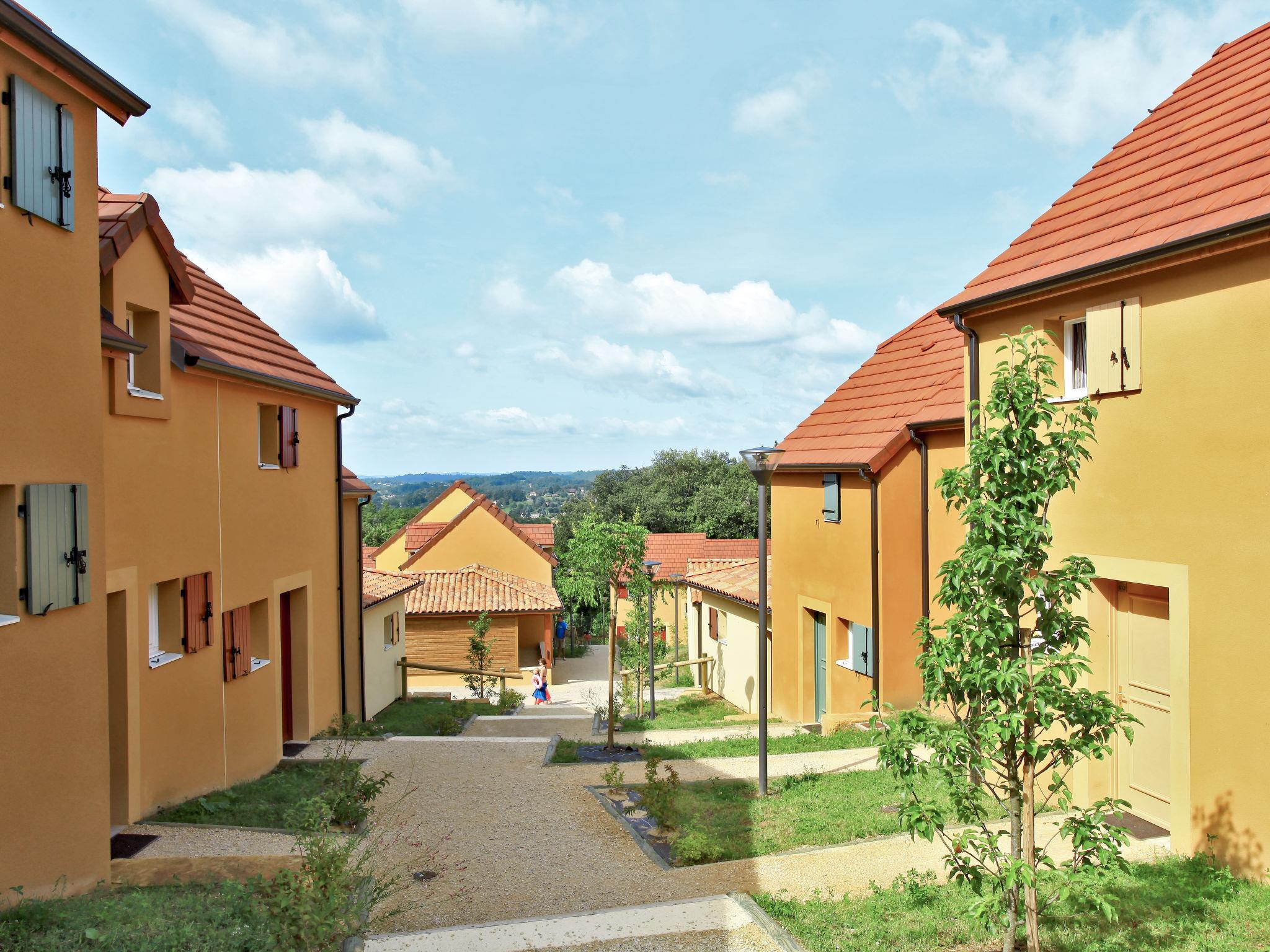 "Odalys Référence Les Côteaux de Sarlat", 2-room terraced house 30 m2. Bright, cosy furnishings: living/sleeping room with 1 sofabed, 1 pull-out bed, dining table and satellite TV. Exit to the terrace. 1 room with 1 french bed. Kitchenette (dishwasher, 2 ceramic glass hob hotplates, kettle, microwave, electric coffee machine). Sep. WC, bath or shower. Electric heating. Parquet floors. Terrace. Terrace furniture. Facilities: children's high chair, baby cot. Internet (WiFi, free). Please note: non-smoking house. Maximum 1 pet/ dog allowed. Smoke alarm.