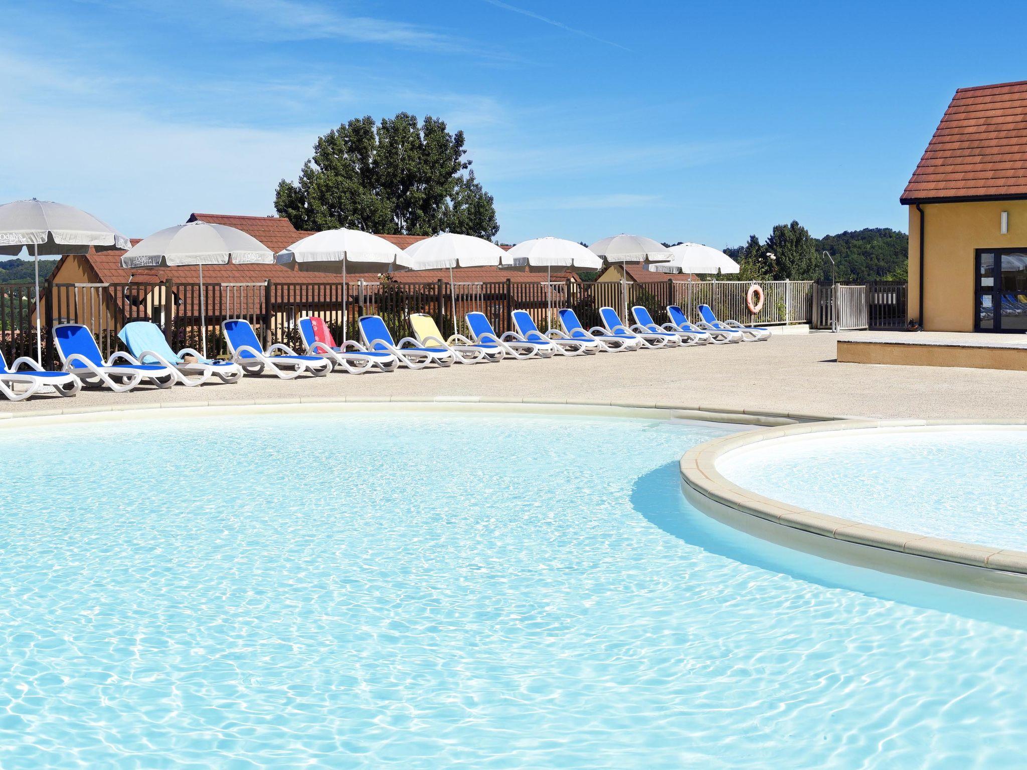 Child friendly resort "Les Coteaux de Sarlat". 100 houses in the residence. 2.5 km from the centre of Sarlat-la-Caneda, on the outskirts, 50 km from the centre of Brive, on a slope. For shared use: property 30'000 m2 (fenced) with lawn and trees, swimming pool heated (17 x 7 m, depth 100 - 140 cm, seasonal availability: 01.May. - 30.Sep.). Children's pool, table tennis, basketball, boccia, children's playground. In the complex: reception, sauna (extra). Fitness room, steam room (extra). Washing machine, tumble dryer (for shared use, extra). Bread roll service. Parking on the premises. Shop 1.7 km. Minigolf 100 m. Please note: Loading and unloading of baggage is possible at the holiday house. The photograph shows a typical example. The holiday properties may differ in living space, floorplan, equipment and furnishing.