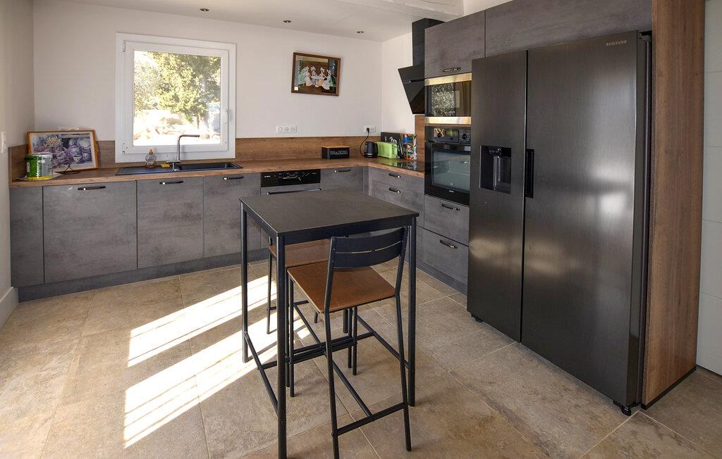Willkommen in diesem einladenden Urlaubsdomizil, in dem Sie den Charme und die Ruhe der Provence in vollen Zügen genießen werden. Experimentieren Sie in der modernen Küche mit frischen Kräutern und servieren Sie Ihre Mahlzeiten am großen Esstisch. Entspannen Sie sich auf dem gemütlichen Sofa, vertiefen Sie sich in ein gutes Buch oder veranstalten Sie gesellige Spieleabende.