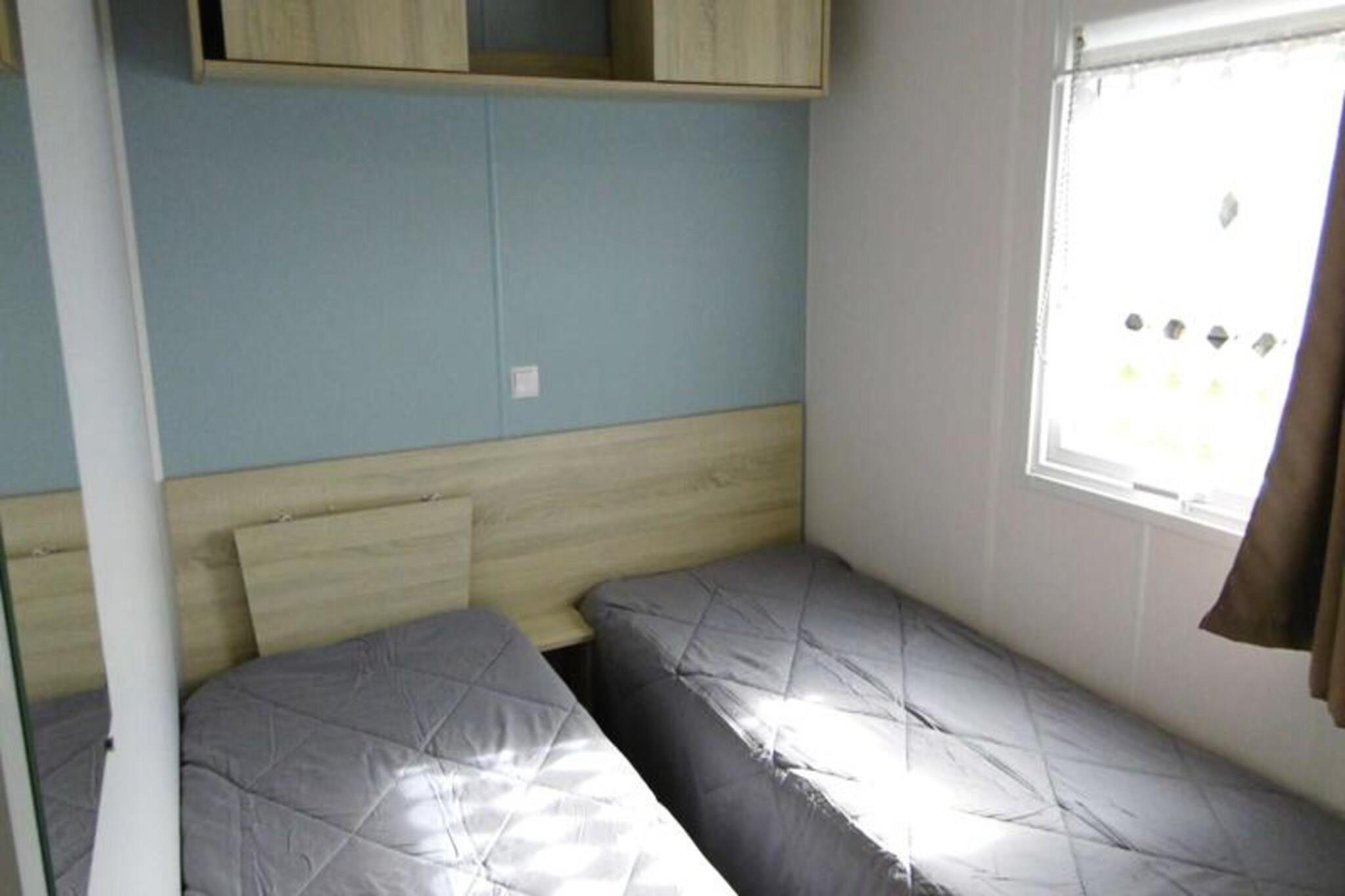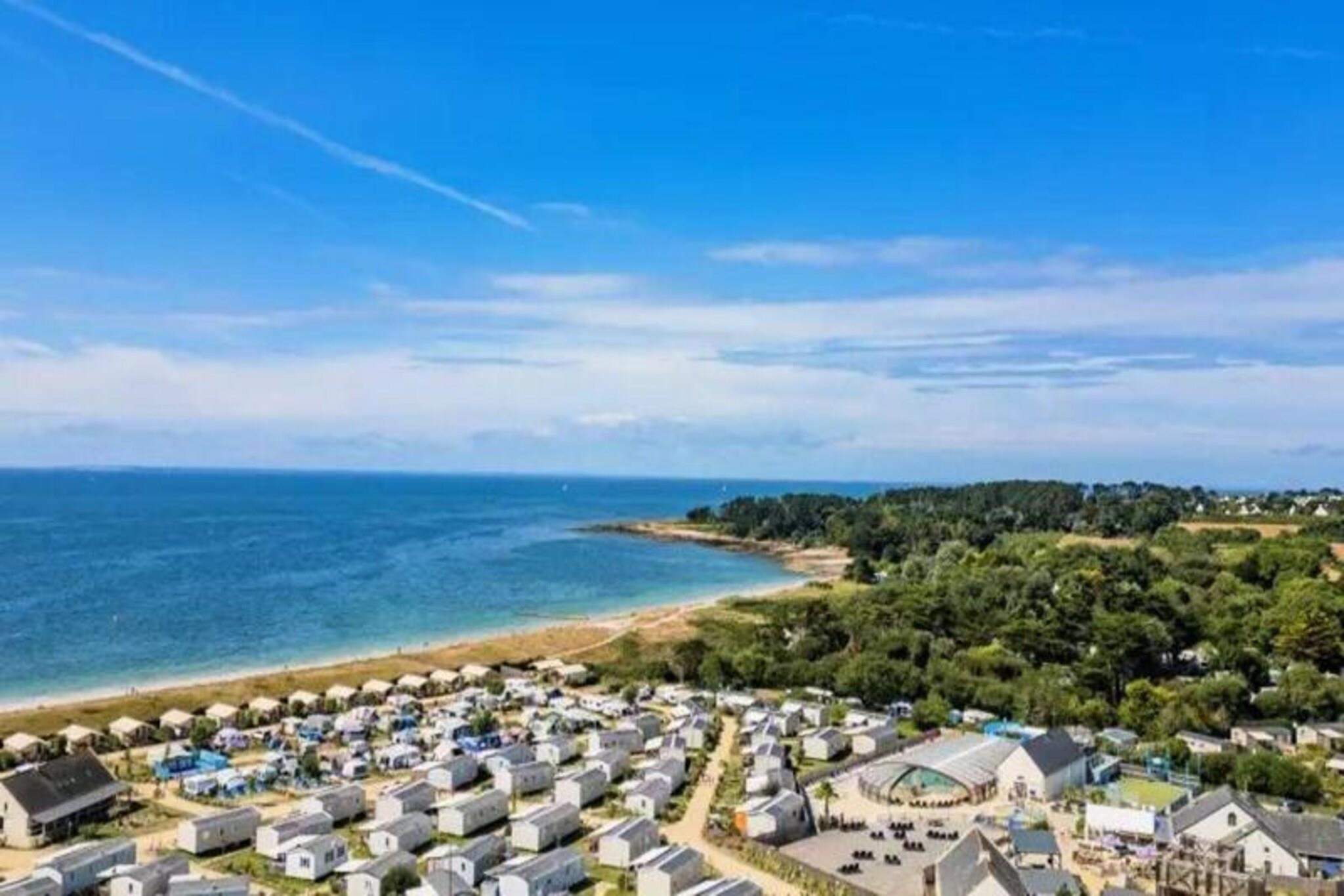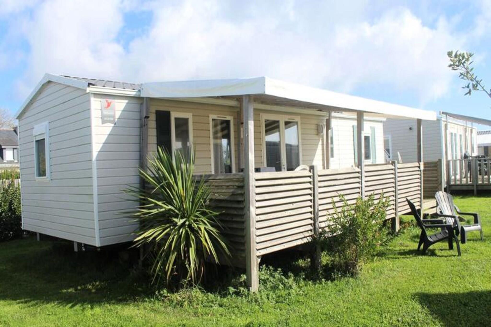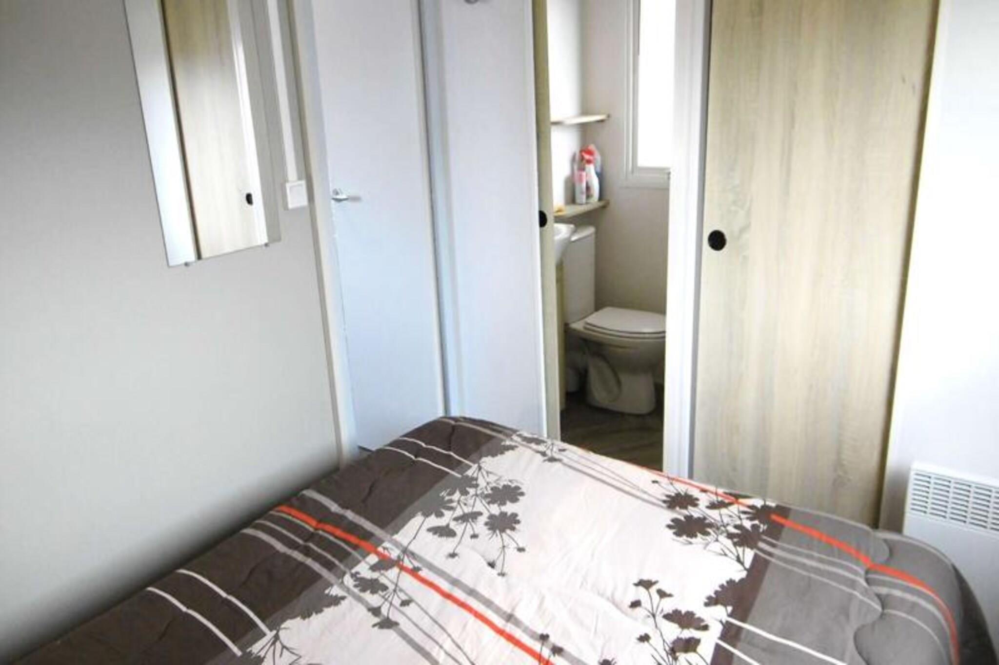 On the serene shores of the Atlantic, this charming 40 m² Trigano Intuition 40 mobile home offers a delightful escape in the heart of St Jacques. Set within a pedestrianized campsite with direct access to the ocean, this property invites you to unwind amidst the natural beauty of Brittany. Whether you’re seeking tranquil mornings by the sea or fun-filled afternoons at the campsite’s aquatic area, this destination promises a memorable getaway. Inside, the mobile home is thoughtfully designed to accommodate up to six guests. The cozy living room with a comfortable sofa leads to a fully equipped kitchenette, perfect for preparing fresh local seafood. The master bedroom features a double bed and an en-suite bathroom, while two additional bedrooms each offer two single beds. A second bathroom and separate toilet ensure convenience for families or groups. Modern amenities such as a refrigerator, microwave, and coffee maker provide all the comforts of home. Step outside onto the spacious 18.5 m² terrace, where 15 m² is covered for year-round enjoyment. Relax with a good book on the garden furniture or savor a delicious meal prepared on the gas barbecue. The campsite itself boasts a heated pool with a slide, a spa with a jacuzzi and sauna, and a variety of activities including yoga, fitness classes, and kids’ and teens’ clubs during the summer months. With its idyllic location, direct beach access, and a wealth of on-site amenities, this mobile home is the perfect choice for those seeking a blend of relaxation and adventure. From exploring the rugged coastline to enjoying the vibrant campsite atmosphere, your Breton escape awaits.