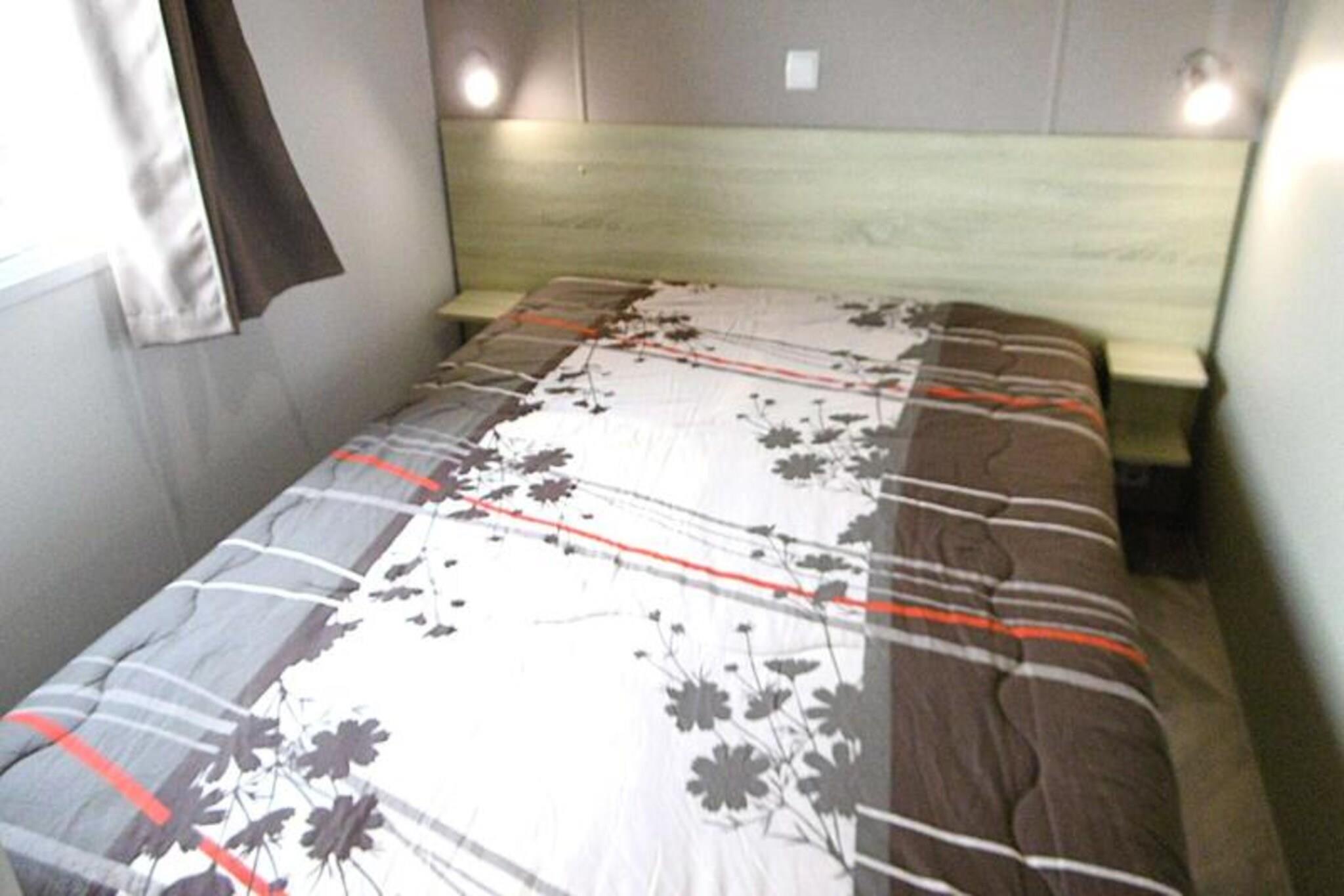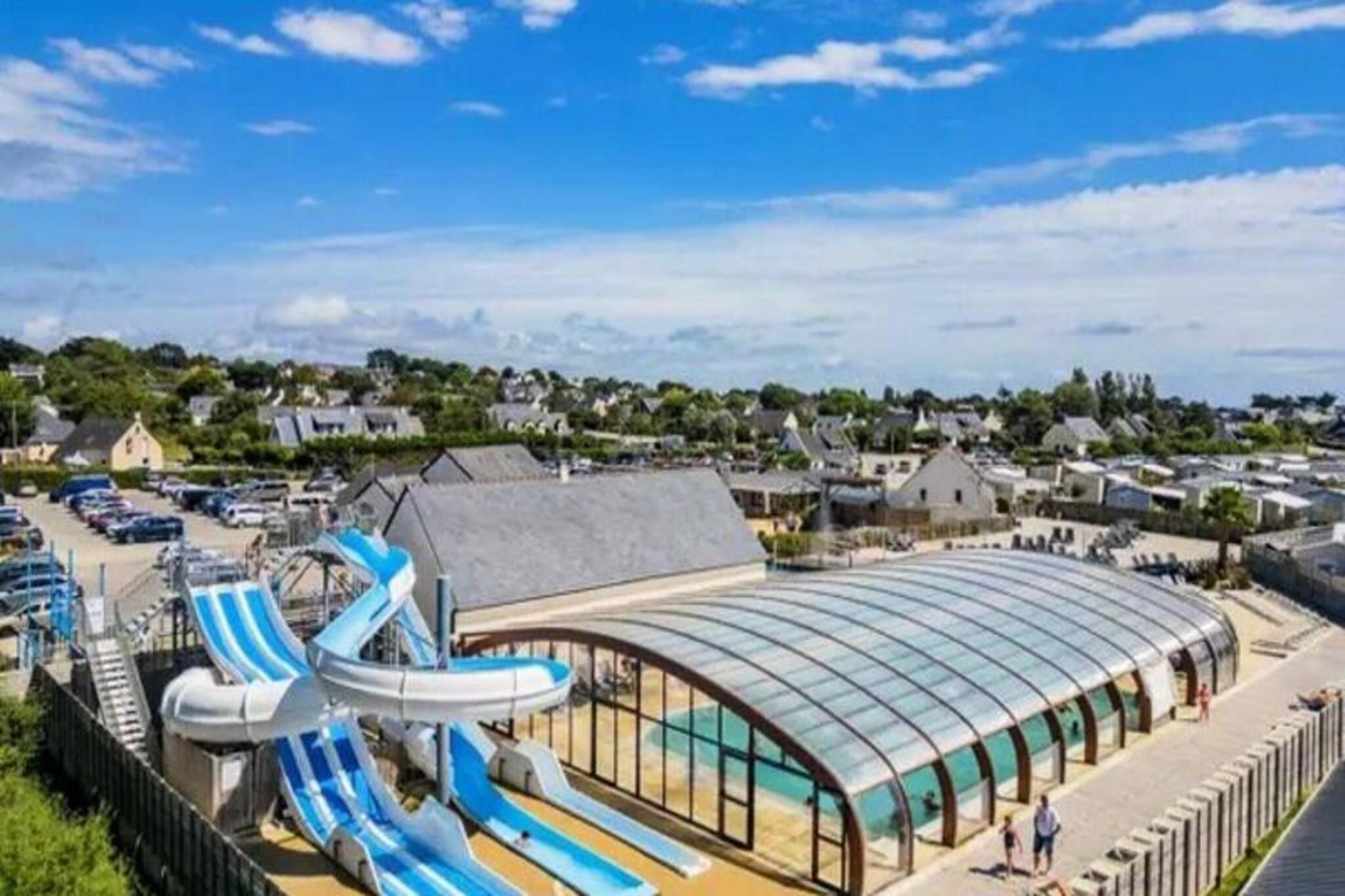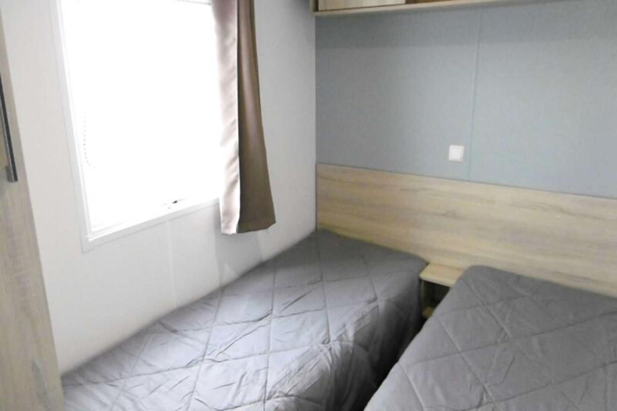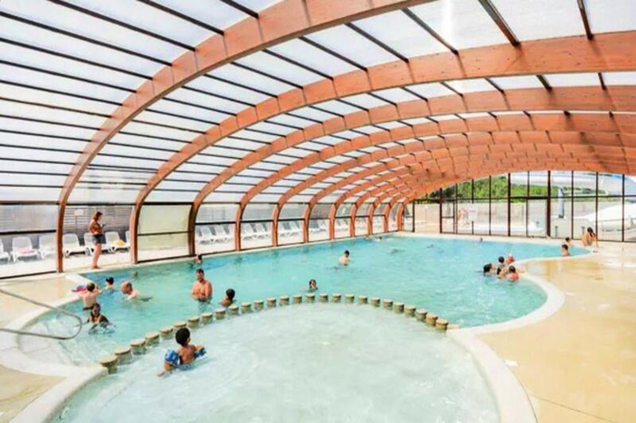 On the serene shores of the Atlantic, this charming 40 m² Trigano Intuition 40 mobile home offers a delightful escape in the heart of St Jacques. Set within a pedestrianized campsite with direct access to the ocean, this property invites you to unwind amidst the natural beauty of Brittany. Whether you’re seeking tranquil mornings by the sea or fun-filled afternoons at the campsite’s aquatic area, this destination promises a memorable getaway. Inside, the mobile home is thoughtfully designed to accommodate up to six guests. The cozy living room with a comfortable sofa leads to a fully equipped kitchenette, perfect for preparing fresh local seafood. The master bedroom features a double bed and an en-suite bathroom, while two additional bedrooms each offer two single beds. A second bathroom and separate toilet ensure convenience for families or groups. Modern amenities such as a refrigerator, microwave, and coffee maker provide all the comforts of home. Step outside onto the spacious 18.5 m² terrace, where 15 m² is covered for year-round enjoyment. Relax with a good book on the garden furniture or savor a delicious meal prepared on the gas barbecue. The campsite itself boasts a heated pool with a slide, a spa with a jacuzzi and sauna, and a variety of activities including yoga, fitness classes, and kids’ and teens’ clubs during the summer months. With its idyllic location, direct beach access, and a wealth of on-site amenities, this mobile home is the perfect choice for those seeking a blend of relaxation and adventure. From exploring the rugged coastline to enjoying the vibrant campsite atmosphere, your Breton escape awaits.