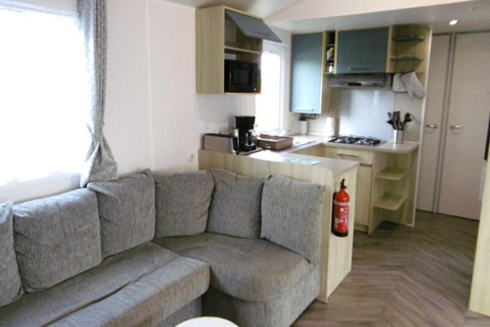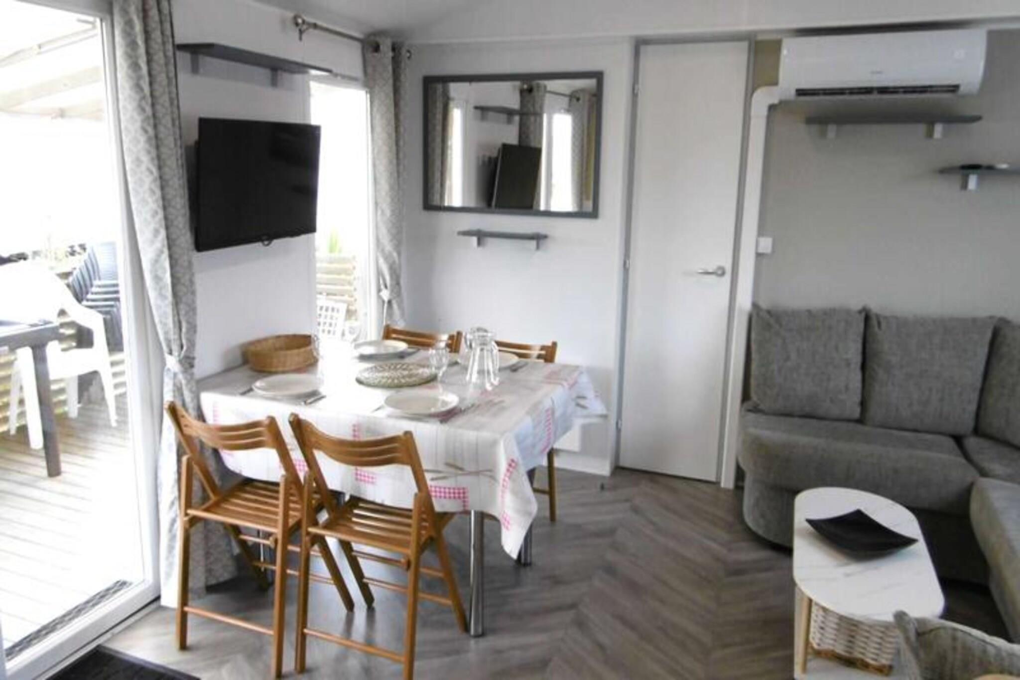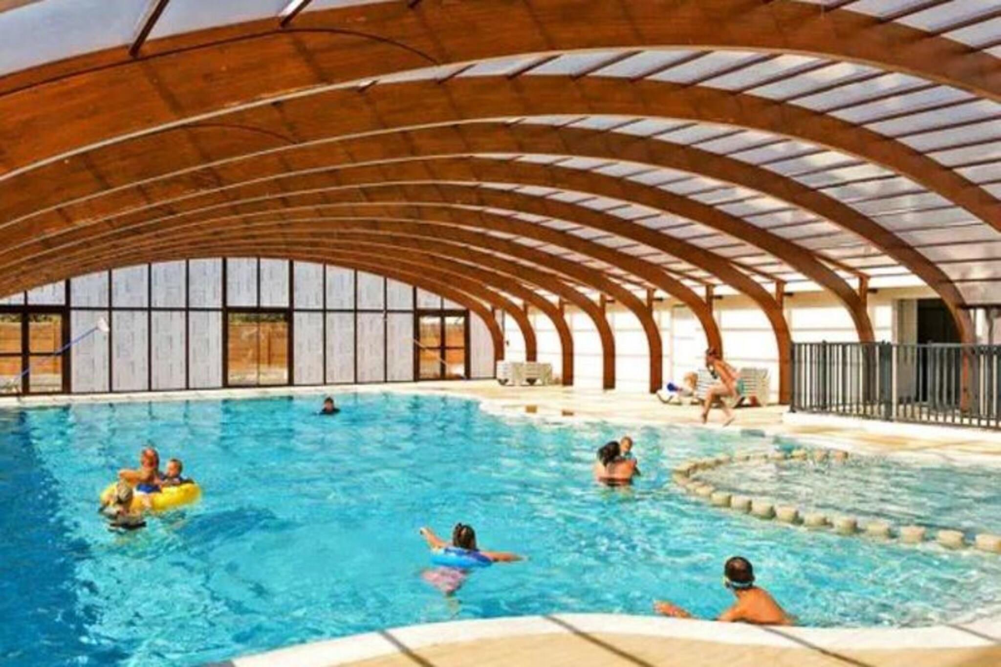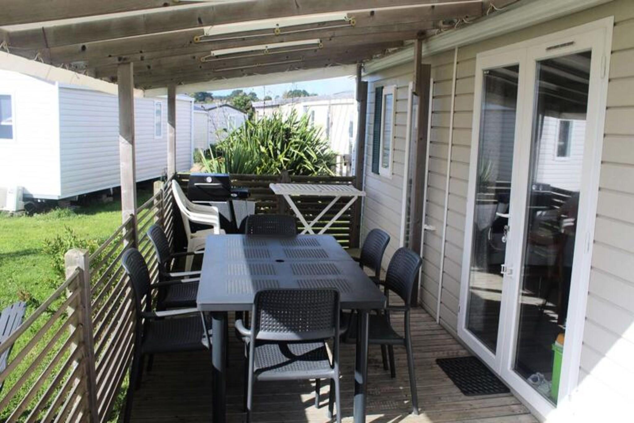 On the serene shores of the Atlantic, this charming 40 m² Trigano Intuition 40 mobile home offers a delightful escape in the heart of St Jacques. Set within a pedestrianized campsite with direct access to the ocean, this property invites you to unwind amidst the natural beauty of Brittany. Whether you’re seeking tranquil mornings by the sea or fun-filled afternoons at the campsite’s aquatic area, this destination promises a memorable getaway. Inside, the mobile home is thoughtfully designed to accommodate up to six guests. The cozy living room with a comfortable sofa leads to a fully equipped kitchenette, perfect for preparing fresh local seafood. The master bedroom features a double bed and an en-suite bathroom, while two additional bedrooms each offer two single beds. A second bathroom and separate toilet ensure convenience for families or groups. Modern amenities such as a refrigerator, microwave, and coffee maker provide all the comforts of home. Step outside onto the spacious 18.5 m² terrace, where 15 m² is covered for year-round enjoyment. Relax with a good book on the garden furniture or savor a delicious meal prepared on the gas barbecue. The campsite itself boasts a heated pool with a slide, a spa with a jacuzzi and sauna, and a variety of activities including yoga, fitness classes, and kids’ and teens’ clubs during the summer months. With its idyllic location, direct beach access, and a wealth of on-site amenities, this mobile home is the perfect choice for those seeking a blend of relaxation and adventure. From exploring the rugged coastline to enjoying the vibrant campsite atmosphere, your Breton escape awaits.