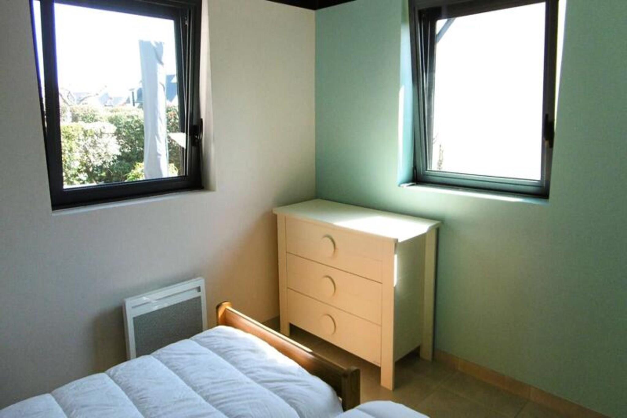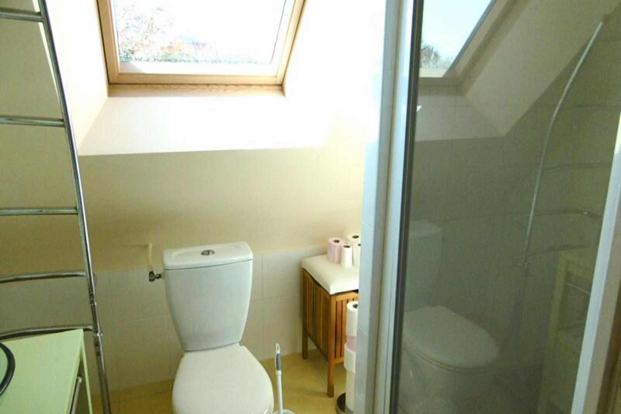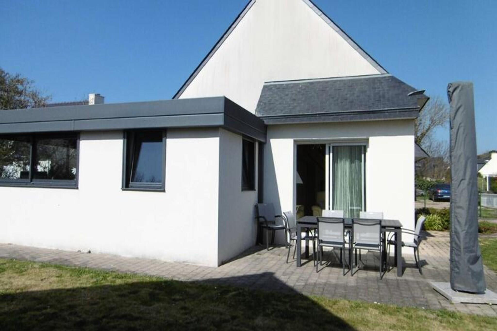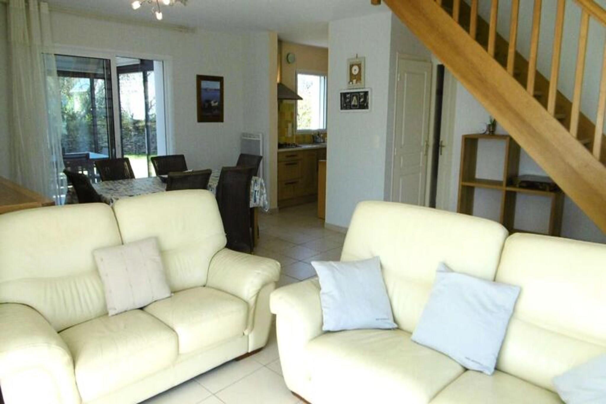 A short stroll from the golden sands of St Jacques beach, this charming 110 m² house offers a perfect retreat for families and groups seeking a relaxing coastal getaway. Surrounded by the serene beauty of Brittany’s coastline, the property combines modern comfort with a tranquil atmosphere, inviting you to unwind and create unforgettable memories by the sea. Whether you’re sipping coffee on the veranda or enjoying a barbecue in the enclosed garden, every moment here is infused with the refreshing scent of the ocean breeze. Inside, the house is thoughtfully designed across two levels to accommodate up to eight guests. The ground floor features a fully equipped kitchen that opens onto a cozy living room with two comfortable sofas, creating a welcoming space for shared meals and relaxation. Two bedrooms, one with a double bed and the other with twin beds, are complemented by a bathroom with a shower and a separate toilet. Upstairs, you’ll find two additional double bedrooms, each with a wardrobe, along with another bathroom and separate toilet. The home is equipped with all the essentials, including a refrigerator, oven, microwave, dishwasher, washing machine, and TV, ensuring a stress-free stay. Step outside to discover the property’s delightful outdoor spaces. The enclosed garden boasts a sunny terrace with garden furniture, deck chairs, and a barbecue, perfect for al fresco dining or simply soaking up the peaceful surroundings. Parking is conveniently available in front of the house, and guests benefit from a Free Pass' Air&Mer card, offering discounted rates on local activities. With its proximity to the beach and the charm of Brittany’s coastal scenery, this house is an ideal base for exploring the region or simply enjoying a serene escape. Whether you’re building sandcastles, exploring nearby trails, or savoring fresh seafood, this property promises a memorable holiday experience for all.