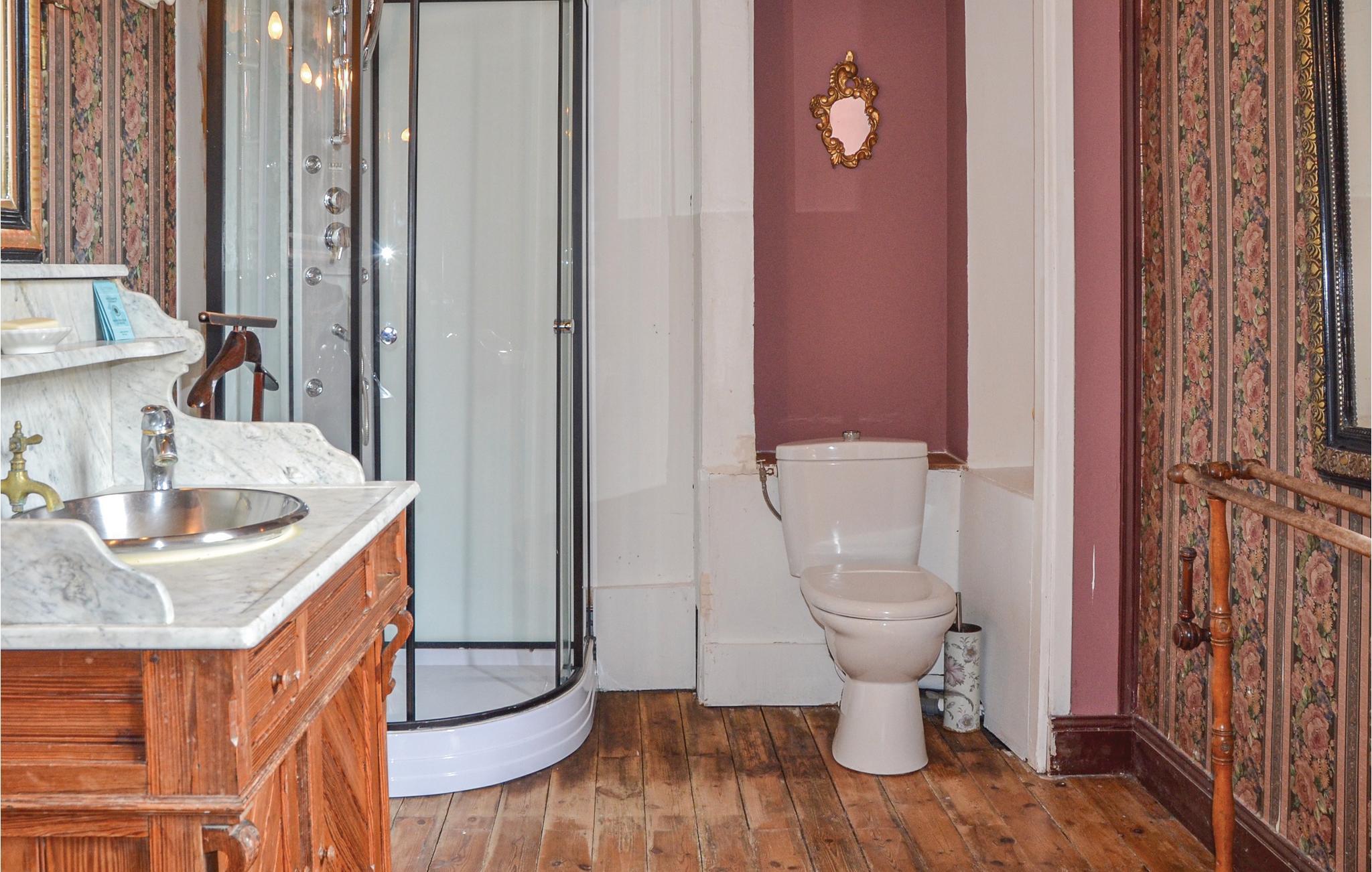 - WC mit warmem und kaltem Wasser, Dusche