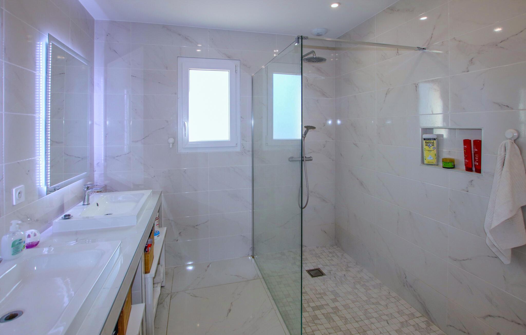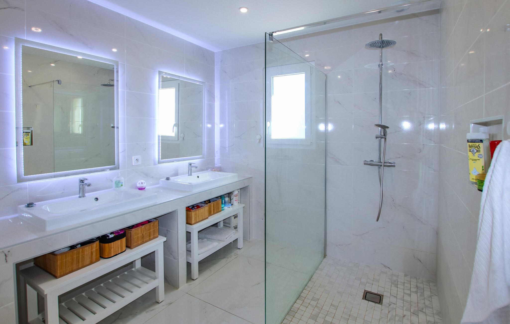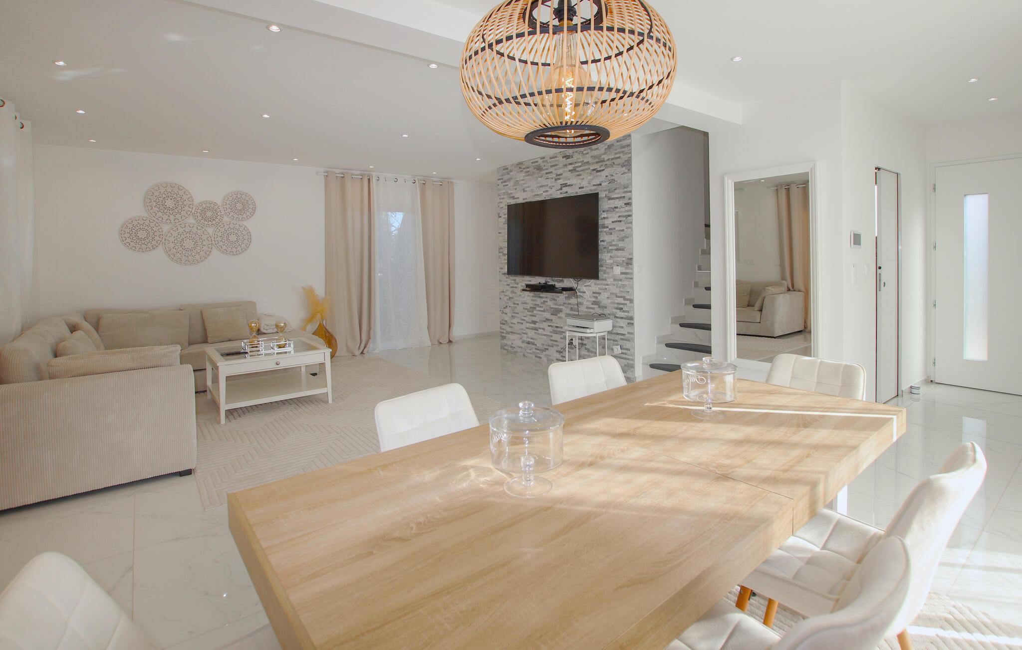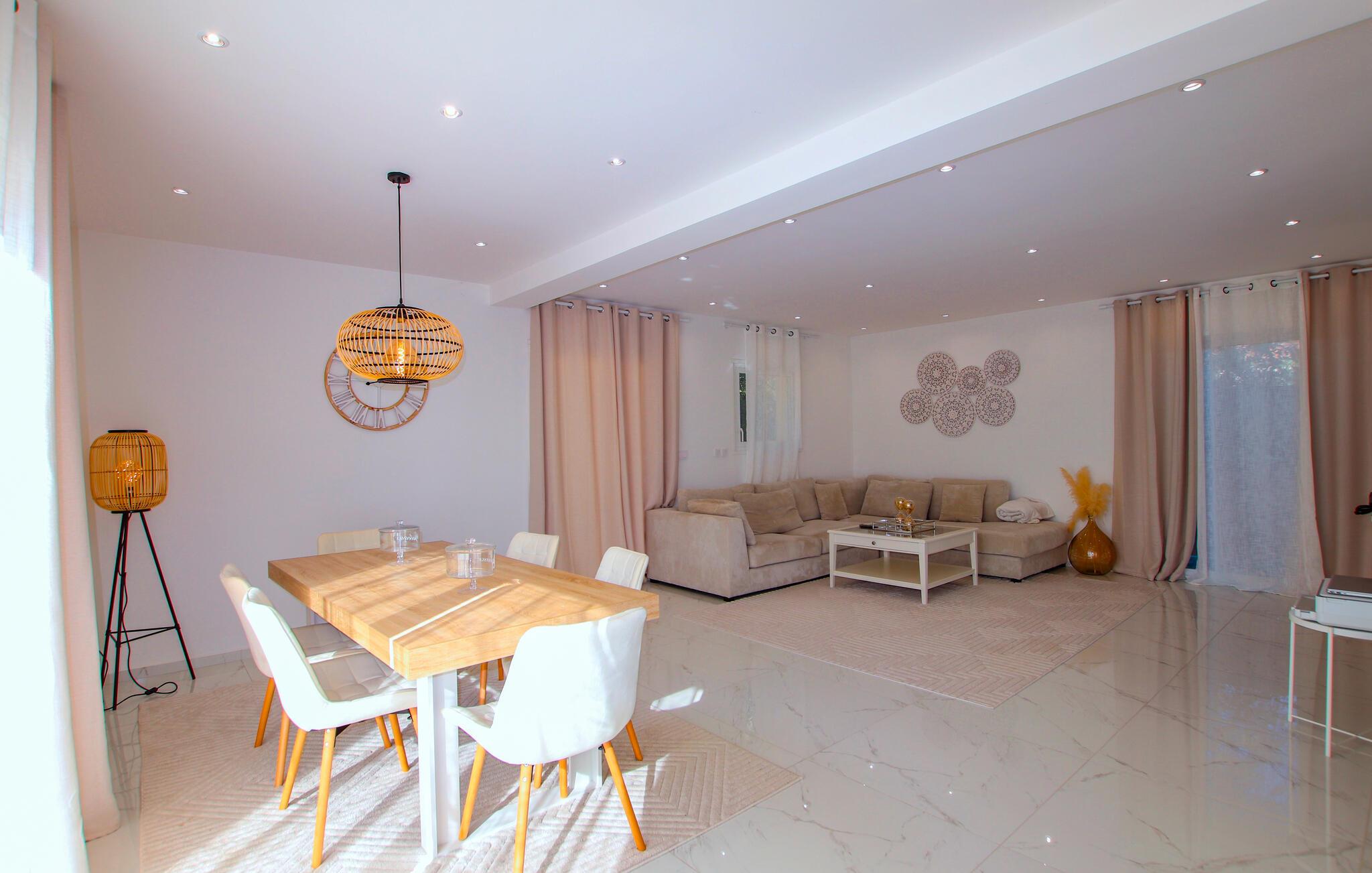 Ein Highlight des Hauses ist der erfrischende private Außenpool, in dem Sie ungestört baden können, gefolgt von einem Sonnenbad auf der großzügigen Südterrasse im Garten mit Olivenbäumen und Palmen. Die amerikanische Küche, die auf eine klimatisierte, schattige Pergola öffnet, wird Ihr Lieblingsplatz für alle Mahlzeiten im Freien sein.