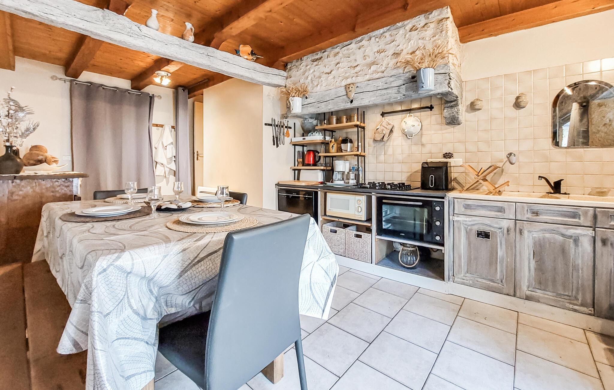 Dieses Haus empfängt Sie mit einer rustikalen Atmosphäre, in der sichtbare Holzbalken, Naturstein und liebevolle Details für angenehme Behaglichkeit sorgen. Probieren Sie in der Küche gemeinsam neue Rezepte aus, genießen Sie die Freude am Kochen und beim Essen in geselliger Runde. Spielen Sie am großen Tisch Karten- und Brettspiele oder lassen Sie den Abend entspannt mit Musik ausklingen.