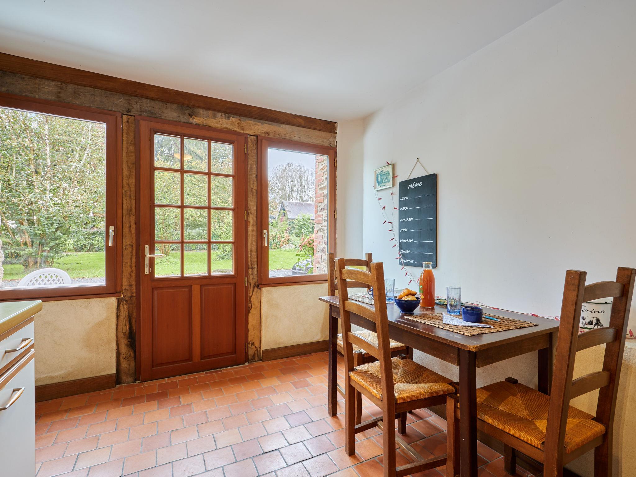 Beautiful, rustic farm estate "La Voisinière", surrounded by trees, meadows and fields. 4 houses in the residence. 1 km from the centre of Savigny, 2 km from the centre of Belval, 10 km from the centre of Coutances, 23 km from the sea. For shared use: property 8'000 m2 with plants and trees, meadow, pond. In the house: washing machine (for shared use). Motor access (300 m via unmade road). Parking on the premises. Shop 2 km, supermarket 10 km, bus stop "Belval - Gare" 4 km, sandy beach "Agon-Coutainville" 23 km.