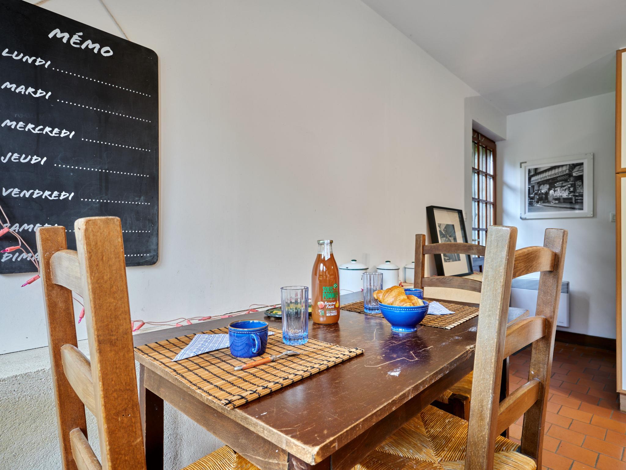 "La Voisinière no.1", 3-room terraced house 75 m2 on 2 levels. Practical furnishings: living/dining room with open-hearth fireplace (only for decoration), dining table and satellite TV. Exit to the patio. Open kitchen (oven, dishwasher, 4 ceramic glass hob hotplates, toaster, kettle, microwave, electric coffee machine). Exit to the patio. Sep. WC. Upper floor: 1 room with 1 french bed. 1 room with 2 beds. Bath/WC. Electric heating. Parquet floors. Lawn. Terrace furniture, barbecue (portable), box-room. Facilities: iron, children's high chair, baby cot. Internet (WiFi, free). Please note: non-smoking house. Maximum 1 pet/ dog allowed. Smoke alarm.