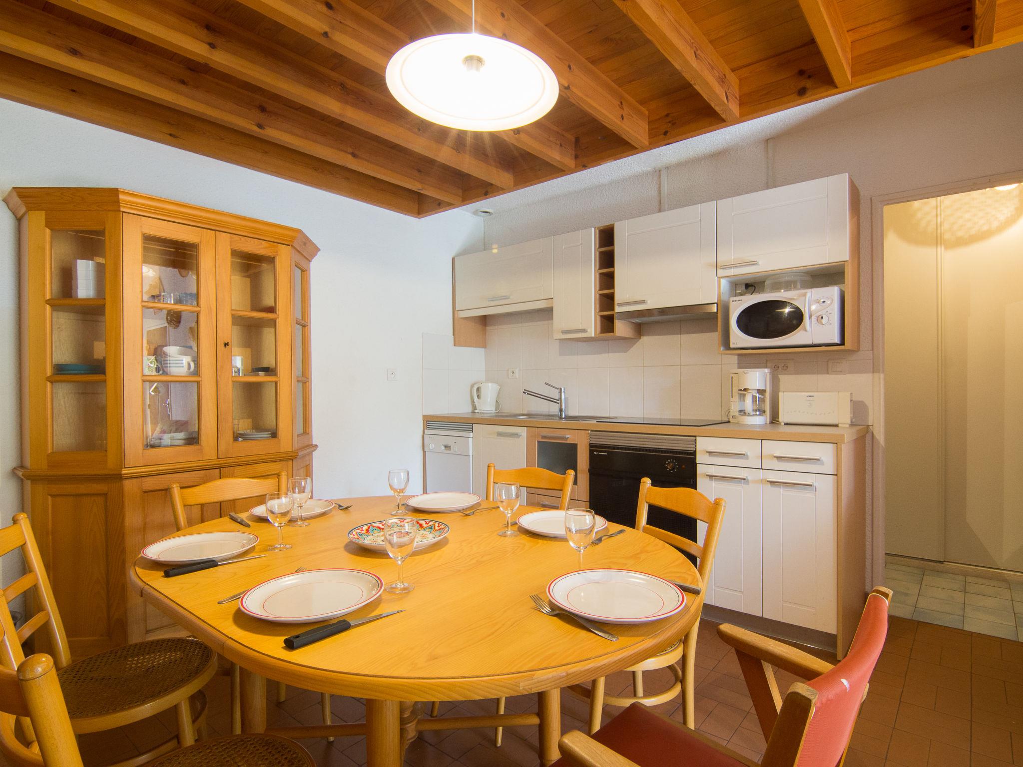2-room house 45 m2 on 2 levels, south facing position. Living/dining room with flat screen. 1 room with 1 french bed (140 cm, length 190 cm). Kitchenette (4 hot plates, oven, dishwasher, microwave, freezer). Shower/WC. Electric heating. Upper floor: open gallery with 2 beds (90 cm, length 190 cm). Terrace. Terrace furniture. Facilities: washing machine. Please note: maximum 1 pet/ dog allowed. Smoke alarm. Please note: there is a gallery overlooking the living room. WIFI not possible. Instead of an enclosed bedroom, some sleeping areas are located in an open-plan area (gallery, alcove, etc.). 402960000575V