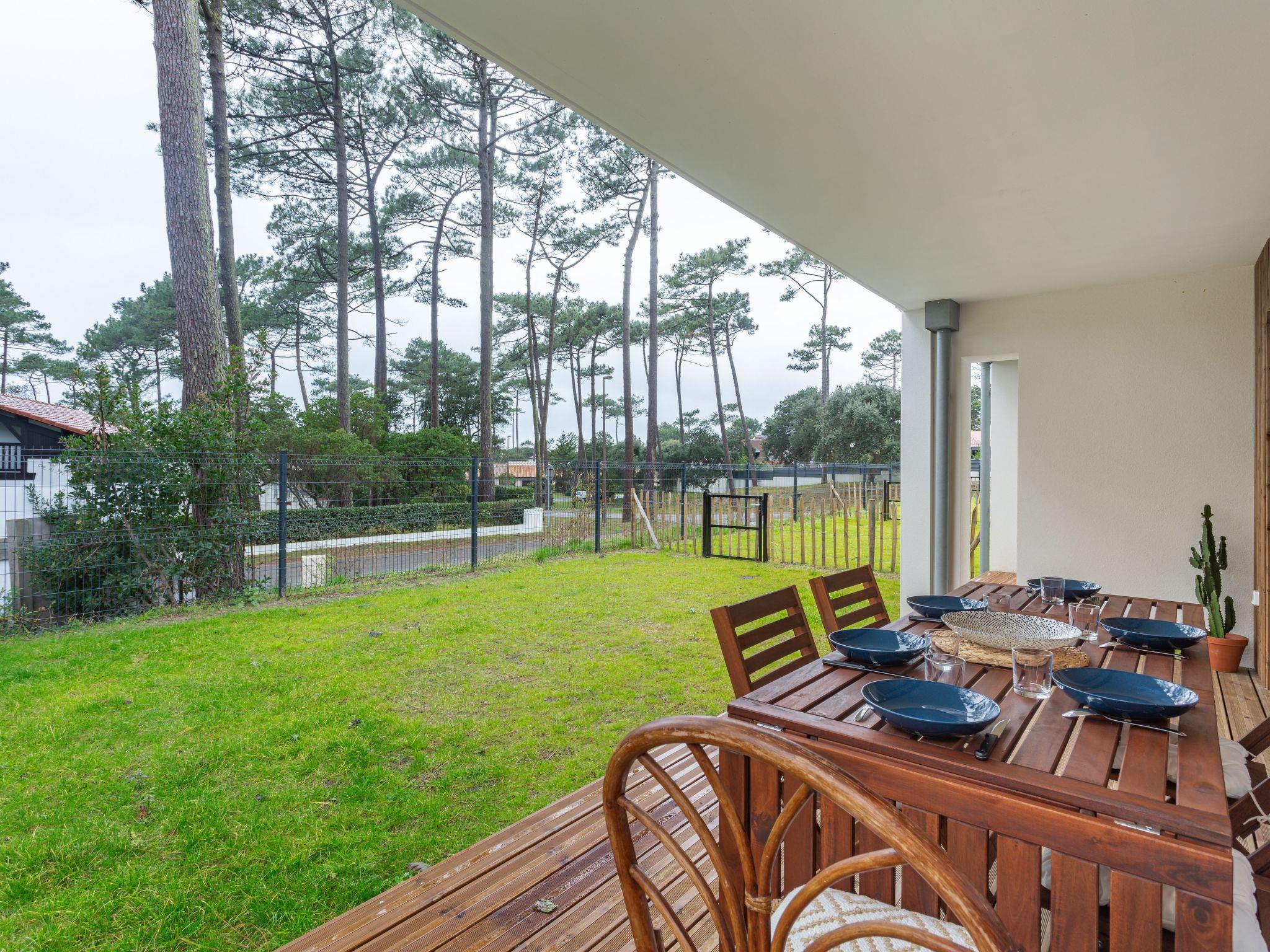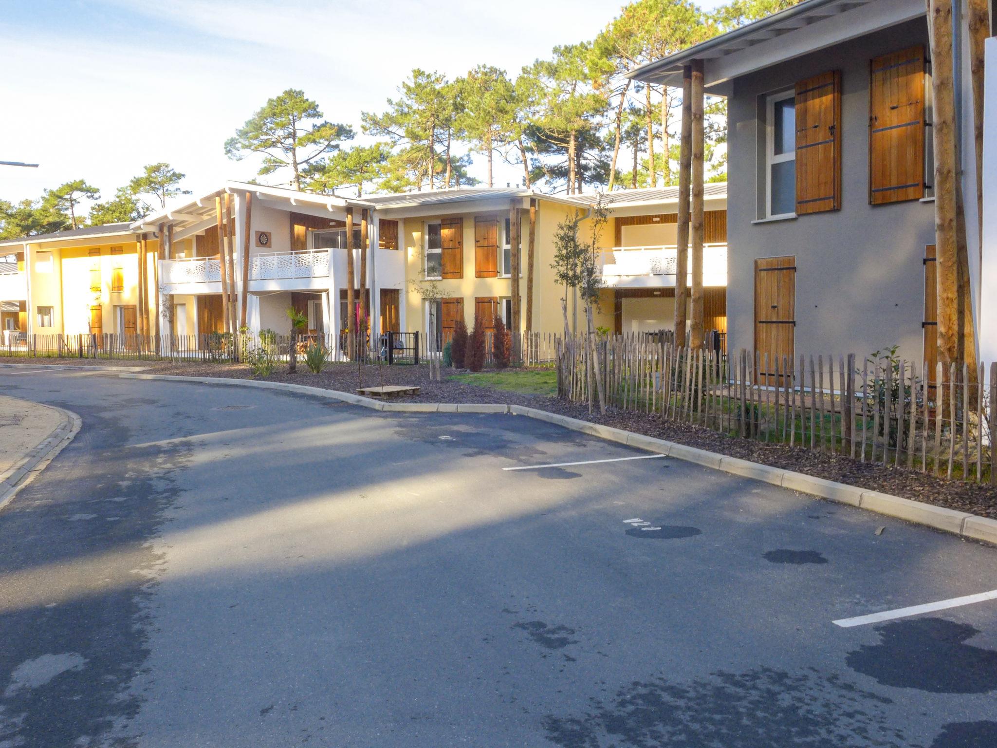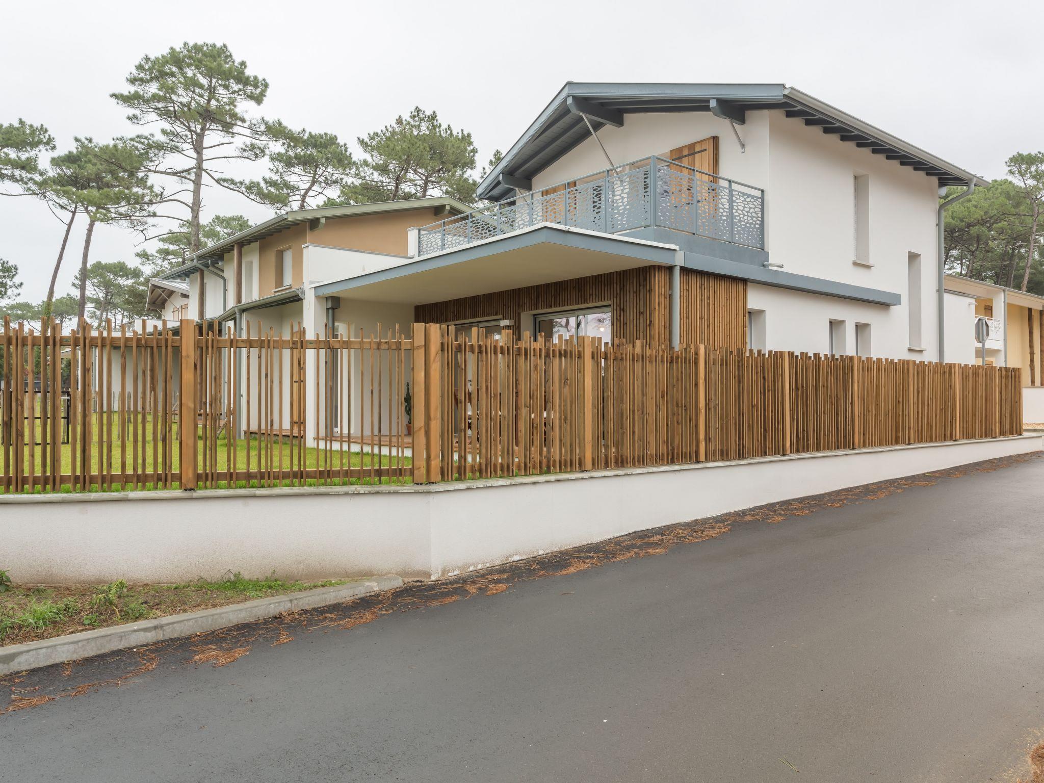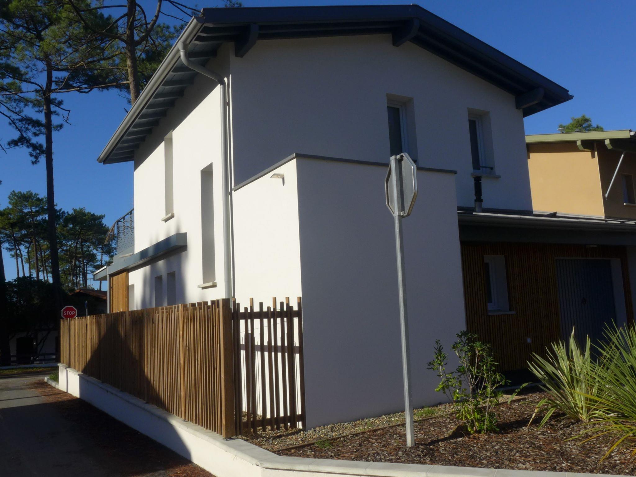 Seignosse Océan 6 km from Hossegor: Residence "Dune Blanche", built in 2021, surrounded by trees. In the resort 500 m from the centre of Seignosse Océan, in a quiet position, 300 m from the sea. Grocery 500 m, supermarket 3 km, restaurant 500 m, bar, bakery, café. Surf school 500 m. Groups of teenagers on request only. The keys‘ handover takes place by the agency hossegor 6 km.