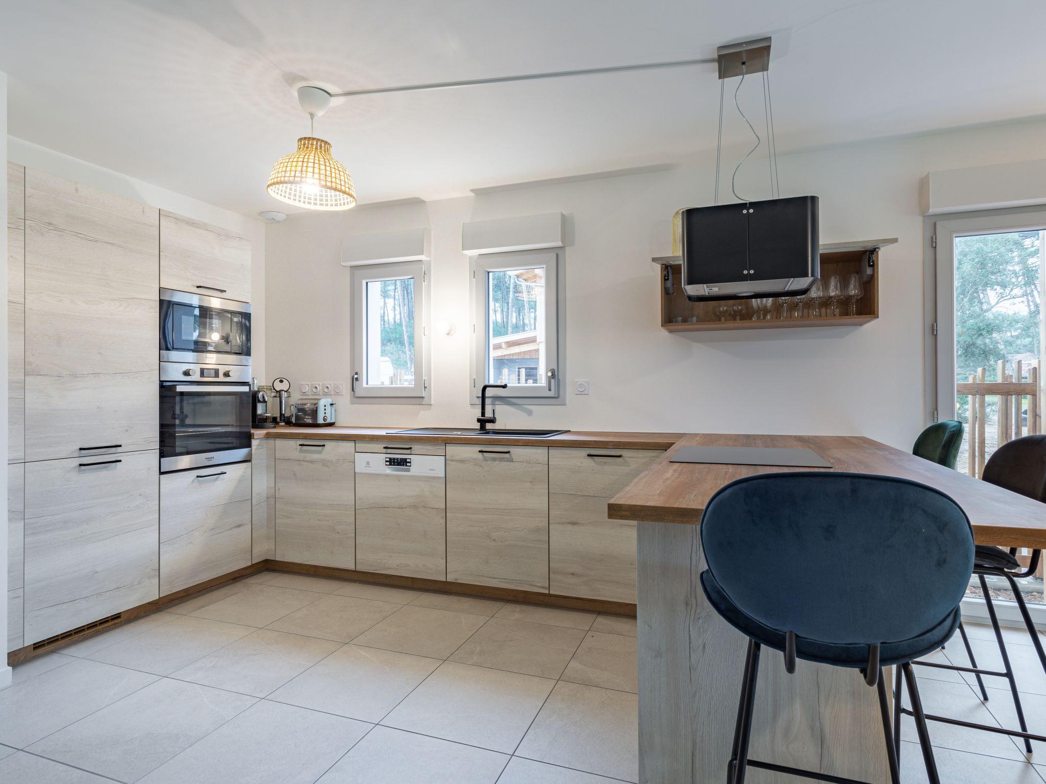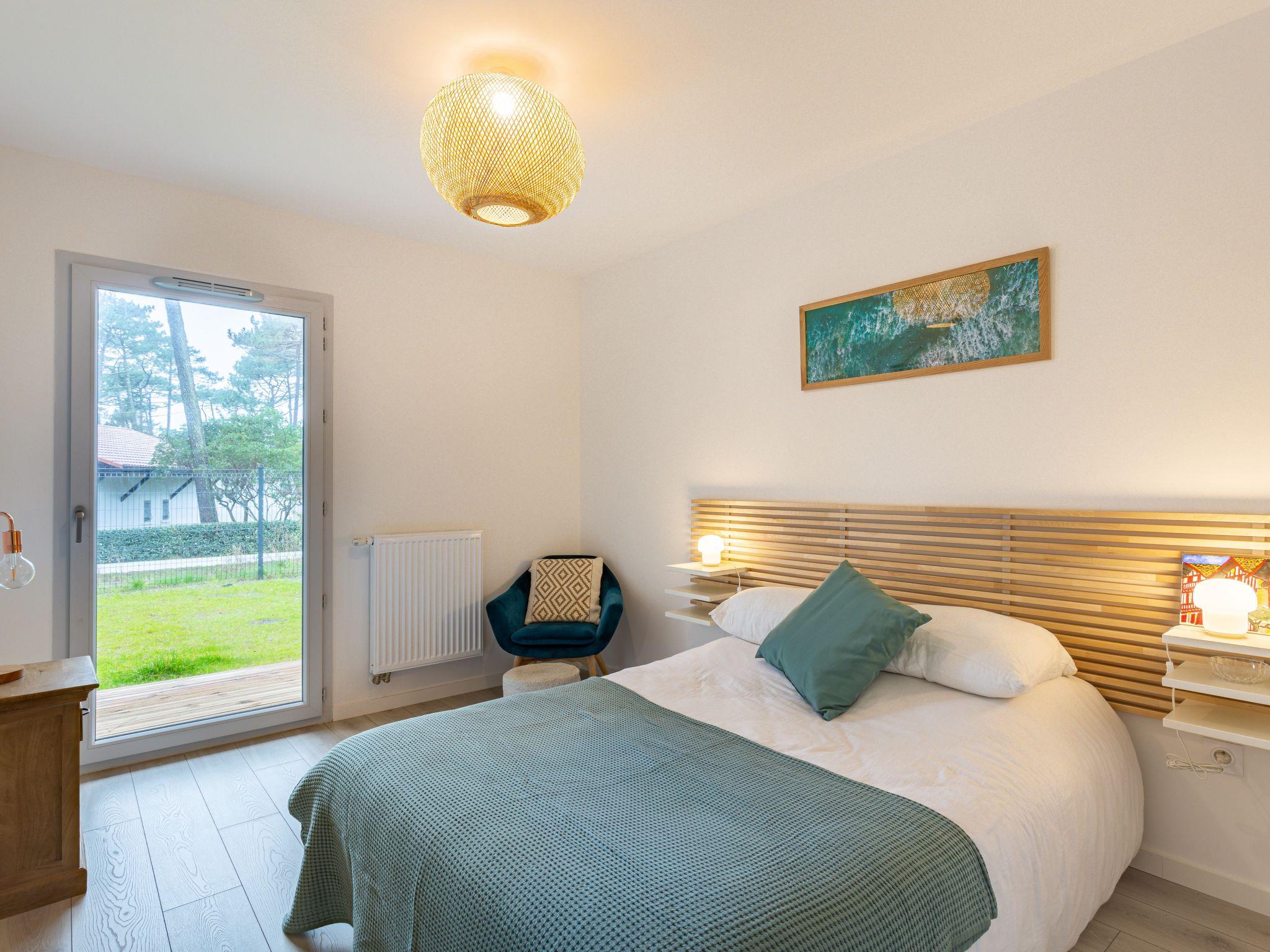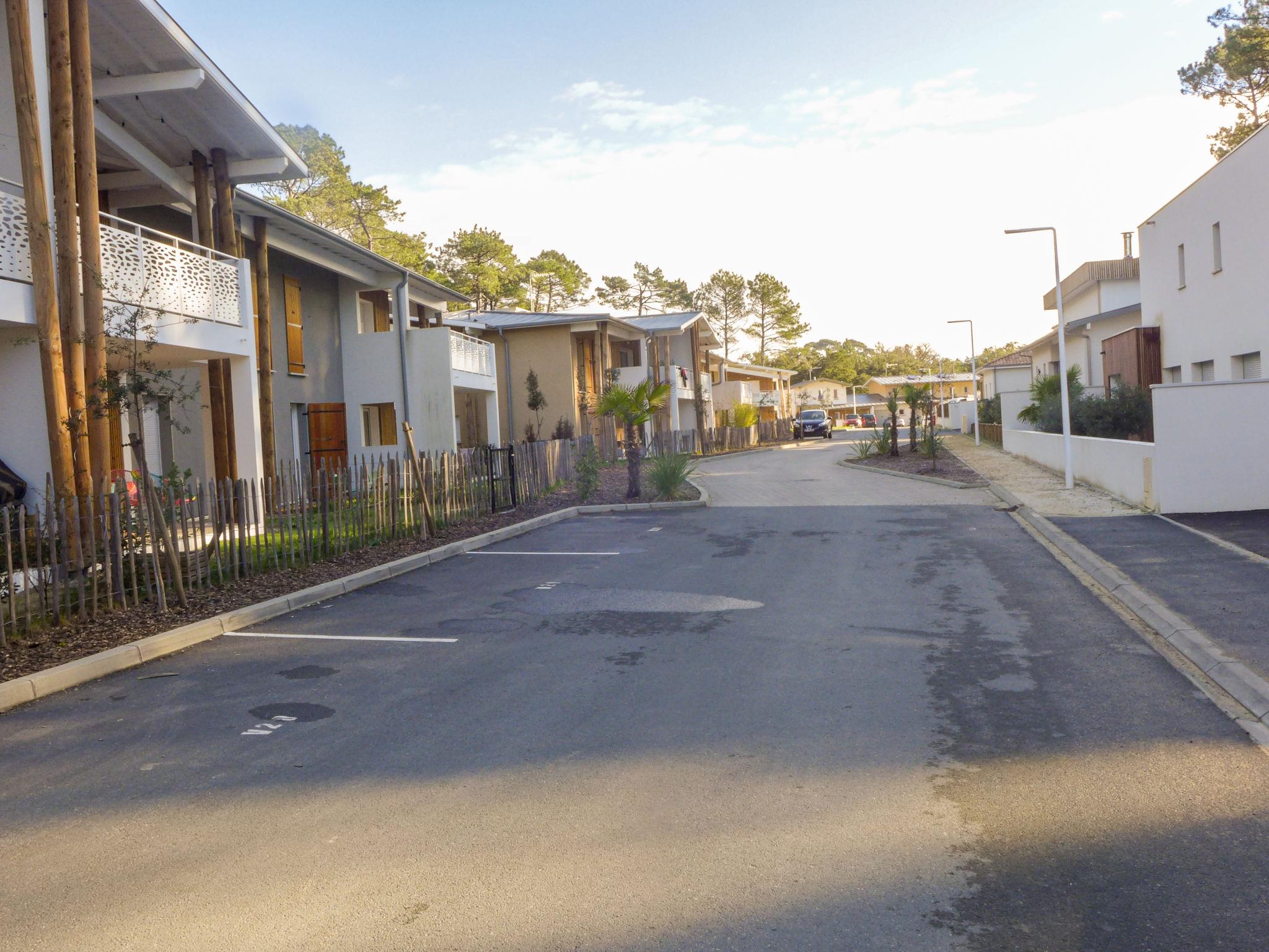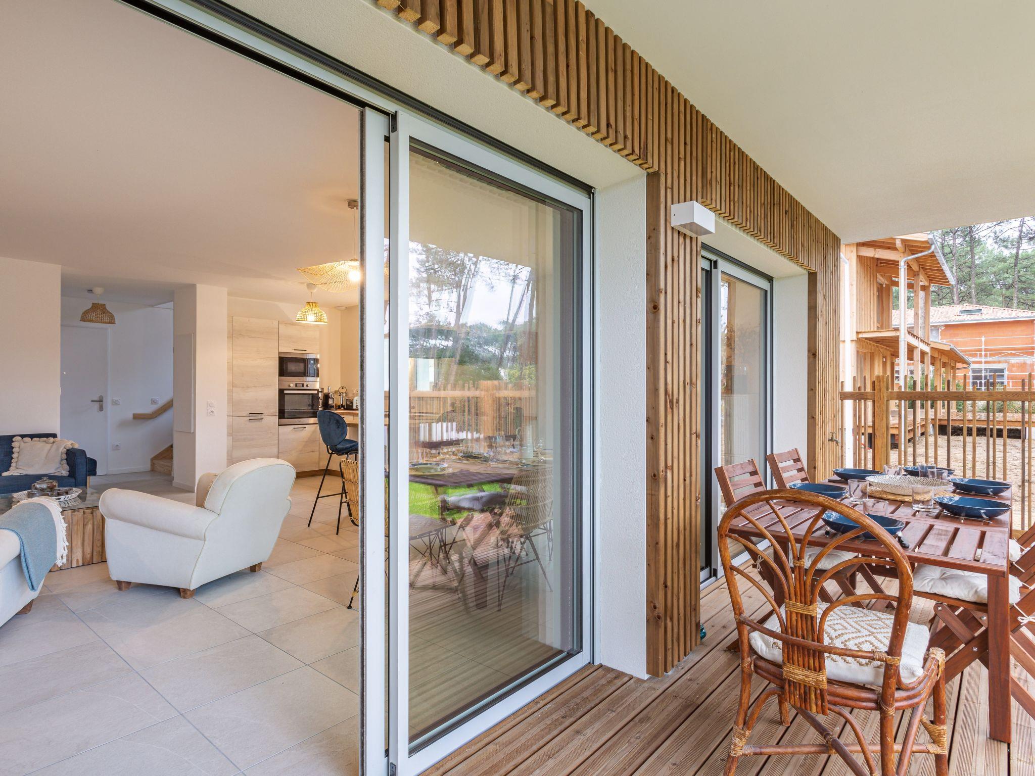 Seignosse Océan 6 km from Hossegor: Residence "Dune Blanche", built in 2021, surrounded by trees. In the resort 500 m from the centre of Seignosse Océan, in a quiet position, 300 m from the sea. Grocery 500 m, supermarket 3 km, restaurant 500 m, bar, bakery, café. Surf school 500 m. Groups of teenagers on request only. The keys‘ handover takes place by the agency hossegor 6 km.