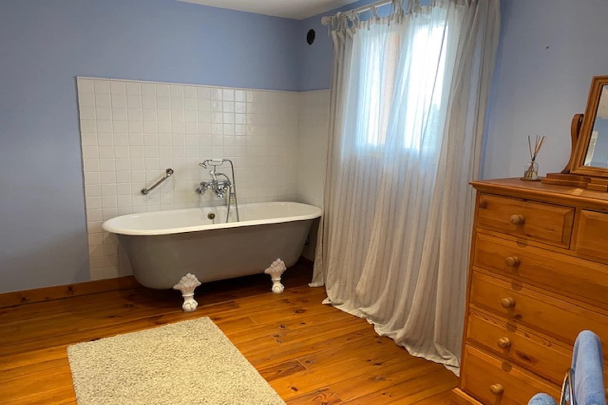 Ground floor: (Entrance, hallway, Sitting room(TV, stove, seating area), dining room(dining table, DVD player), Kitchen(electric kettle, toaster, cooker, hood, oven, dishwasher, fridge), toilet, storage) On the 1st floor: (Bedroom with bathroom(bunk bed, bath tub, washbasin), Bedroom with bathroom(single bed, single bed, bath tub, washbasin, toilet), bathroom(shower, washbasin, toilet), Landing, storage) Basement: (Sitting room(seating area), TV room(TV, seating area), bedroom(double bed), walk-through room(single bed, single bed), bathroom(bath tub, shower, washbasin, toilet), recreation room(billiards)) Annex: (Bedroom with bathroom(double bed, shower, washbasin, toilet), air conditioning) Study, pantry(fridge, freezer, washing machine), garage, air conditioning, terrace, garden, garden furniture, sun loungers, BBQ, parking, swimming pool(private, water alarm), boules court, lounge set