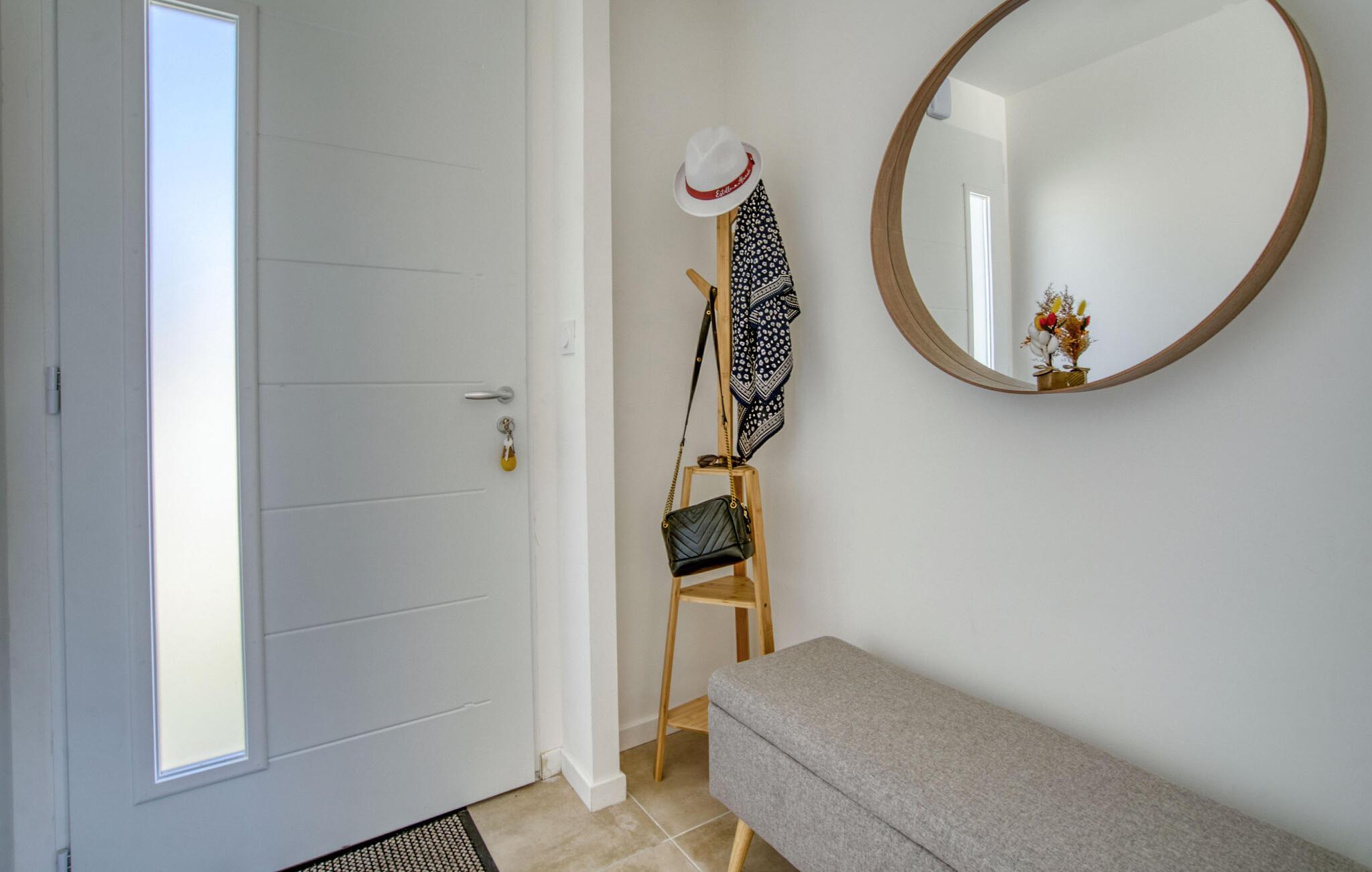 Machen Sie es sich in diesem hellen und modernen Ferienhaus gemütlich und nutzen Sie die gute Lage für spannende Ausflüge oder spontane Spaziergänge zu den nahegelegenen Einkaufsmöglichkeiten und Restaurants. Bereiten Sie in der offenen Küche Ihre Lieblingsmahlzeiten zu und genießen Sie diese am stilvollen Esstisch. Entspannen Sie nach einem langen Tag auf dem gemütlichen Sofa, lesen Sie ein Buch oder widmen Sie sich einem Gesellschaftsspiel.