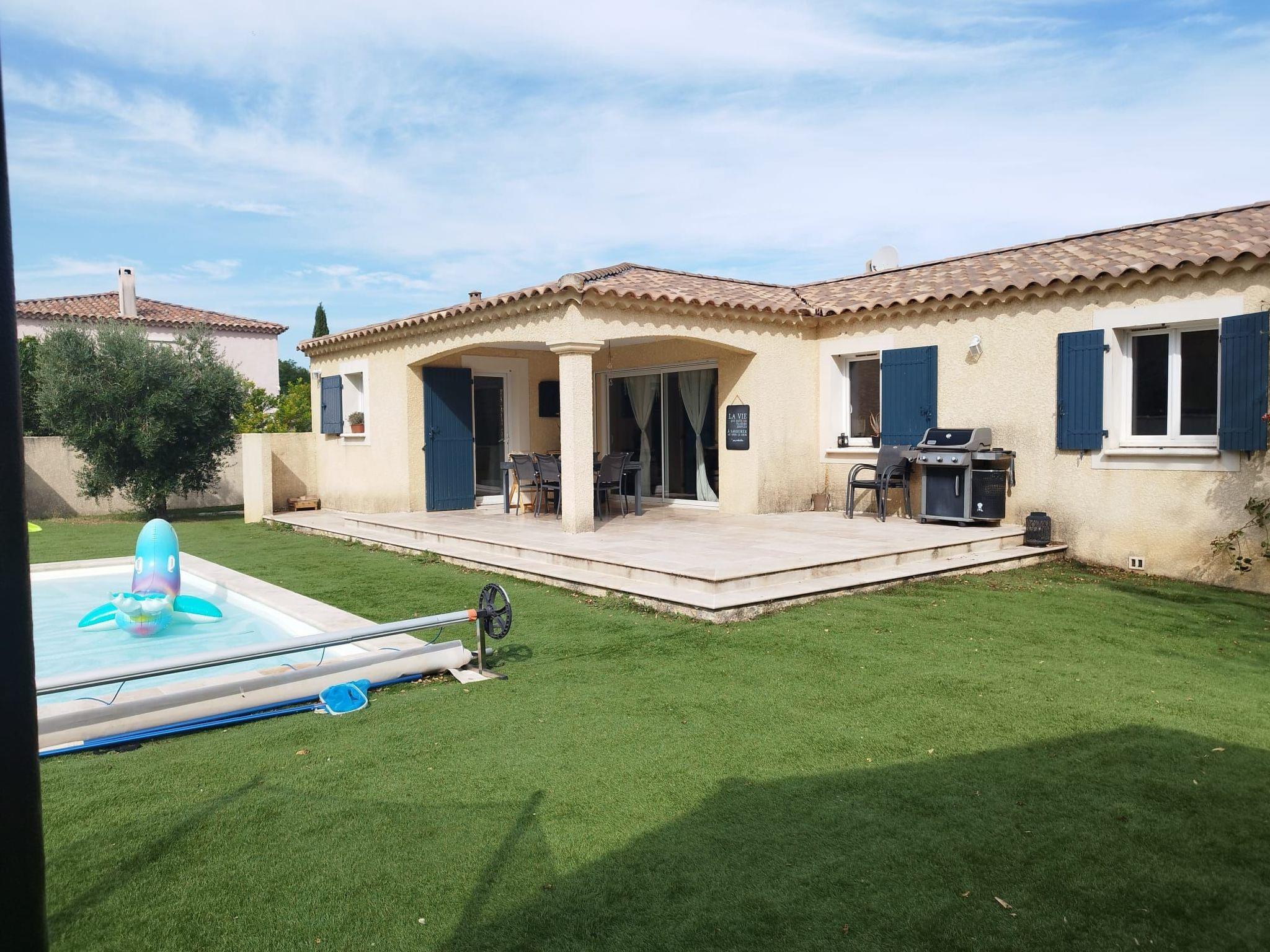 The 700m2 garden is fully enclosed and offers a lovely space for relaxing and socialising, with its terrace equipped with'un barbecue, sa piscine, son terrain de pétanque et les jeux pour enfants : trampoline, balançoires, toboggan, cabane.