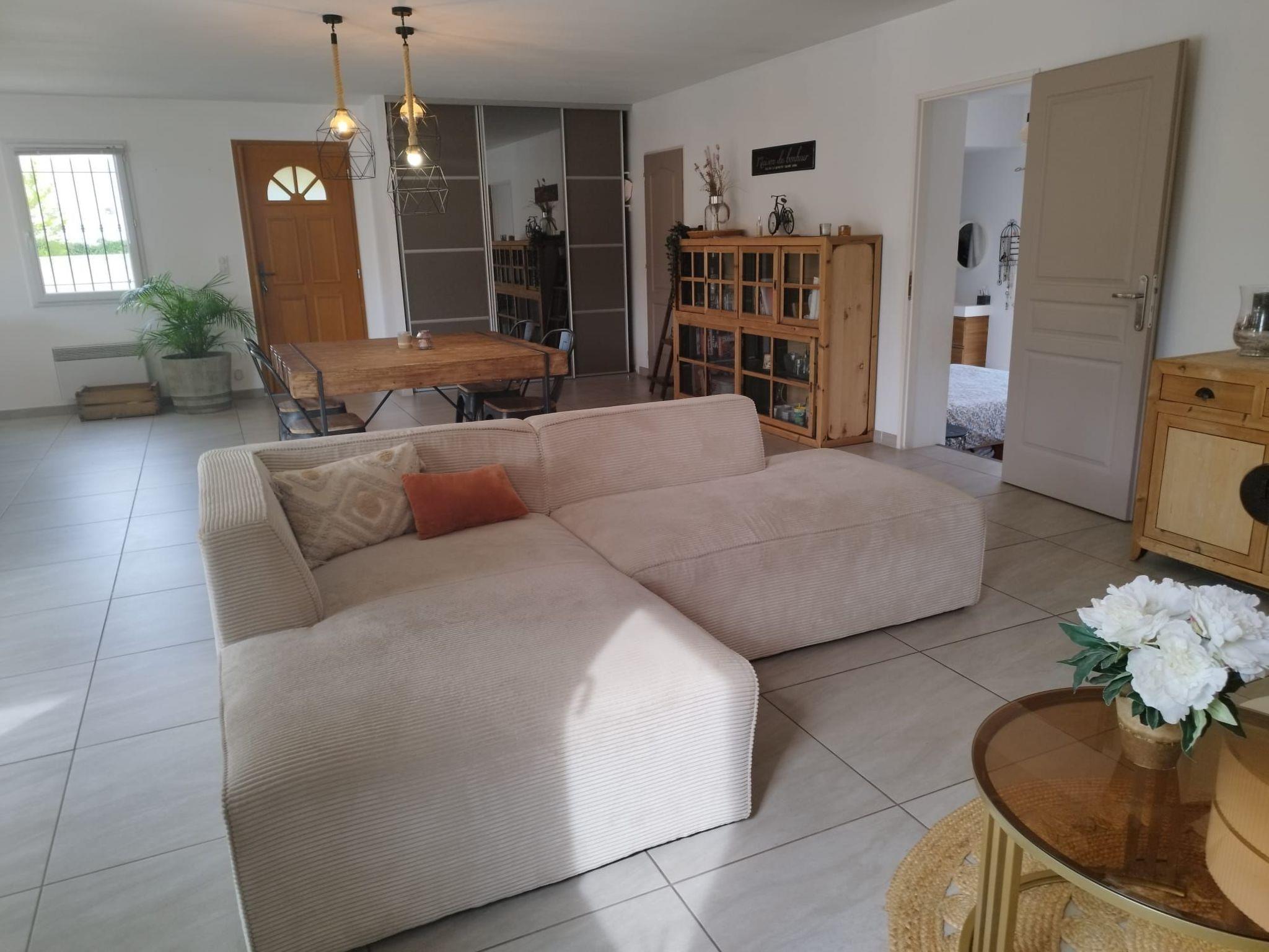 At the foot of the Luberon, this pretty, tastefully decorated single-storey house is set in a peaceful setting and comprises'endroit idéal pour un agréable séjour en famille ou entre amis. Elle se compose d'a large living room with a sitting area, a dining area and an open-plan kitchen with access to the sheltered terrace. Each of the three bedrooms has its own bathroom. The toilets are separate.