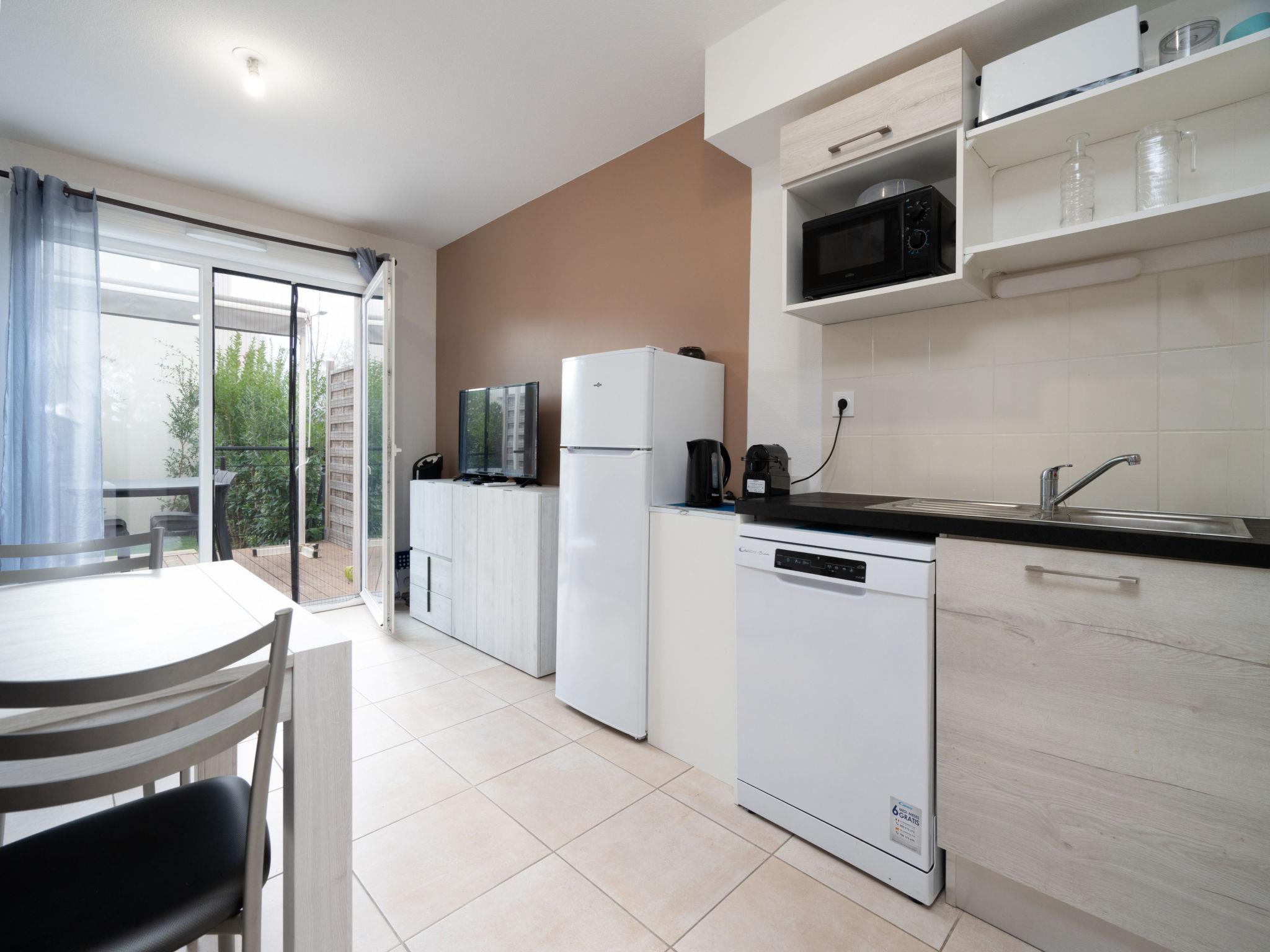 "La Dune", 3-room villa 55 m2, on the ground floor. Object suitable for 6 adults. 1 room with 1 double bed and TV. 1 room with 1 x 2 bunk beds. Living room with 1 sofabed and 1 pull-out bed. Open kitchen (4 hot plates, dishwasher, toaster, kettle, microwave, electric coffee machine). Shower/WC. Terrace. Barbecue. View of the garden. Facilities: Internet (WiFi, free). Parking (1 car). Please note: non-smokers only. Smoke alarm. Offer by a commercial proprietor according to Art. 155, IV, CGI