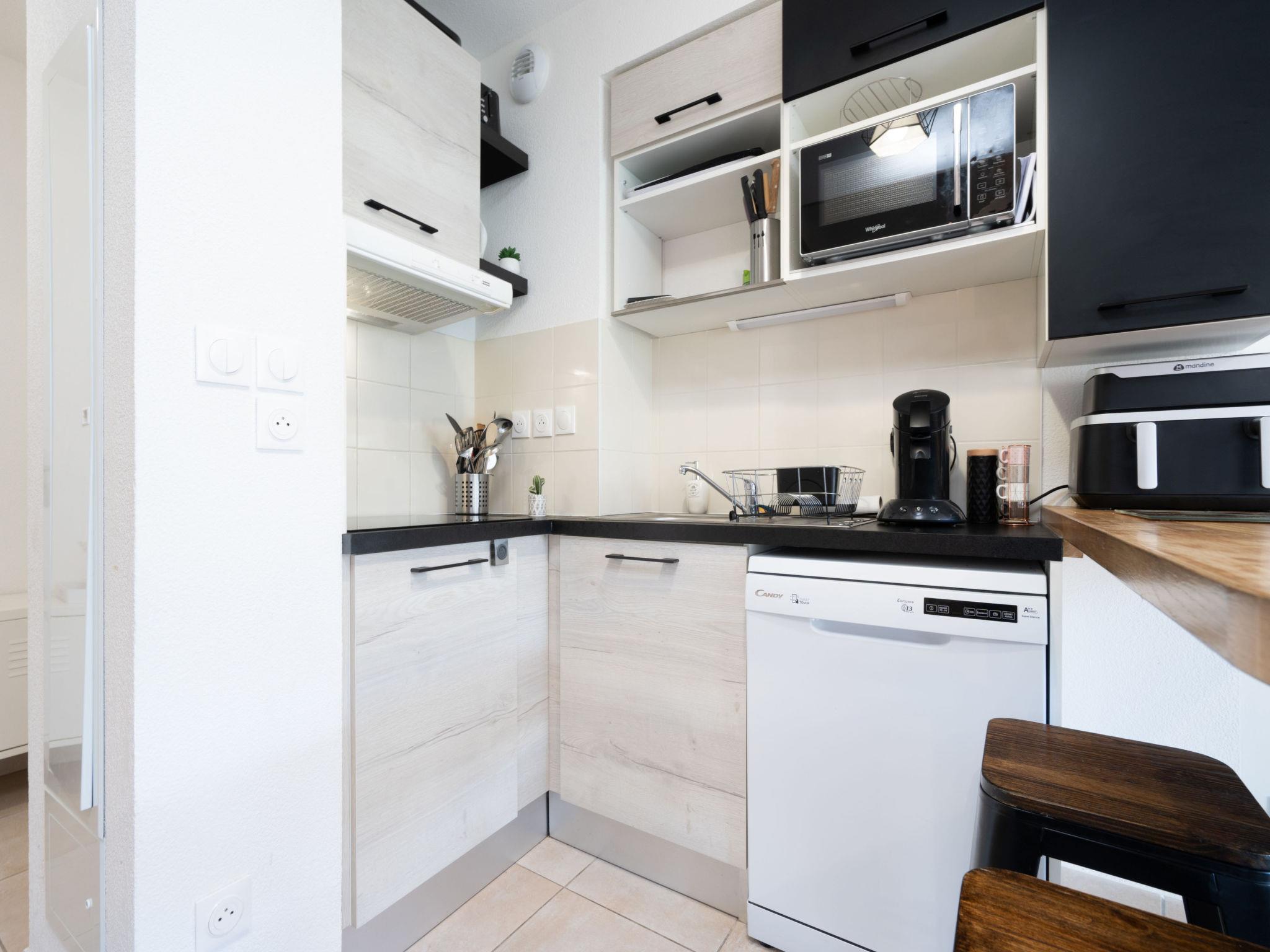 "La Dune", 2-room villa 40 m2, on the ground floor. Object suitable for 5 adults. 1 room with 1 double bed and TV. 1 room with 1 x 2 bunk beds, 1 double bed and TV. Open kitchen (4 hot plates, dishwasher, toaster, kettle, microwave, electric coffee machine). Shower/WC. Terrace. View of the garden. Facilities: iron. Internet (WiFi, free). Parking (1 car). Please note: non-smokers only. Smoke alarm. Offer by a commercial proprietor according to Art. 155, IV, CGI