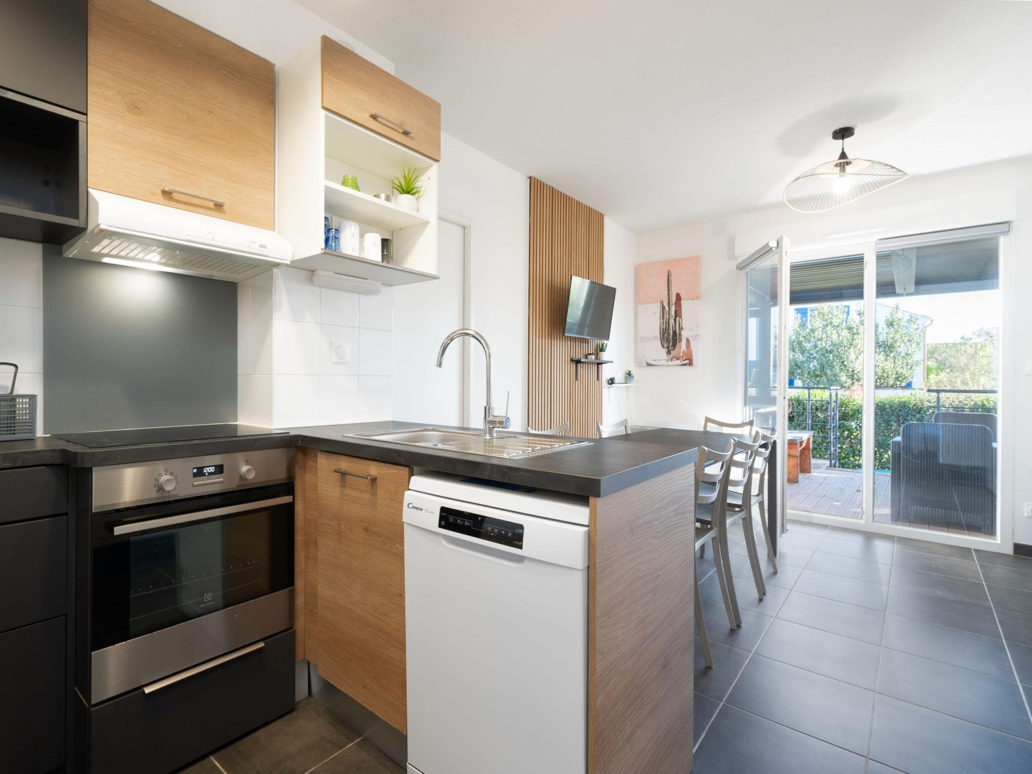 "La Dune", 4-room villa 60 m2, on the ground floor. Object suitable for 9 adults. 1 room with 1 french bed and TV. 1 room with 1 double bed. 1 room with 1 x 2 bunk beds. Living room with 1 sofabed and 1 pull-out bed. Open kitchen (4 hot plates, oven, dishwasher, toaster, kettle, microwave, freezer, electric coffee machine). 2 showers/WC. Terrace 20 m2. Barbecue. View of the garden. Facilities: iron, hair dryer. Internet (WiFi, free). Parking (2 cars). Please note: non-smokers only. Offer by a commercial proprietor according to Art. 155, IV, CGI