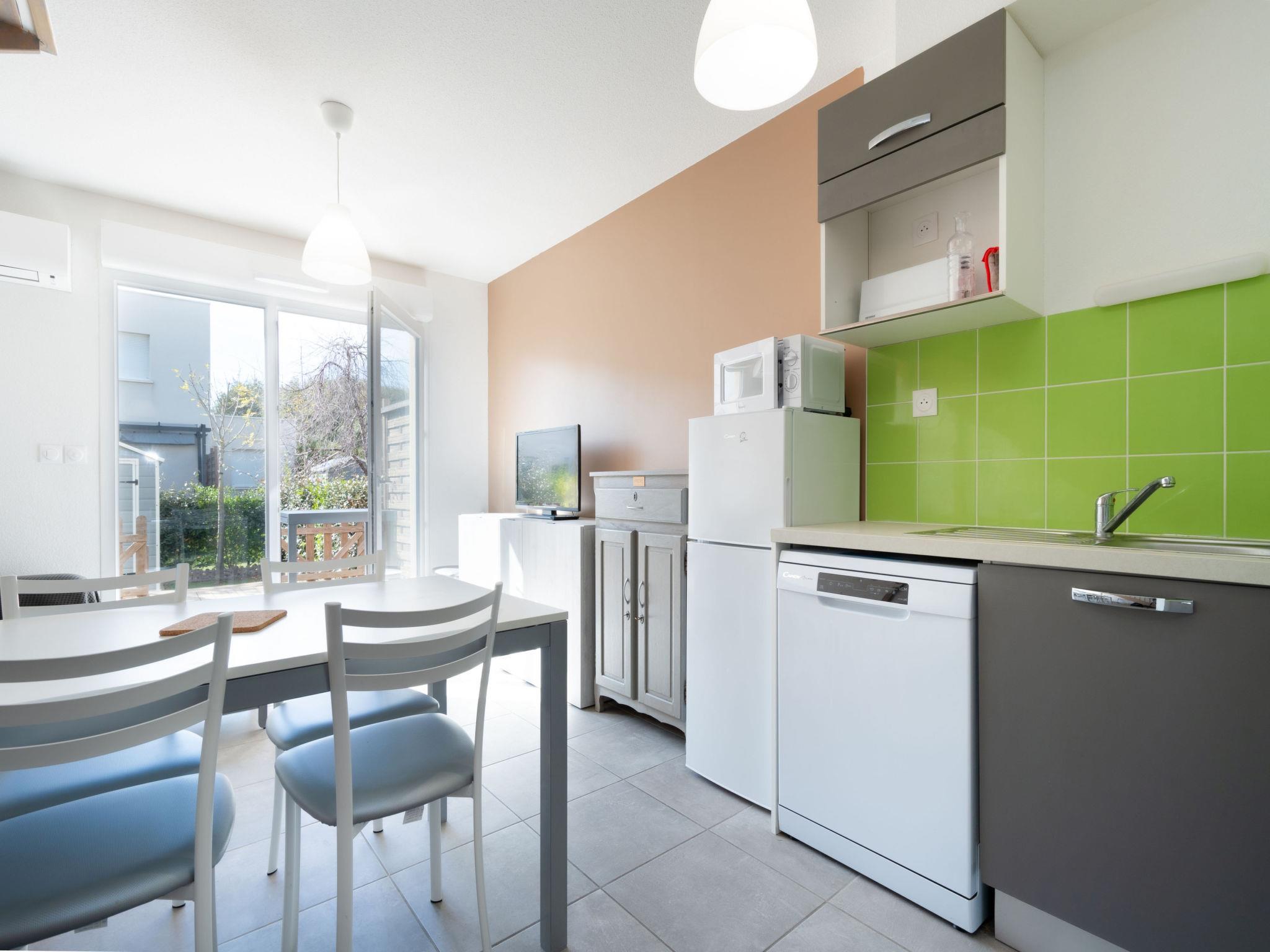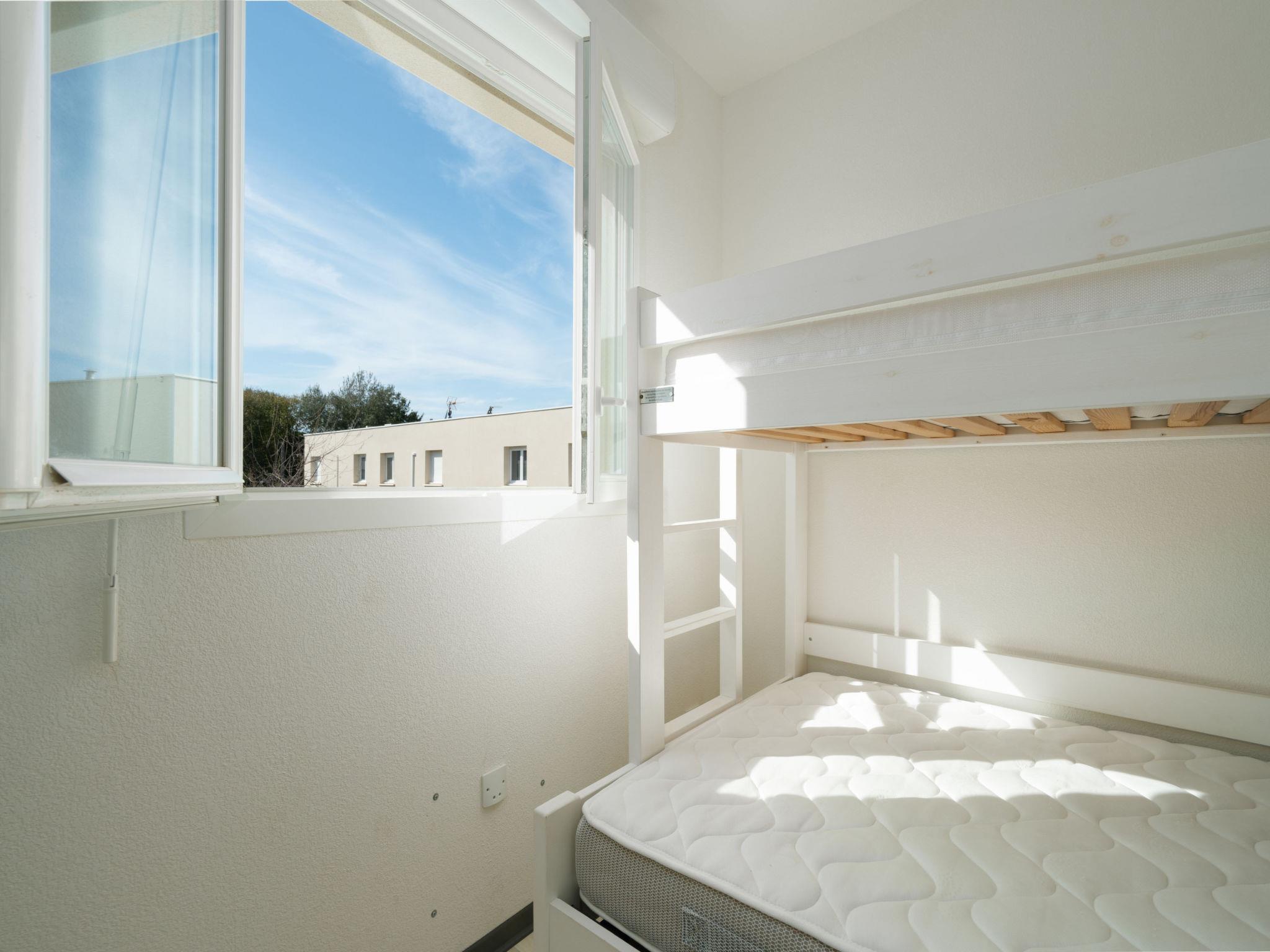 "La Dune", 3-room villa 39 m2, on the ground floor. Object suitable for 6 adults. 1 room with 1 double bed and TV. 1 room with 1 x 2 bunk beds. Living room with 1 sofabed and 1 pull-out bed. Open kitchen (4 hot plates, dishwasher, toaster, kettle, microwave, electric coffee machine). Shower/WC. View of the garden. Parking (1 car). Please note: non-smokers only. Smoke alarm. Offer by a commercial proprietor according to Art. 155, IV, CGI