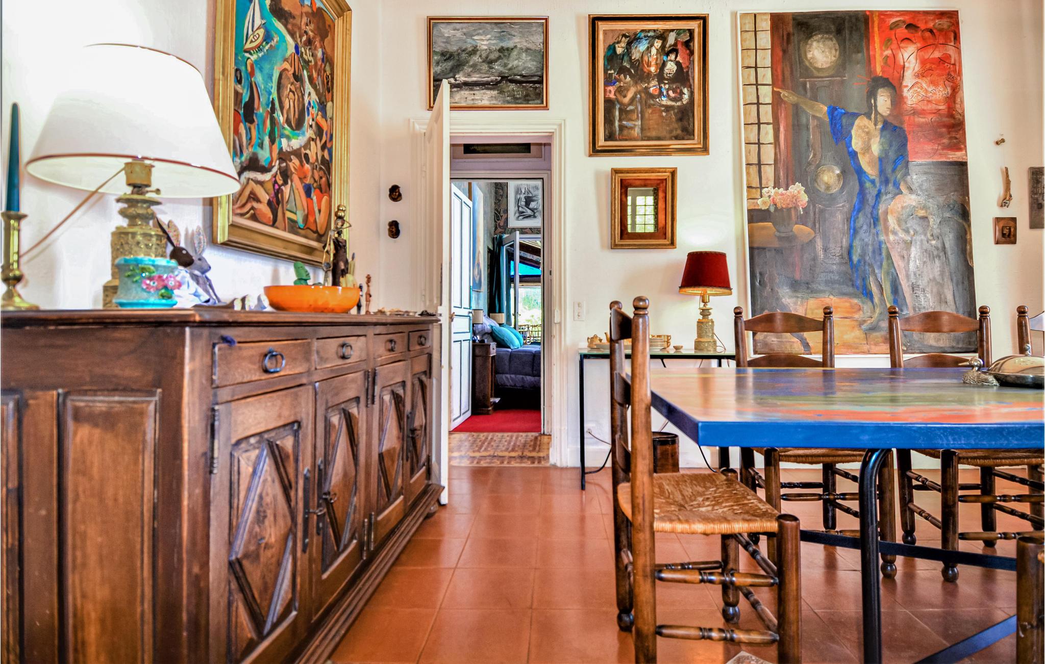Betreten Sie dieses stilvolle Haus und kommen Sie nicht aus dem Staunen heraus. Das Haus empfängt Sie mit Kunst, Farben- und Mustervielfalte und macht Ihren Aufenthalt hier zu einem außergewöhnlichen Erlebnis. Fühlen Sie sich wohl und entdecken Sie die Räumlichkeiten, die Sie zum Verweilen und Entspannen einladen. Treffen Sie sich zum Nachmittagstee und Macarons am Esstisch oder genießen am Abend ein Kaminfeuer in der Bibliothek.