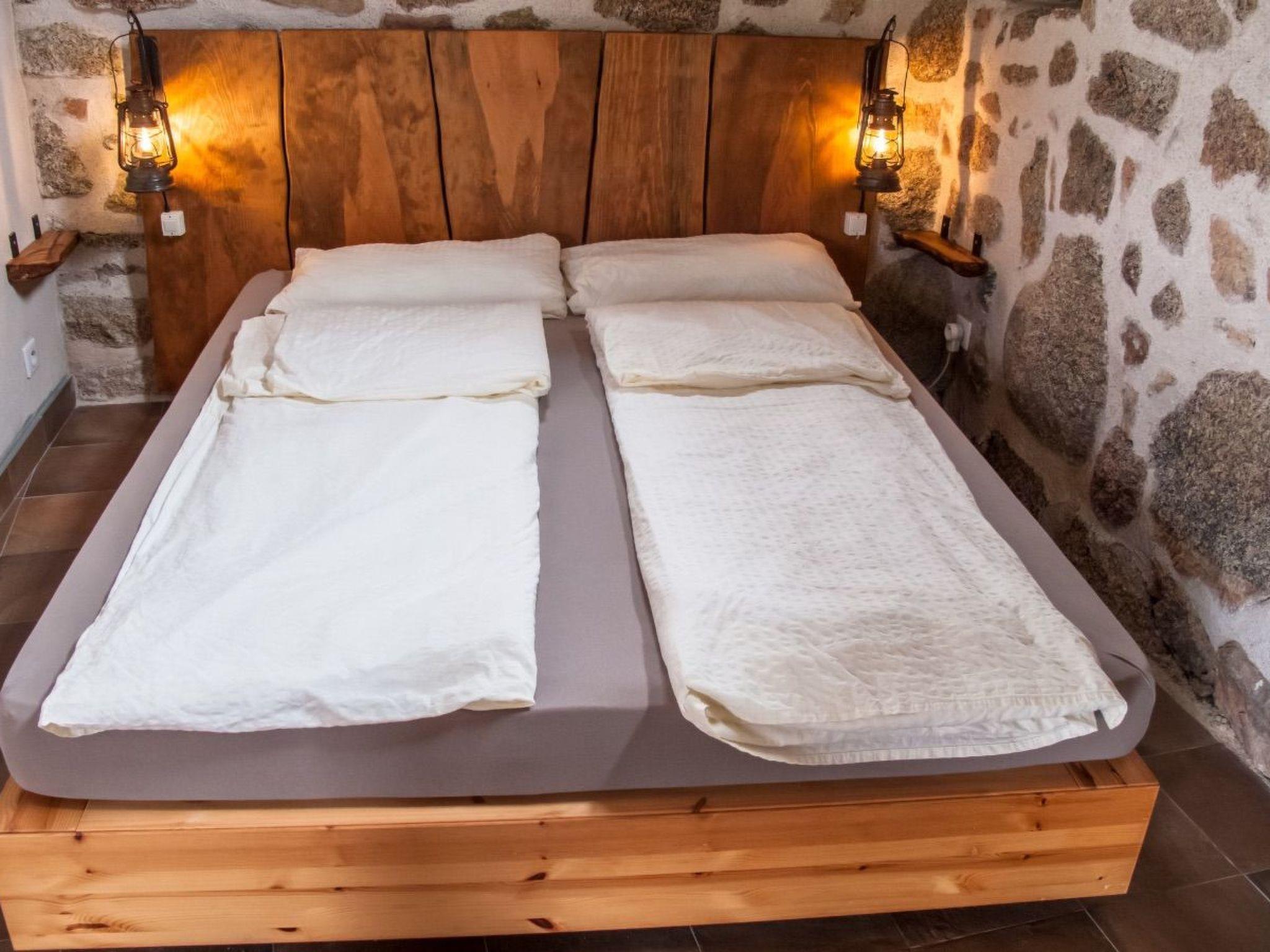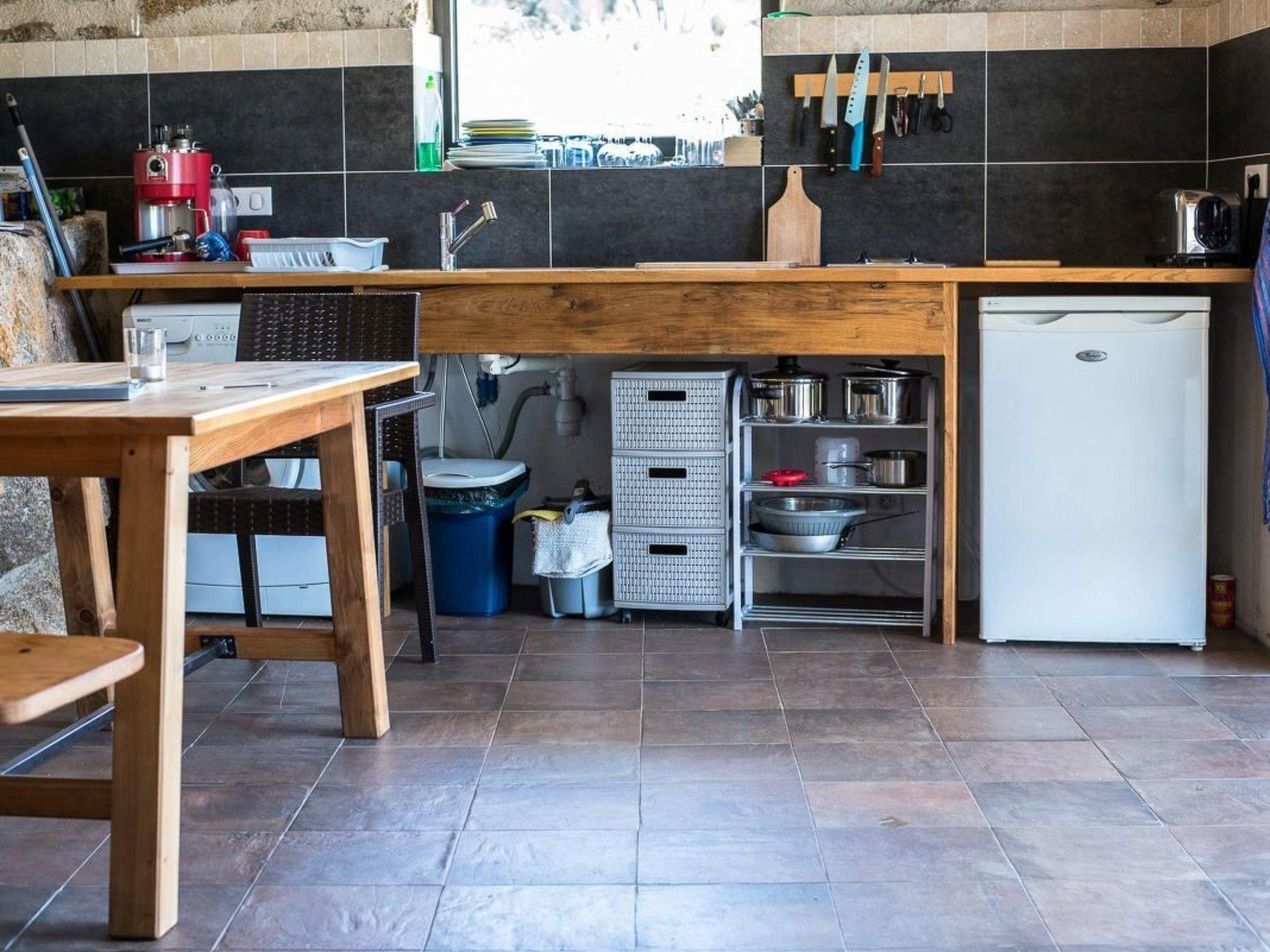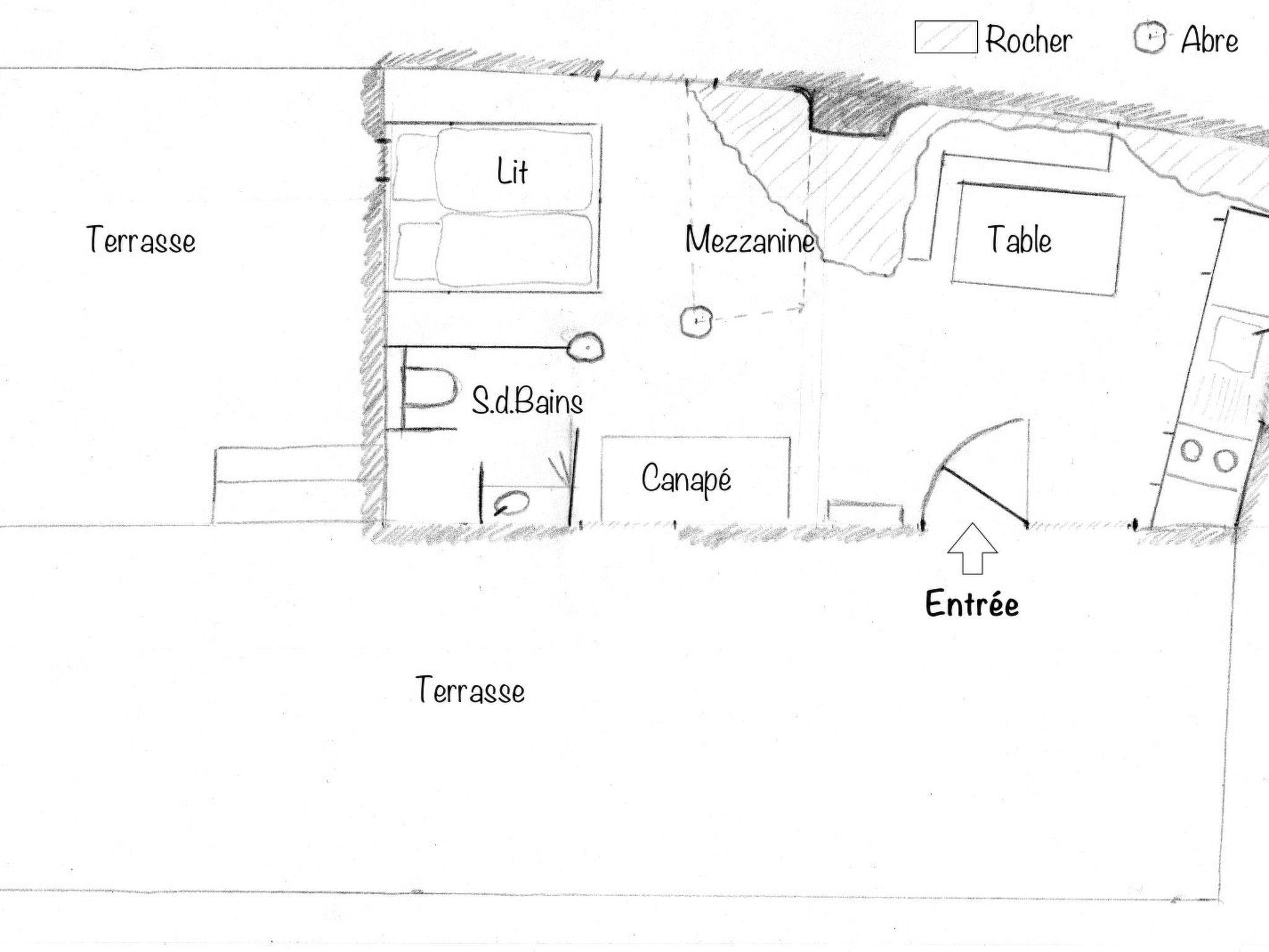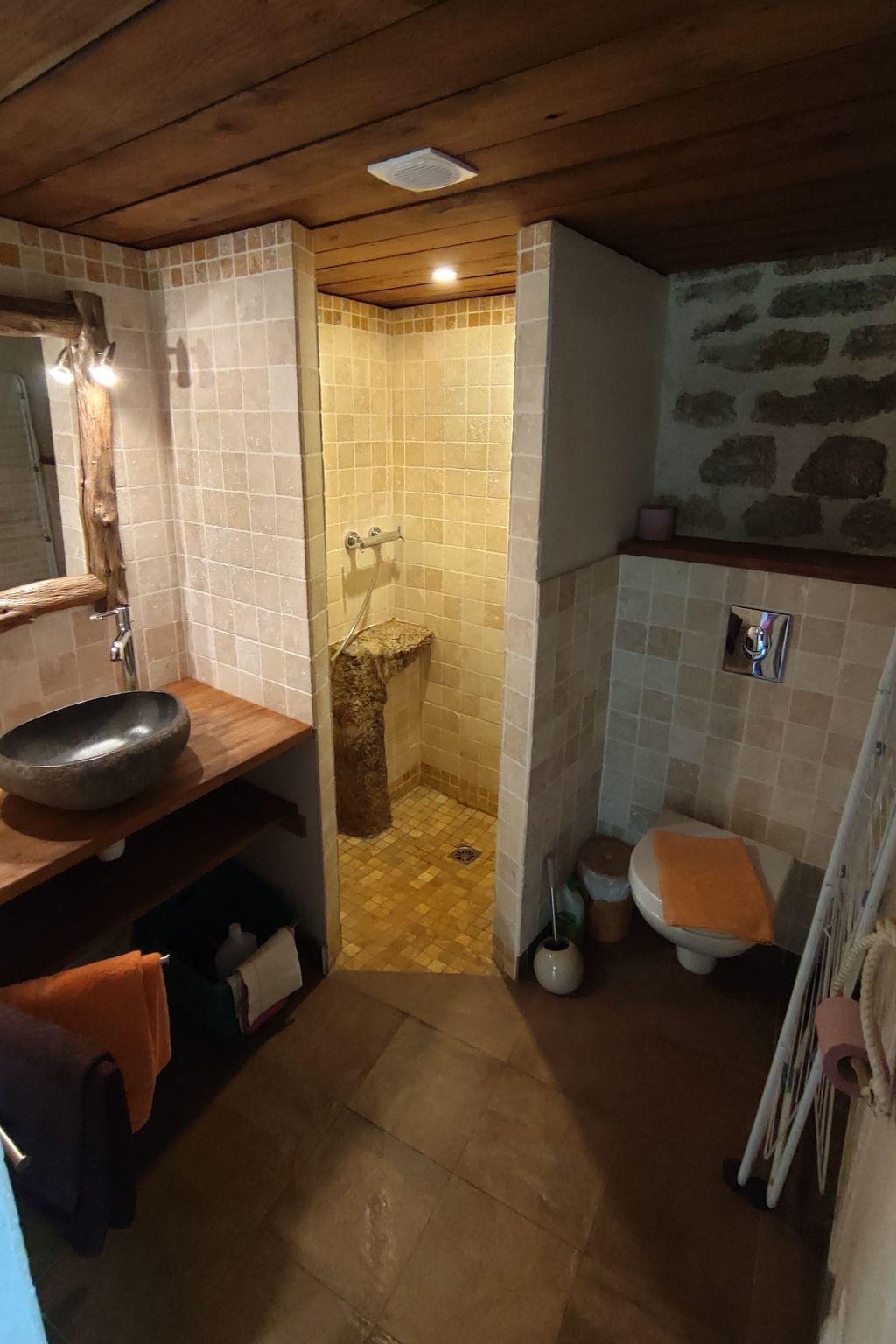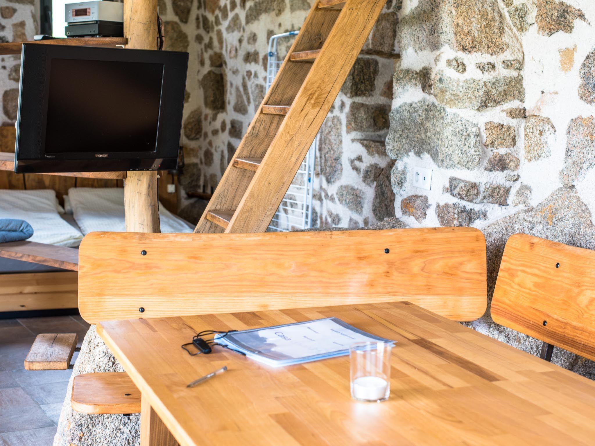 The house offers space for up to 4 people. You can expect a lovingly furnished house in rustic style with air conditioning. In the sleeping area there is 1 double bed (1.60m wide), 1 mezzanine bed and a sofa bed. Bed linen is provided by us. The bathroom has a shower, washbasin, hairdryer and WC. Towels are provided. The kitchen and living area have their own special charm thanks to a rock integrated into the house. The kitchen equipment includes a washing machine, fridge with freezer compartment, portafilter coffee machine, toaster, 2 hobs, crockery and cutlery for 4 people. You can also use the radio/CD player, television and W-Lan.