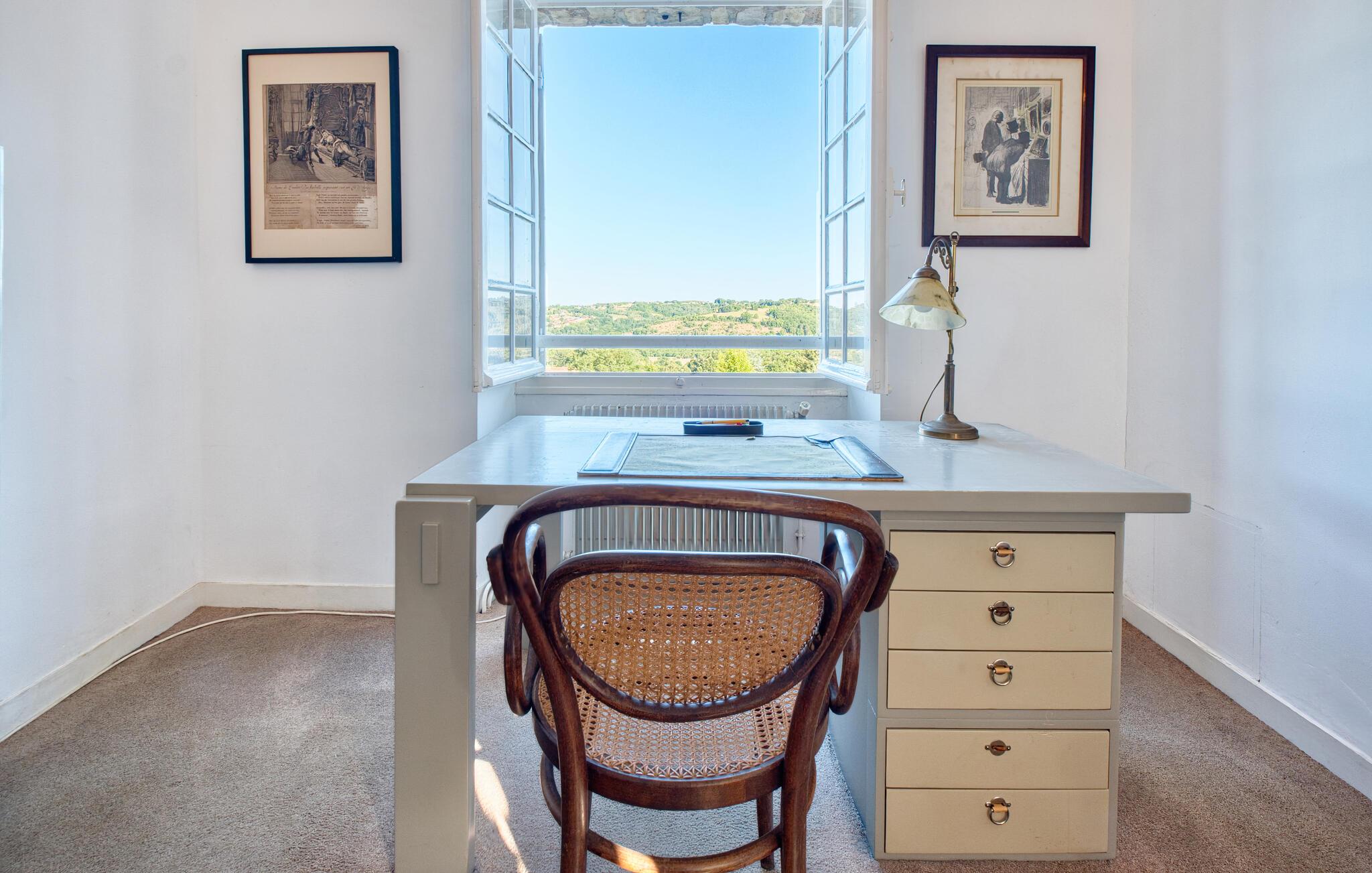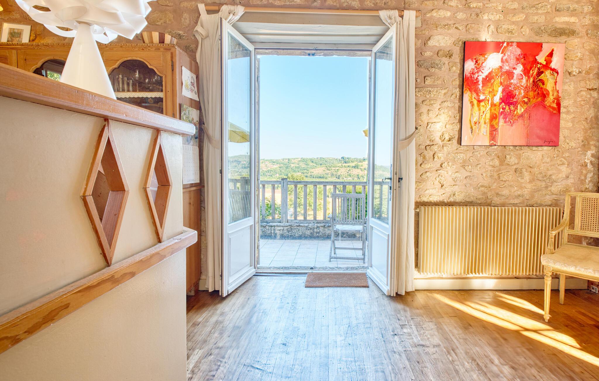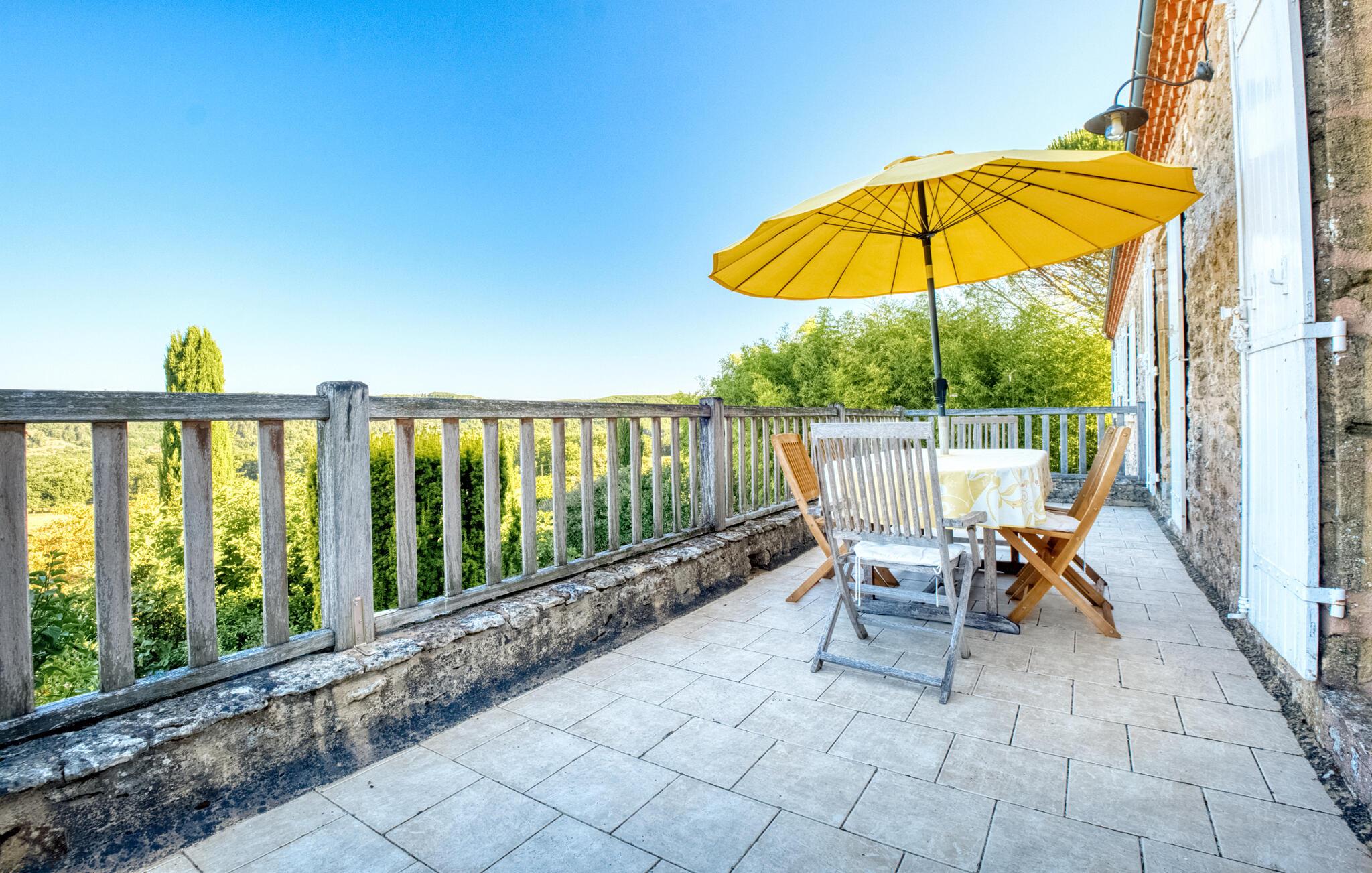Von der sonnigen Terrasse aus haben Sie einen traumhaften Blick über das grüne Tal und den Garten. Beginnen Sie den Tag mit einem Frühstück im Freien, entspannen Sie sich auf einer Sonnenliege oder springen Sie in den herrlichen Pool. Abends lädt der Grillplatz zu geselligen Stunden unter dem Sternenhimmel ein.
