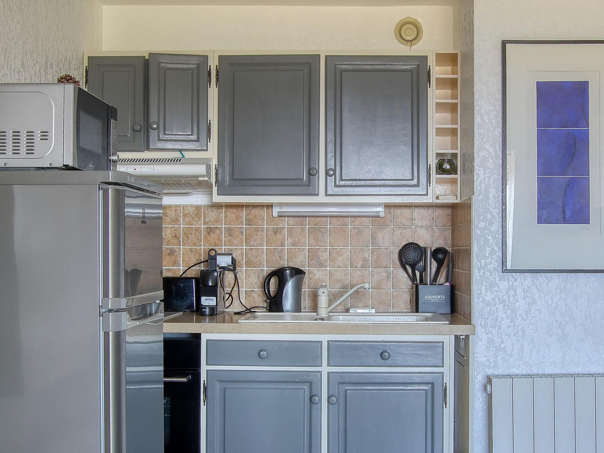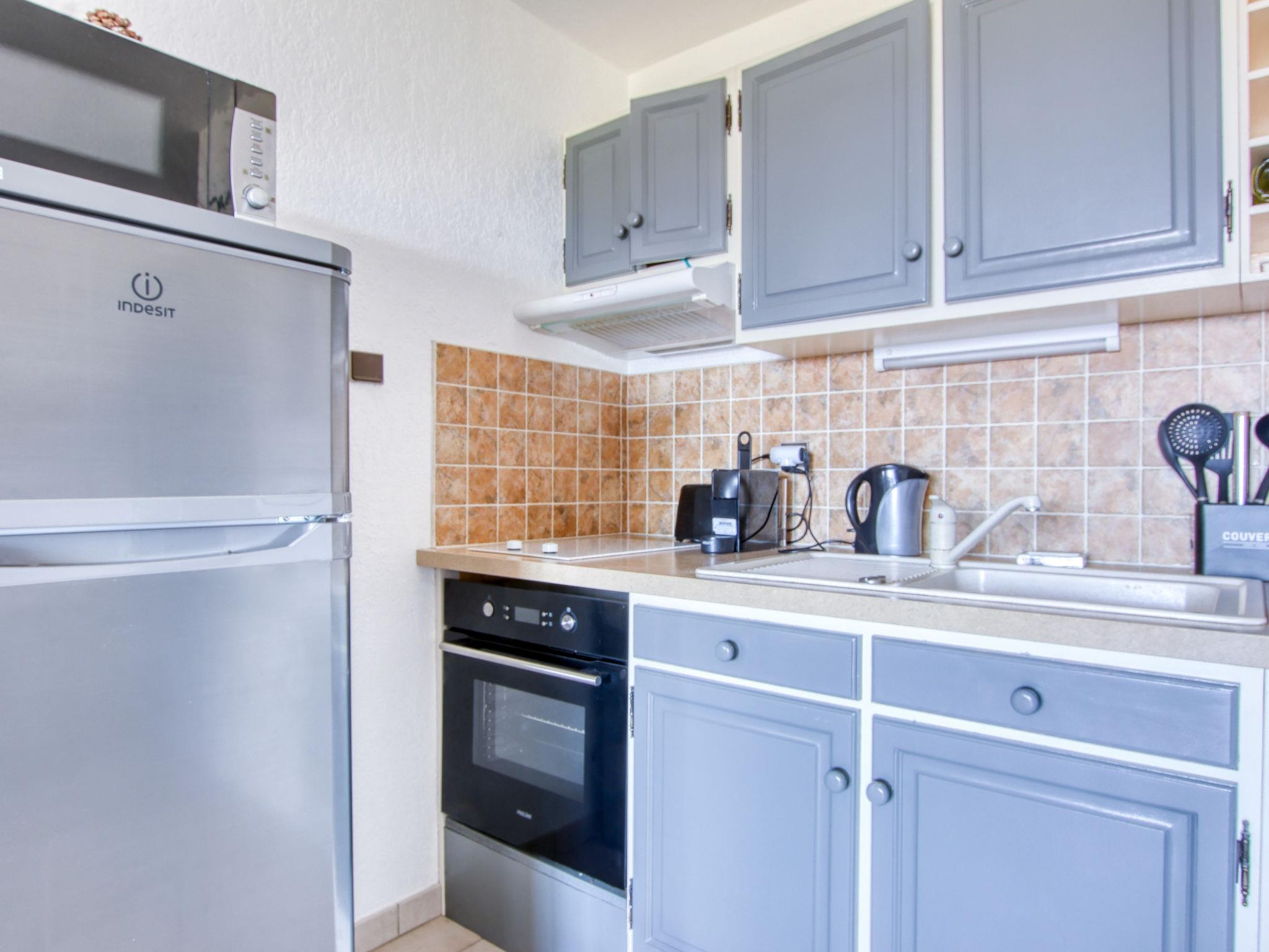 2-room apartment 35 m2 on 1st floor. Bright, comfortable and modern furnishings: living/dining room with 1 double sofabed (160 cm, length 190 cm), dining table and TV (flat screen), fan. Sleeping alcove 5 m2 with sliding door with 1 french bed (140 cm, length 190 cm), fan. Kitchenette (oven, 2 ceramic glass hob hotplates, toaster, kettle, microwave, electric coffee machine, Capsules for coffee machine (NESPRESSO) extra). Shower/WC. Electric heating. Marvellous view of the sea. Facilities: Internet (WiFi, free). Please note: non-smokers only. TV only FR. Smoke alarm, no lift. Offer by a private individual according to Art. 155, IV of CGI. FR 8354.500.4