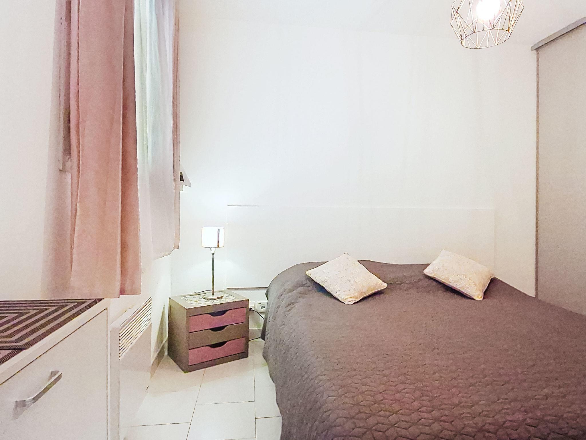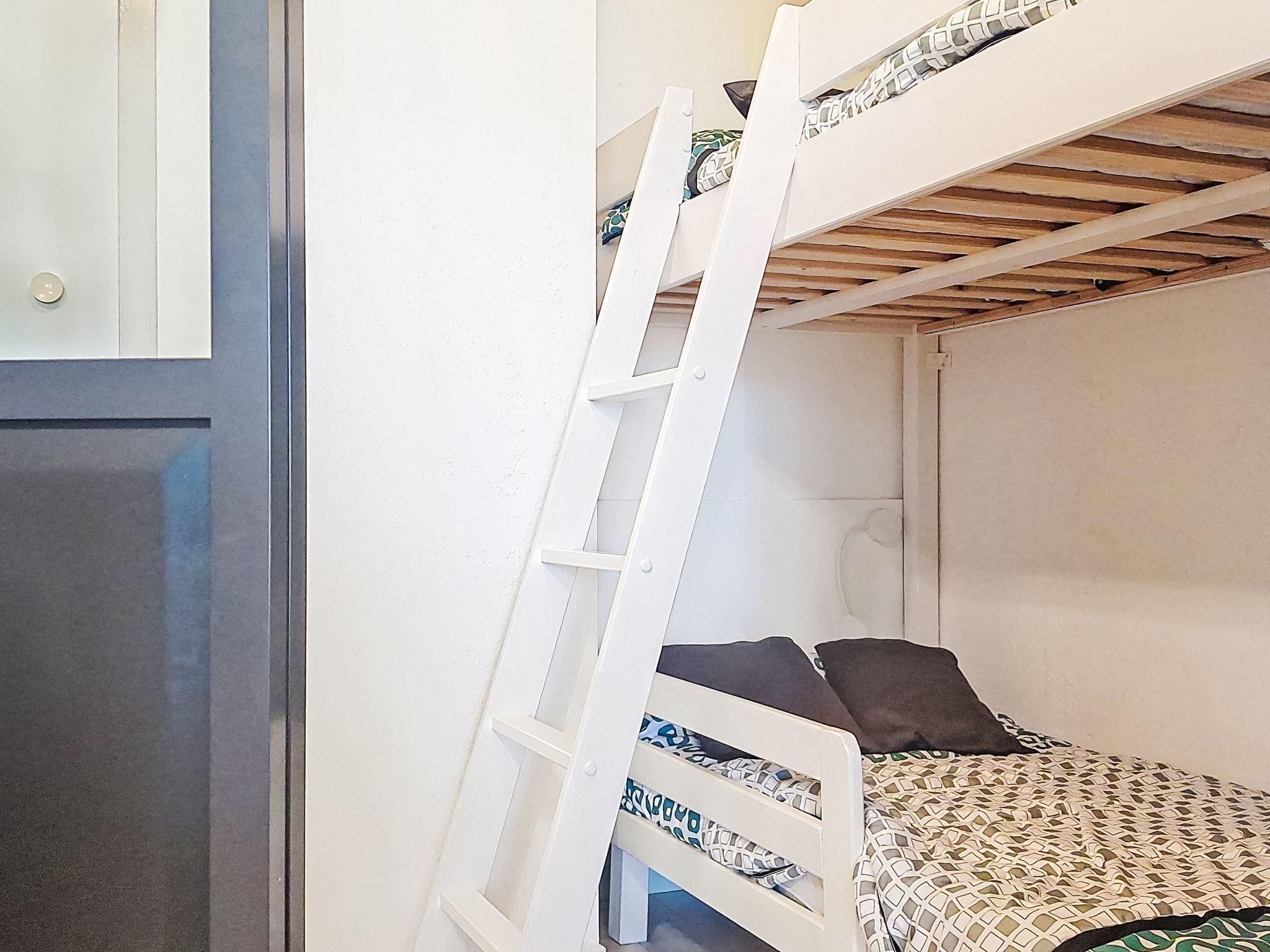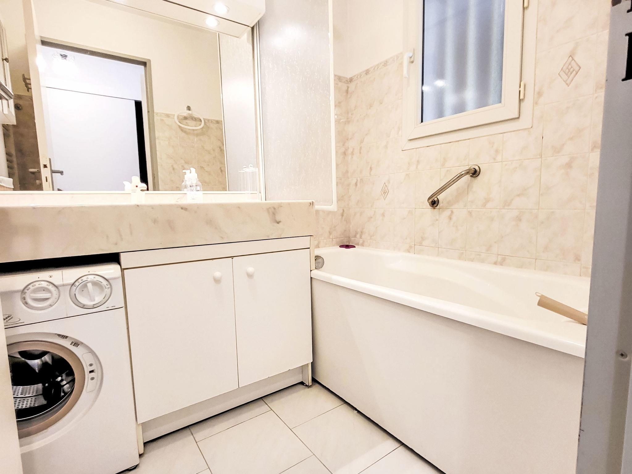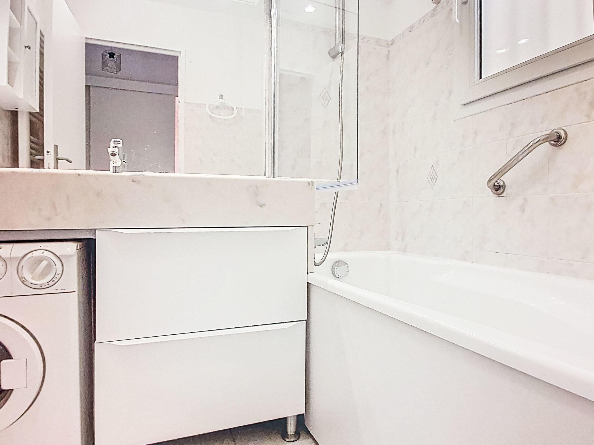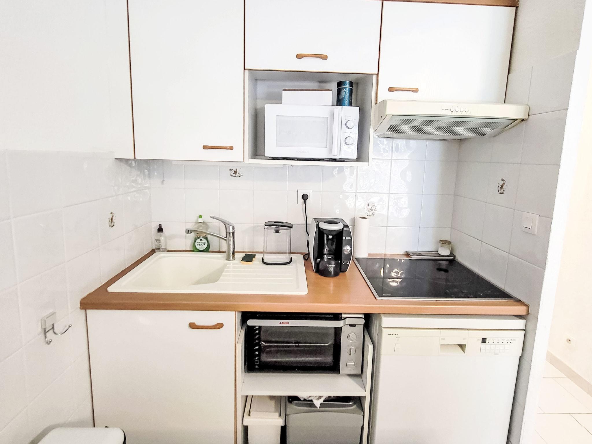2-room apartment 45 m2 on 2nd floor. Comfortable furnishings: living/dining room with TV (flat screen). Exit to the terrace. 1 room with 1 french bed (160 cm, length 200 cm), fan. 1 small room with sliding door, window onto the living room with 1 x 2 bunk beds (90 cm, length 200 cm). Kitchenette (dishwasher, 3 ceramic glass hob hotplates, toaster, microwave, freezer, electric coffee machine, Capsules for coffee machine (TASSIMO) extra). Bathroom, sep. WC. Electric heating. Terrace 10 m2, roofed. Terrace furniture. Facilities: washing machine. Internet (WiFi, extra). Please note: TV only FR. Smoke alarm. Offer by a private individual according to Art. 155, IV of CGI.