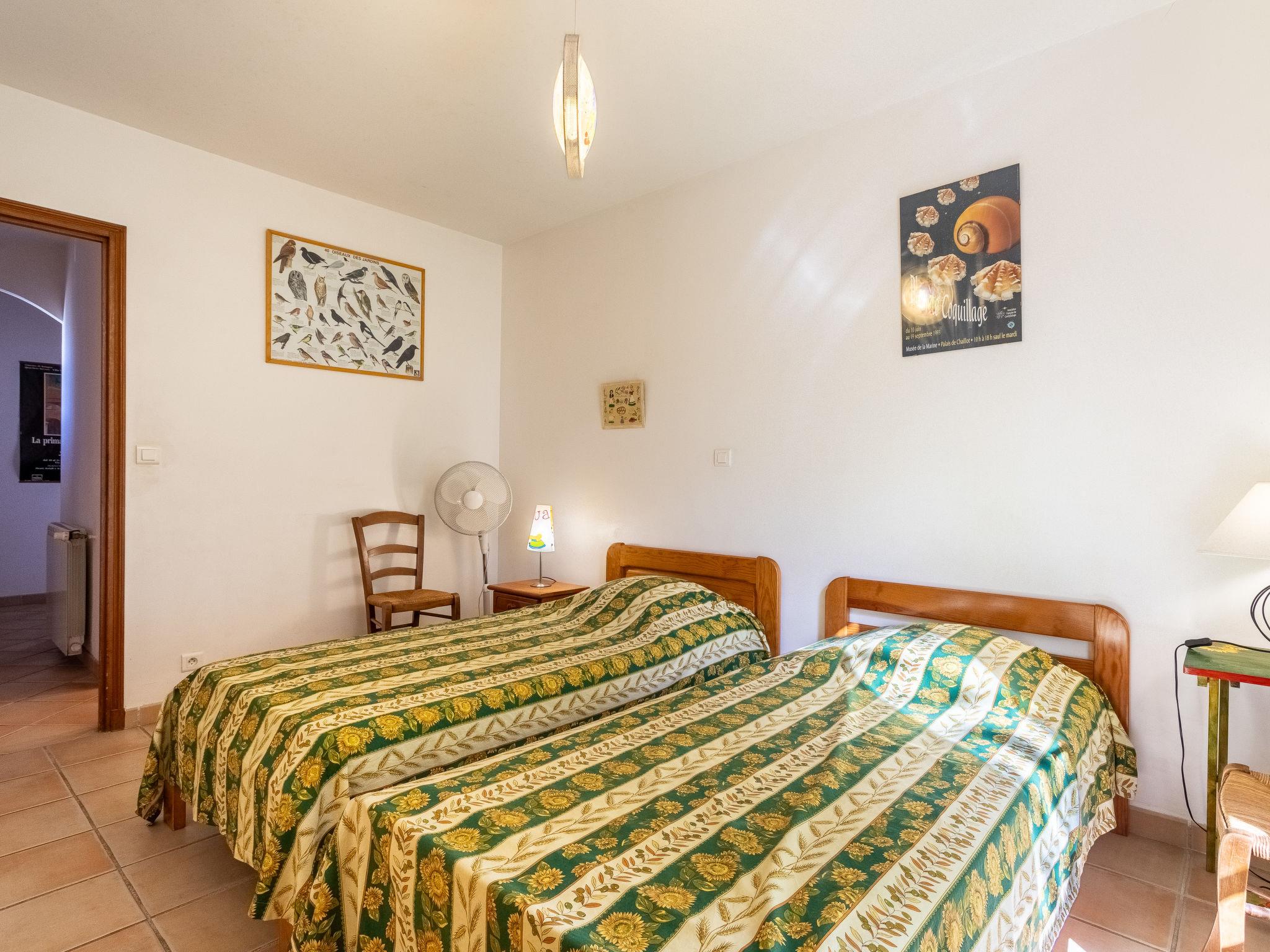 3-room apartment 80 m2 on 1st floor. Beautiful furnishings: lounge with TV and fan. Dining room. Exit to the terrace. 1 room with 2 beds (90 cm, length 190 cm), fan. 1 room with 2 beds (90 cm, length 190 cm), shower and fan. Open kitchen (4 hot plates, mini-oven, dishwasher, toaster, kettle, microwave, freezer, electric coffee machine). Exit to the terrace. Shower, sep. WC. Heating. Large terrace 25 m2 partly roofed, north-east facing position. Terrace furniture. Facilities: washing machine, iron, baby cot for up to 2 year olds. Internet (WiFi, free). Parking (fenced). Please note: TV only FR. Smoke alarm. The living room opens on to the dining room. 08310083-12919-0098