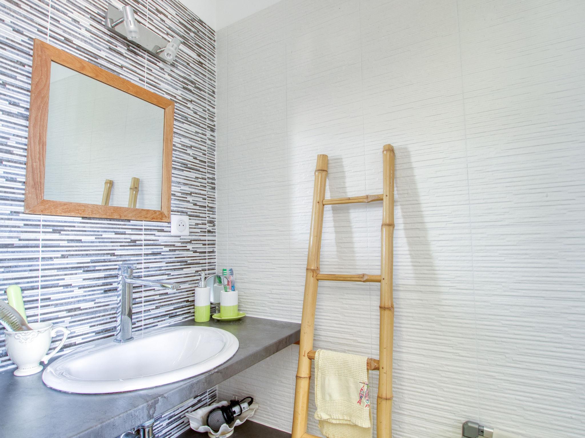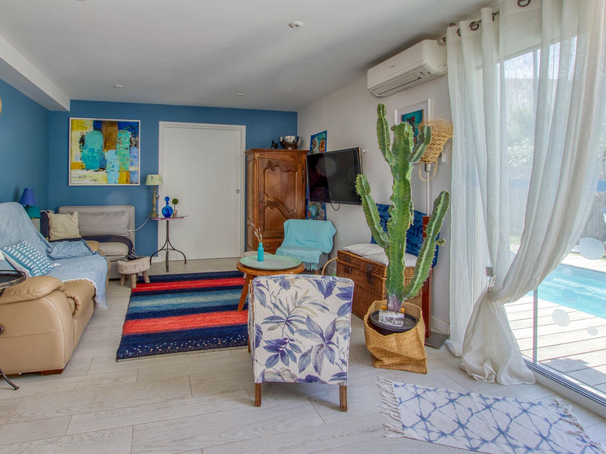 4-room house 100 m2 on 2 levels. Living/dining room with TV (flat screen), air conditioning. Exit to the garden, to the terrace, to the swimming pool. 1 room with 1 french bed (160 cm, length 200 cm), shower and air conditioning. Exit to the garden. 1 room with 1 french bed (140 cm, length 190 cm). Open kitchen (4 hot plates, oven, dishwasher, kettle, microwave, freezer, electric coffee machine, Capsules for coffee machine (Nespresso) extra). Sep. WC. Forced-air heating. Upper floor: (spiral staircase), 1 room with 1 bed (90 cm, length 190 cm), separate WC and shower. South facing position and, east facing position. Terrace furniture, electric barbecue. Facilities: washing machine, dryer, mosquito net. Internet (WiFi, free). Parking (fenced), width 240 cm. Please note: parking space for small car only. Maximum 1 pet/ dog allowed. Smoke alarm. Small car parking. Offer by a private individual according to Art. 155, IV of CGI.