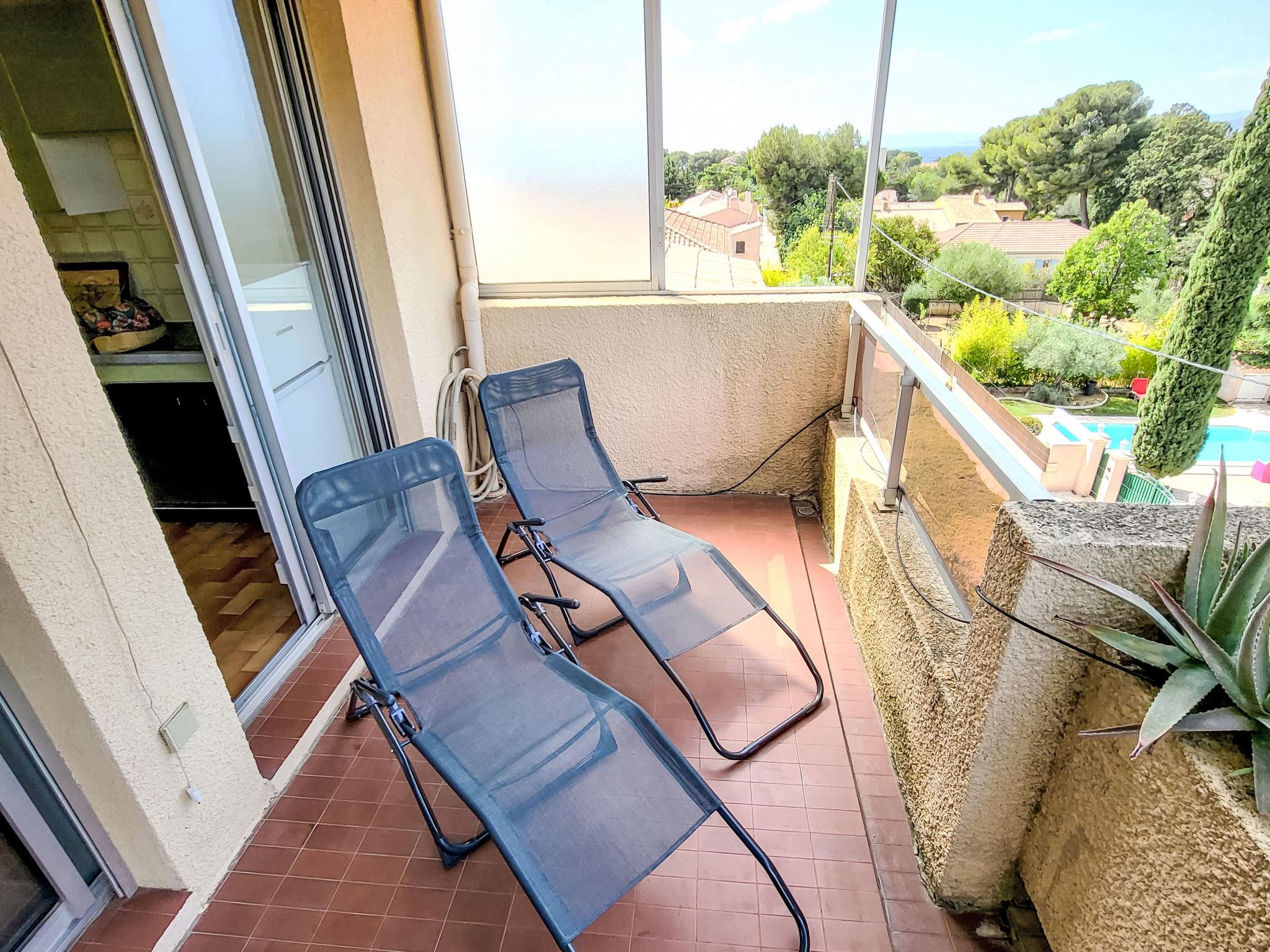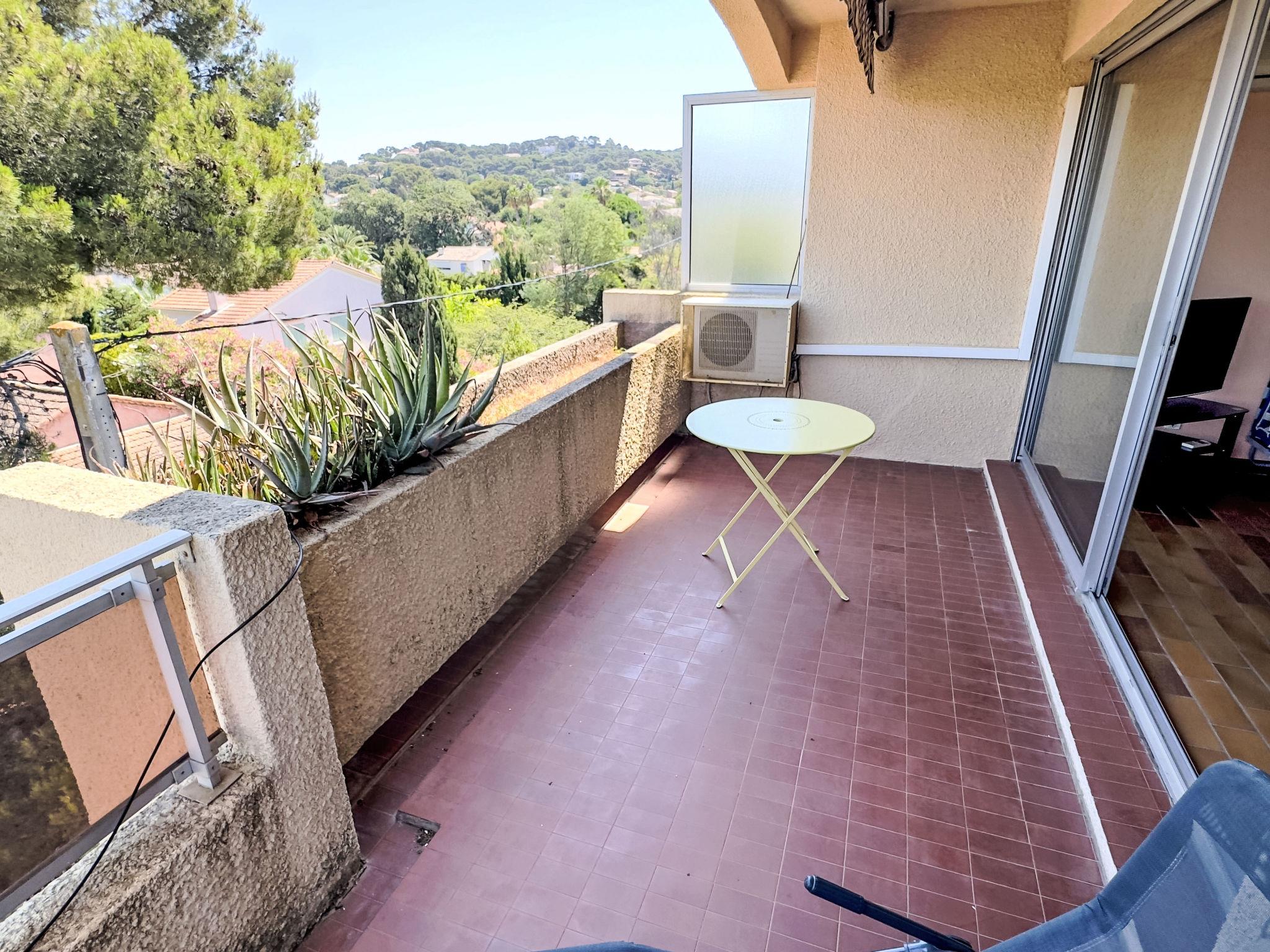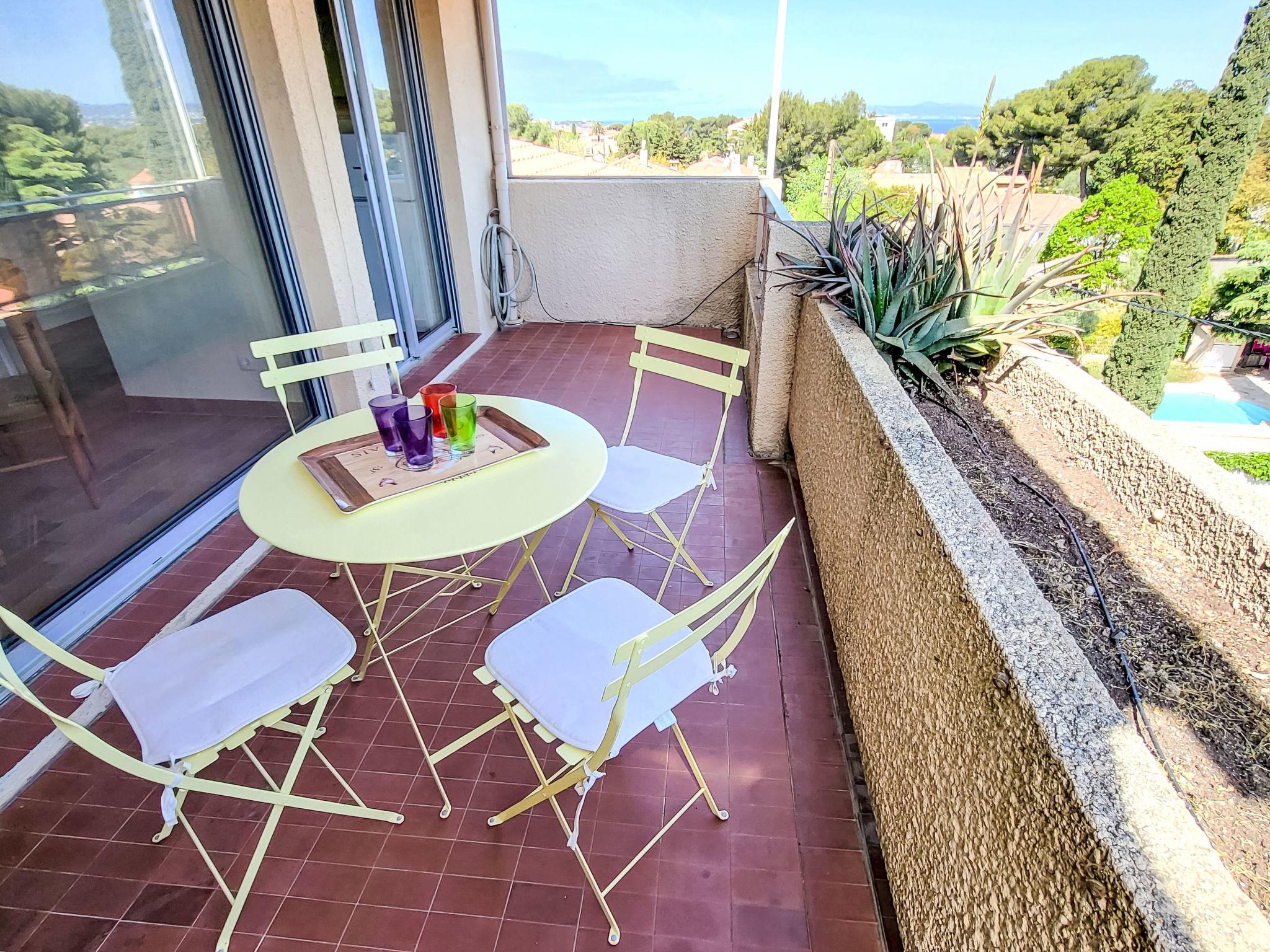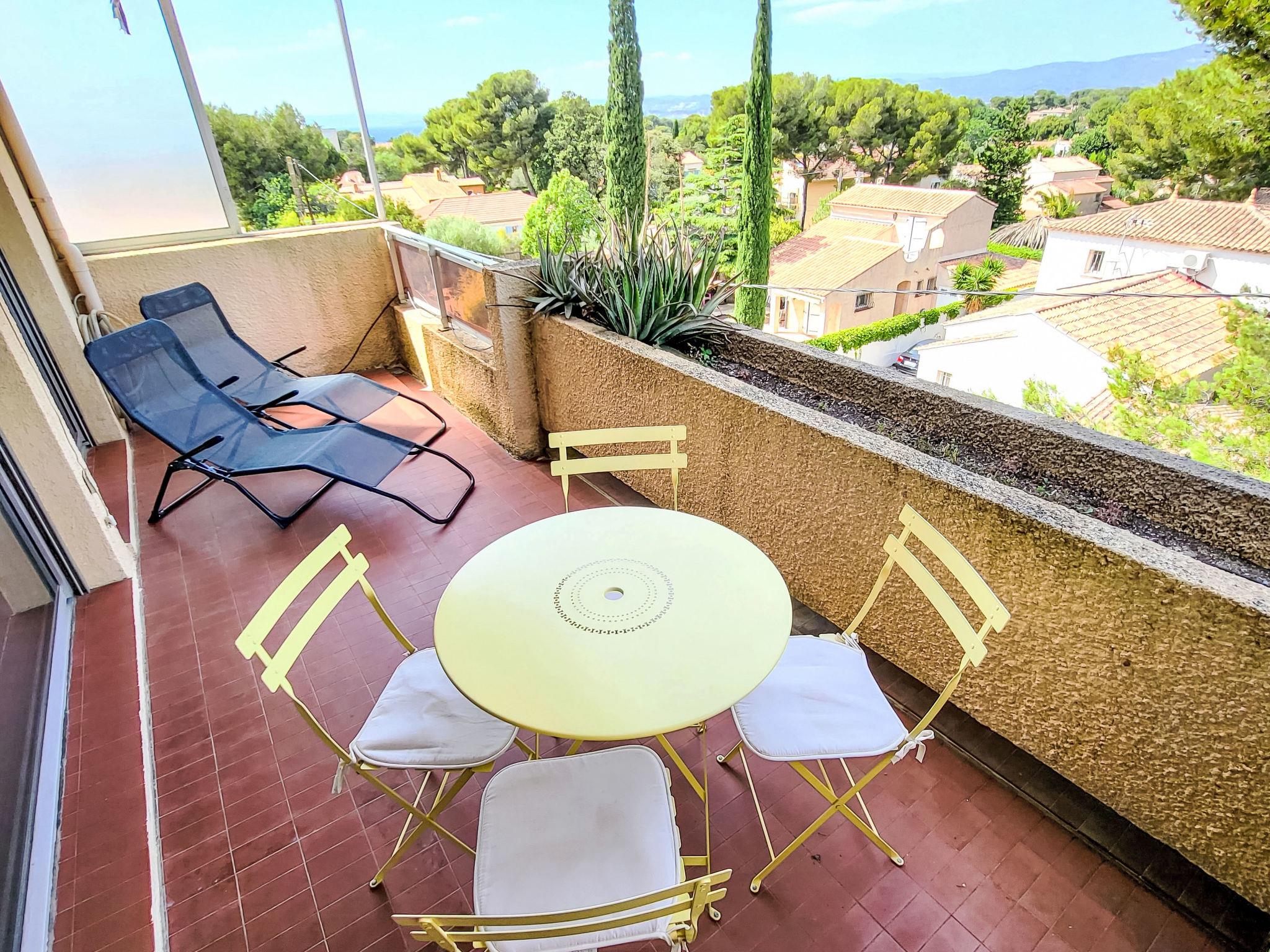 1-room apartment 28 m2 on 3rd floor. Comfortable furnishings: living/dining room with 1 sofabed (140 cm, length 190 cm), dining table and TV (flat screen). Exit to the veranda. Entrance hall with 1 bed (80 cm, length 190 cm). Kitchenette (2 ceramic glass hob hotplates, toaster, kettle, freezer, electric coffee machine, combination microwave). Bath/WC. Electric heating. Terrace 15 m2, roofed. Terrace furniture. Partial view of the sea. Facilities: washing machine. Internet (WiFi, extra). Please note: non-smokers only. TV only FR. Smoke alarm, no lift. Offer by a private individual according to Art. 155, IV of CGI.