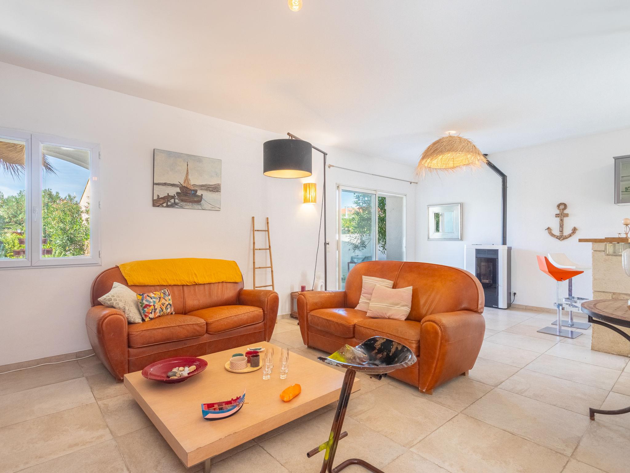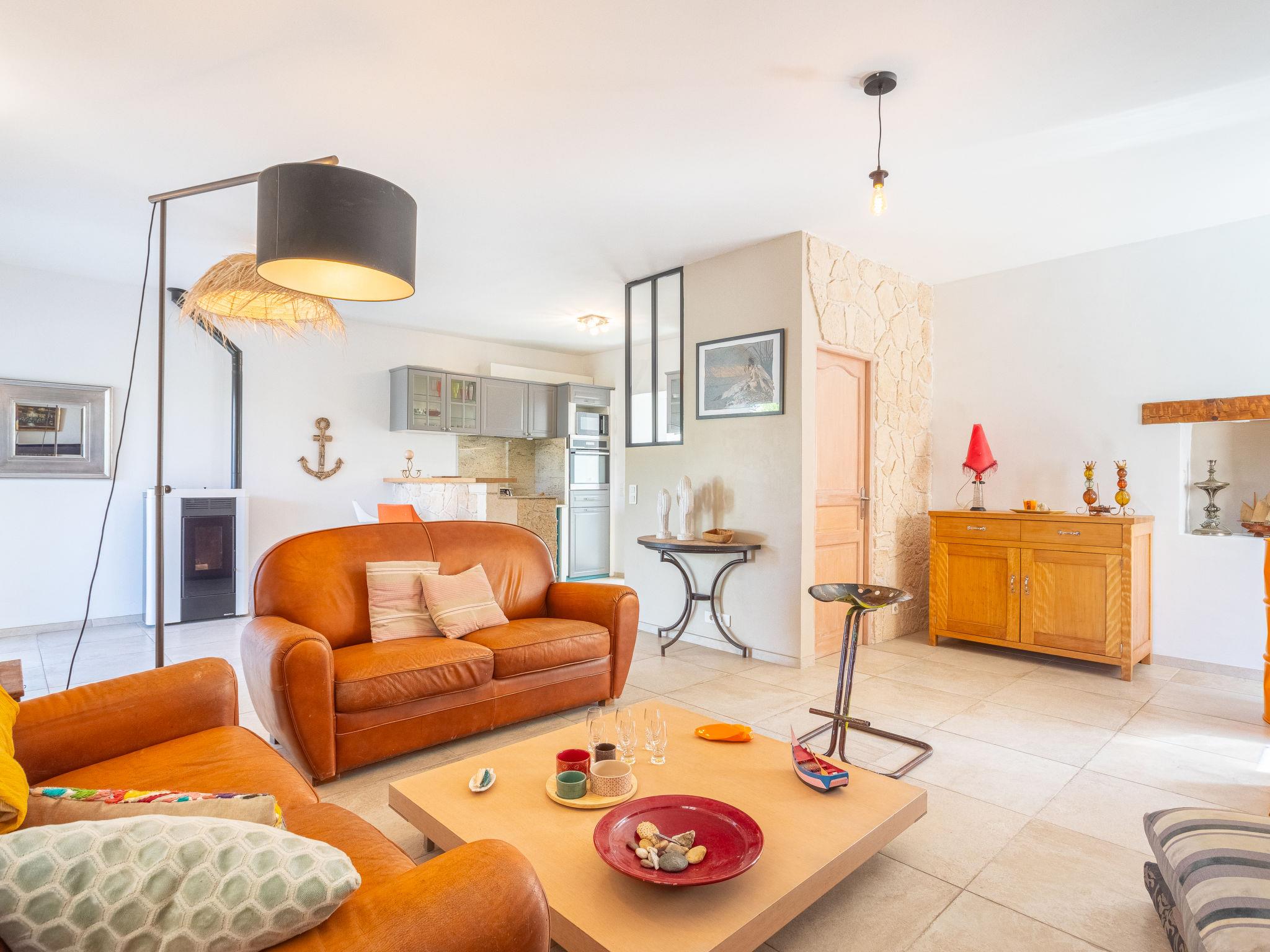 "La maison du Port", 5-room house 150 m2 on 3 levels. Beautiful furnishings: living room with Scandinavian wood stove, TV and digital TV (flat screen). Exit to the terrace. Dining room with dining table. Exit to the patio. 1 room with 1 french bed (140 cm, length 190 cm), shower/WC. Exit to the patio. Open kitchen (oven, dishwasher, 3 induction hot plates, toaster, kettle, microwave, freezer, electric coffee machine). Sep. WC. Upper floor: office. Exit to the terrace. 1 room with Dressing room with 1 french bed (160 cm, length 190 cm), air conditioning. Exit to the terrace. 1 room with 1 french bed (140 cm, length 190 cm), air conditioning. Shower/WC. 2nd upper floor: (steep stair), 1 room with sloping ceilings with rooflight with 1 french bed (140 cm, length 190 cm). Electric heating. Terrace furniture, barbecue (portable), deck chairs (6). Partial view of the sea and the port. Facilities: washing machine, iron. Internet (WiFi, free). Please note: one double bedroom is outside the apartment. Non-smoking house. Maximum 1 pet/ dog allowed. Smoke alarm. Offer by a private individual according to Art. 155, IV of CGI.