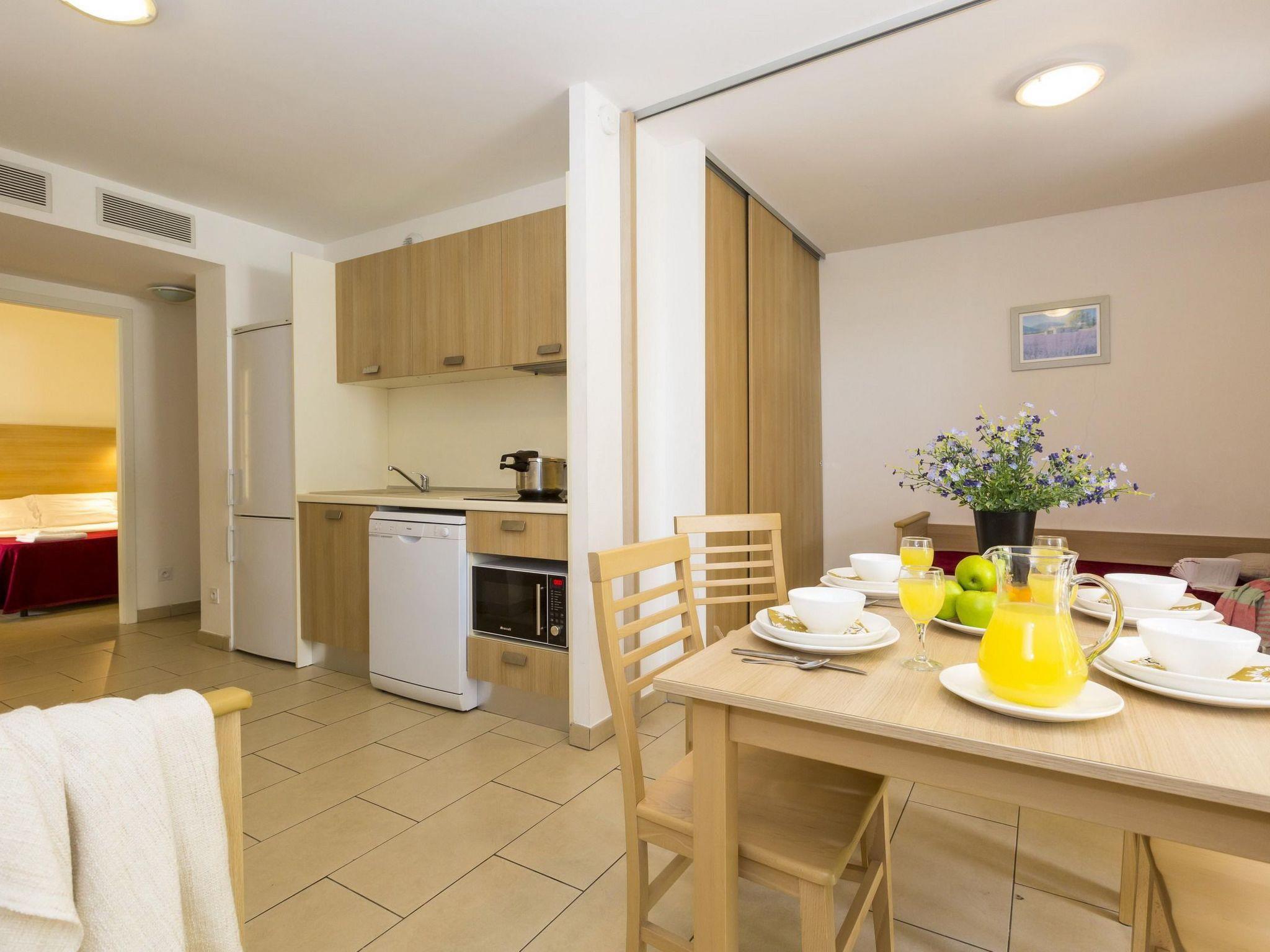Two-room flat for 4 people, 40 m2: Living room with double sofa bed, TV, kitchenette (microwave, dishwasher, fridge), bedroom with double bed (140 cm bed), bathroom with shower. Air conditioning. Balcony.