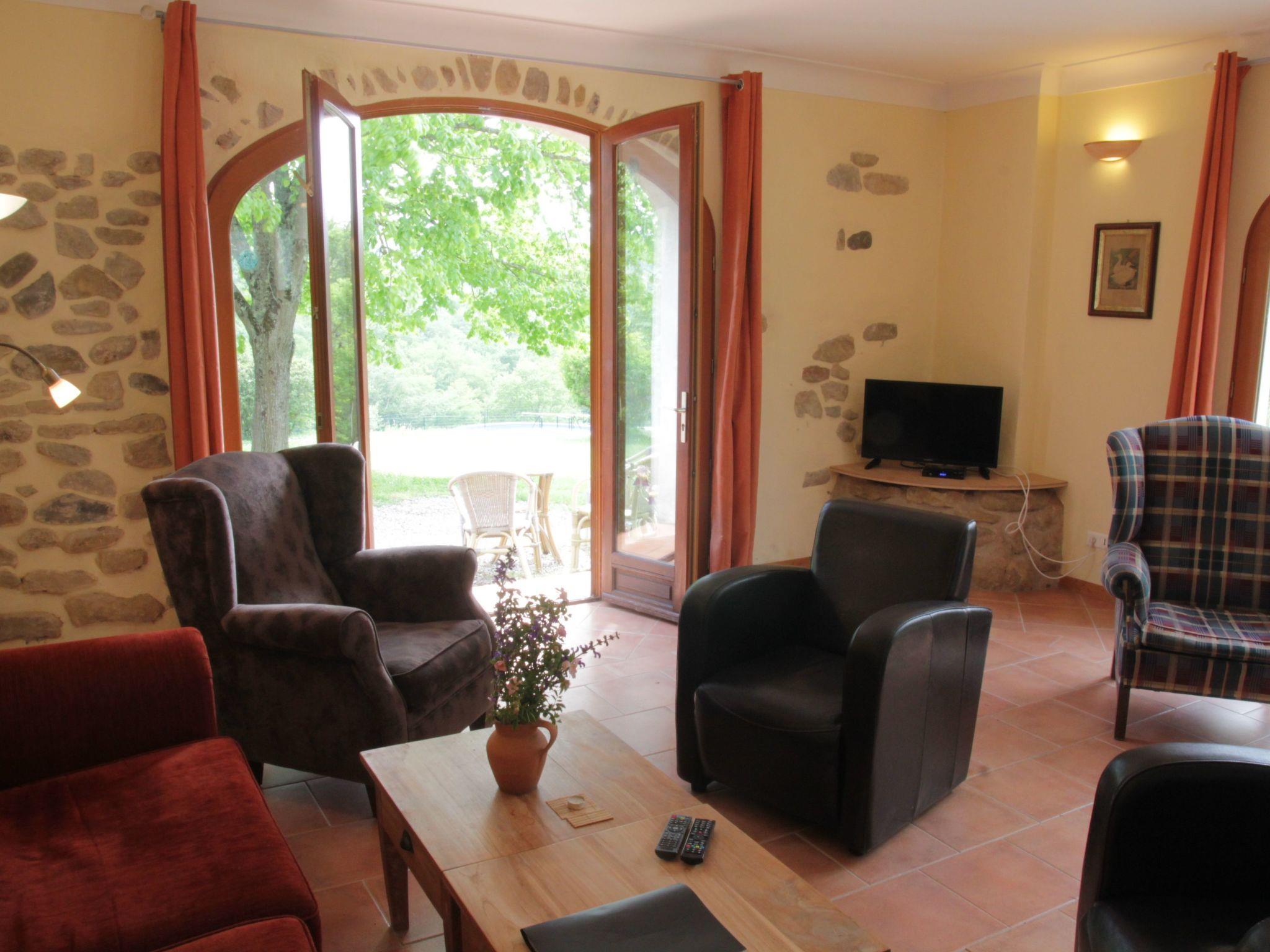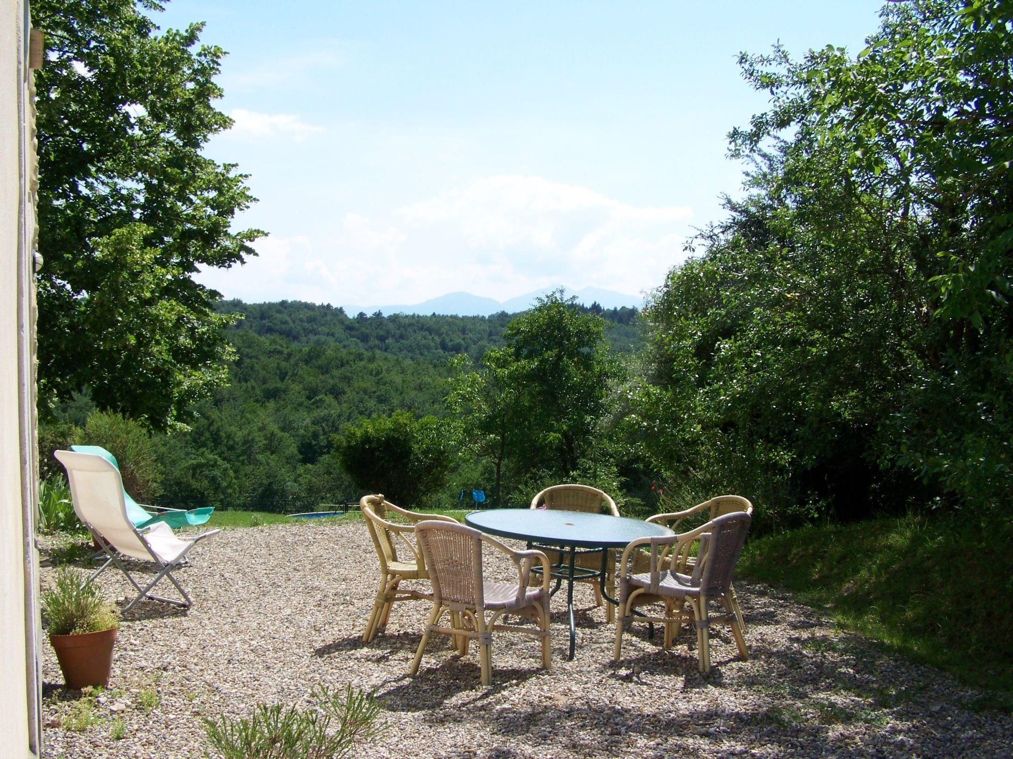 From the patio in front of the natural stone wall, enjoy the gorgeous views over the Pyrenees and the property, as well as the community pool. Outdoor furniture and a barbecue are available for your use and to enjoy al fresco dining.