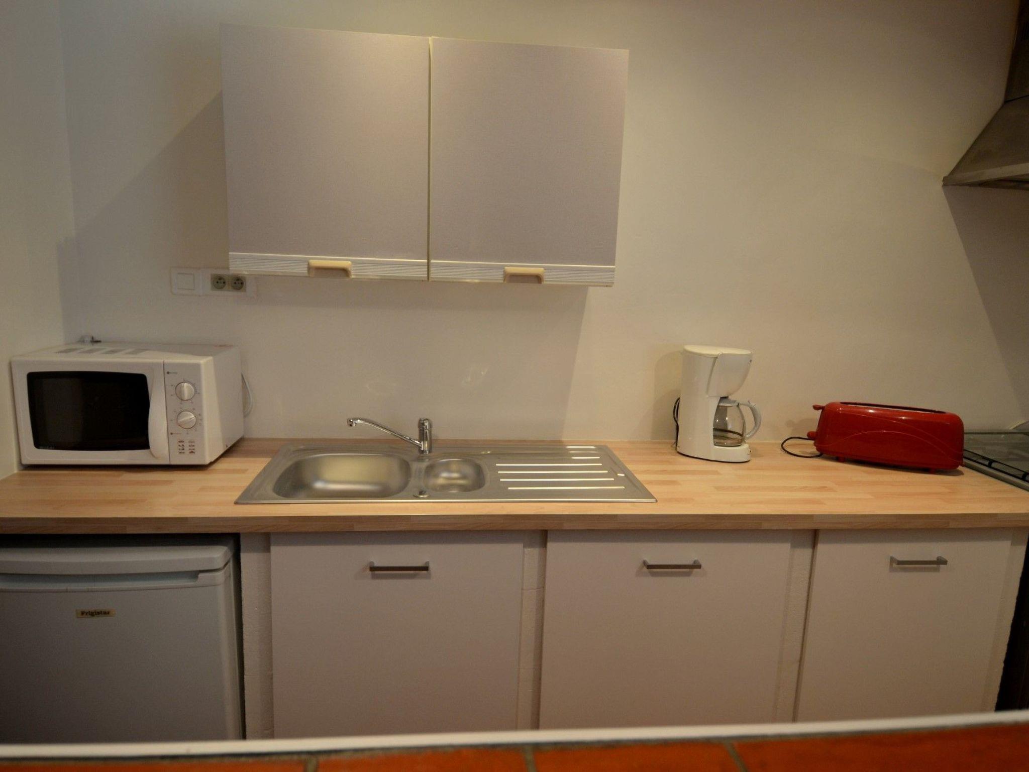 This gite is suitable for two people and consists of a living and sleeping room with 45m² of living space. The room has a practical layout and has a well-equipped kitchen with a gas stove, oven, microwave, fridge with freezer compartment, coffee machine, kettle, toaster and plenty of crockery and cutlery, a dining table with four chairs, a sitting cornerand a sleeping corner with a double bed. The bathroom has a walk-in shower.