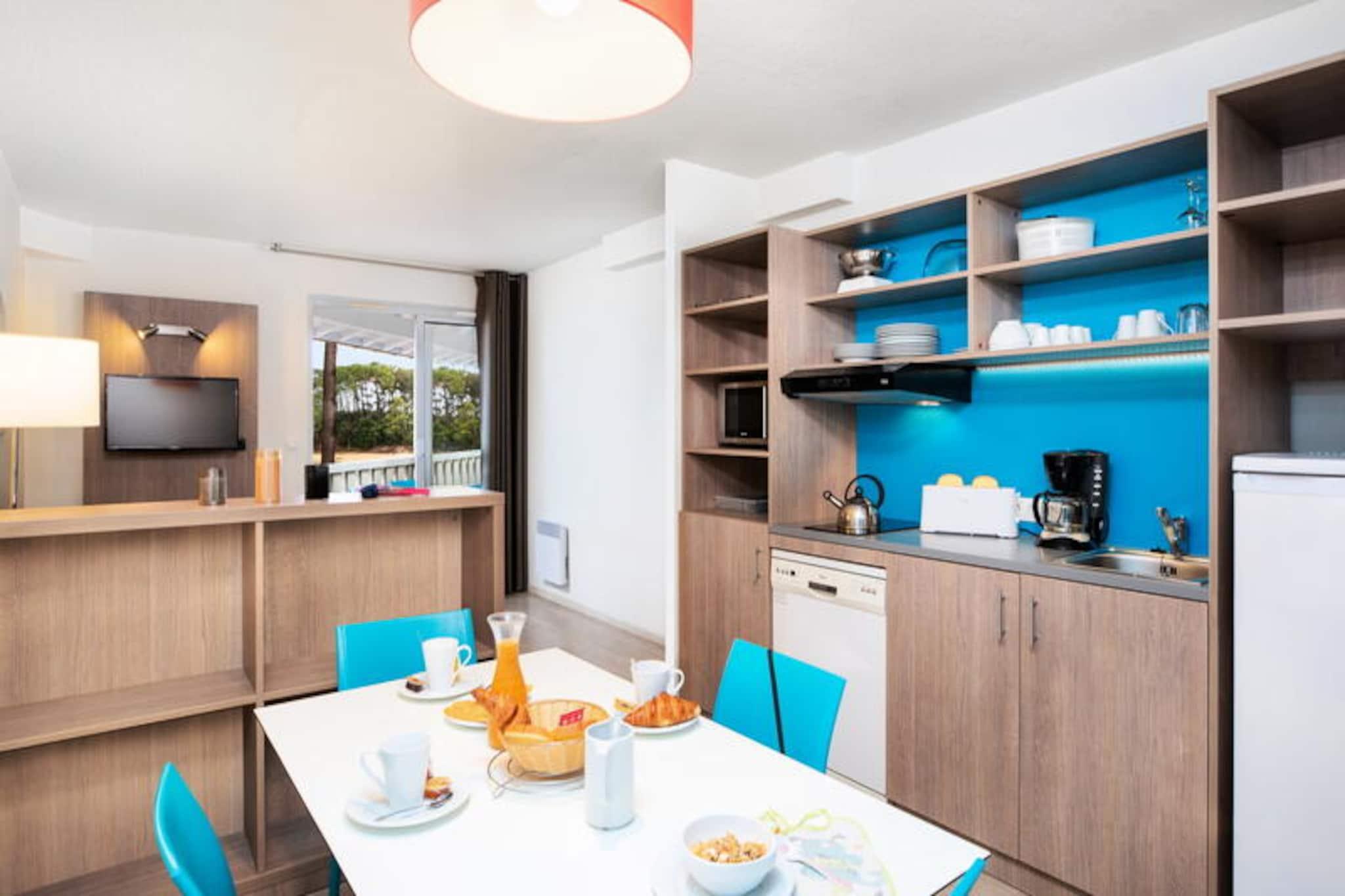 On the edge of the Marine Lake of Port d'Albret, the SOWELL Family Pignada Plage*** is the ideal establishment for discovering the Landes and enjoying a family vacation by the ocean at Soustons Plage. Just 600 meters from the ocean and ideally located on the shores of the marine lake, the Residence is made up of 111 apartments divided into several small buildings, which can accommodate up to 8 people. Some rentals offer a pleasant view of the park and its pine forest of pines and hydrangeas or the marine lake. The numerous facilities available at the residence will place your family vacation under the sign of relaxation and entertainment: swimming pool, tennis courts, pétanque The Landes are known to be a true “Kingdom of Cycling” ! You can bring your bikes or rent them on site. On two wheels, you can easily get to the first shops (5 mins by bike / 10 mins on foot) to Vieux Boucau (10 mins by bike / 20 mins on foot) or the Ocean. Leave your car in the car park and take advantage of the numerous cycle paths to explore the region! Fine sand dunes, surfing on the fiery waves of the Atlantic, swimming in the clear waters of the marine lake or even bike rides towards Vieux-Boucau, you will appreciate the numerous sporting and leisure activities, not to mention the numerous unmissable tourist sites nearby. Please note: the children's club will no longer be offered from summer 2025. Living room with single sofa bed Equipped kitchen Bedroom with double bed Shower room, separate WC Terrace Wifi access - Free Wifi at reception and in the apartments - possibility of Premium Wifi - rates on site. Pets allowed - 10€ / animal / night - 1 per accommodation, dogs must be kept on a leash, and do not have access to the common areas of the residence. Deposit (additional) - 300 Bed linen - Included Towels - Included Baby cot - Yes - free on request with accommodation reservation. Parking - Free outdoor parking. Swimming pool - Outdoor swimming pool - Free - open all season. Tourist tax (additional charge) - To be paid on site, see the current rate. Television - Included