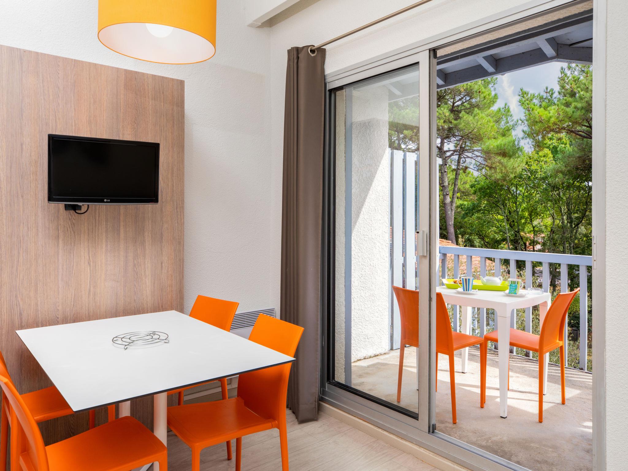 Resort "Sowell Family Pignada Plage", 4 storeys. 2 houses in the residence. 111 apartments in the residence. In the district of Port d'Albret 900 m from the centre of Vieux-Boucau, 7.5 km from the centre of Soustons, 15 km from the centre of Hossegor, 1.7 km from the sea, 50 m from the lake. For shared use: natural state property with trees, swimming pool (18 x 9 m, depth 45 - 150 cm, seasonal availability: 01.Apr. - 30.Sep.). Tennis (extra), table tennis, boccia. In the complex: reception, restaurant, lift, storage room for bicycles, washing machine, tumble dryer (for shared use, extra), bicycle rental. Parking (limited number of spaces). Shop 900 m, sandy beach "Vieux-Boucau" 1.7 km, bathing lake "Lac Marin de Port d'Albret" 50 m. Golf course (18 hole) 10 km. Please note: the photograph shows a typical example. The holiday properties may differ in living space, floorplan, equipment and furnishing.