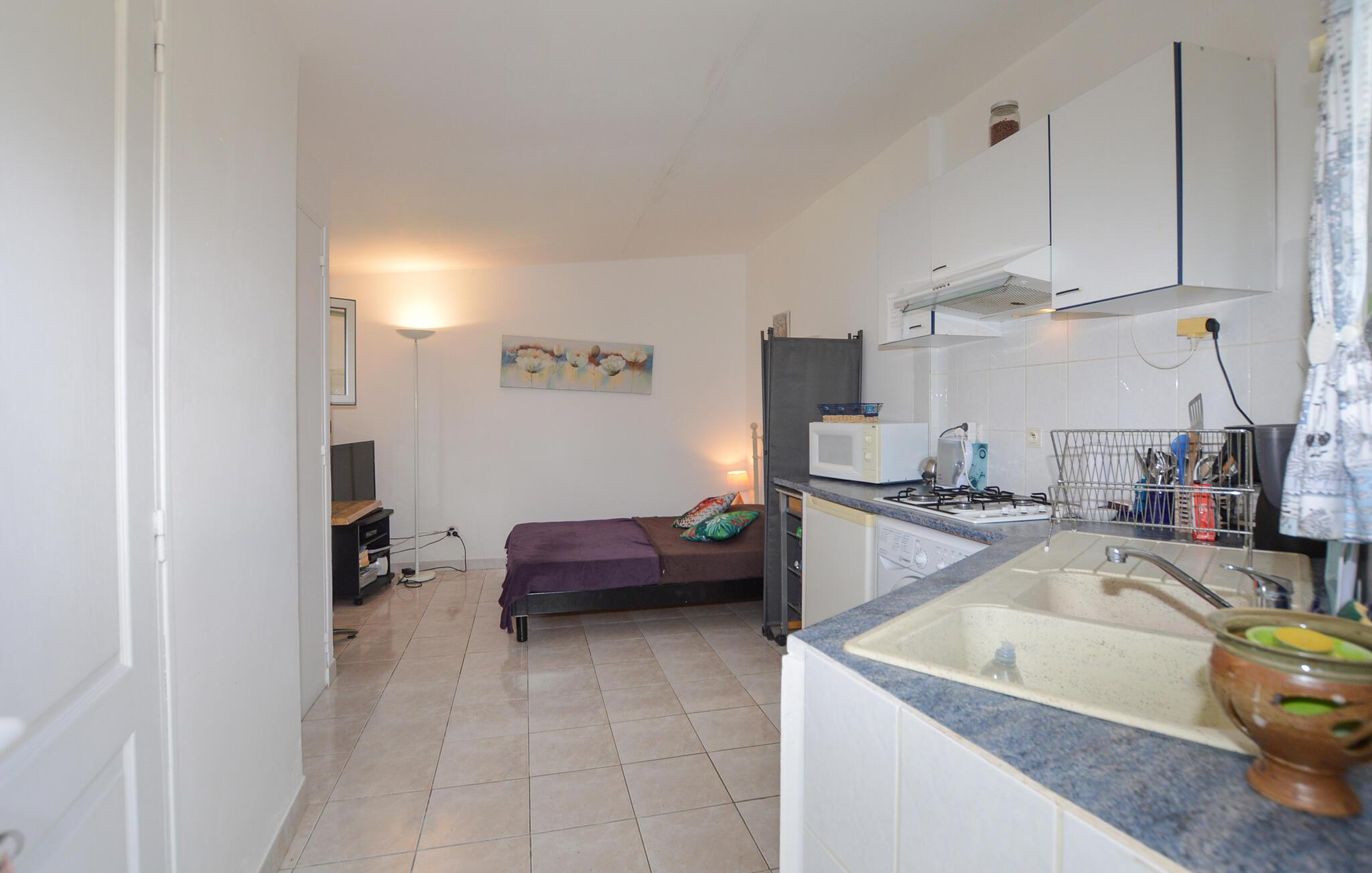 Dieses einladende Studio bietet Ihnen eine angenehme Basis, um dem Alltag zu entfliehen und idyllische Ruhe mit spannenden Ausflügen zu verbinden. Bereiten Sie Ihre Mahlzeiten oder den Proviant in der offenen Küche zu und ruhen Sie sich nach einem langen Tag mit einem Buch oder einem Brettspiel aus.