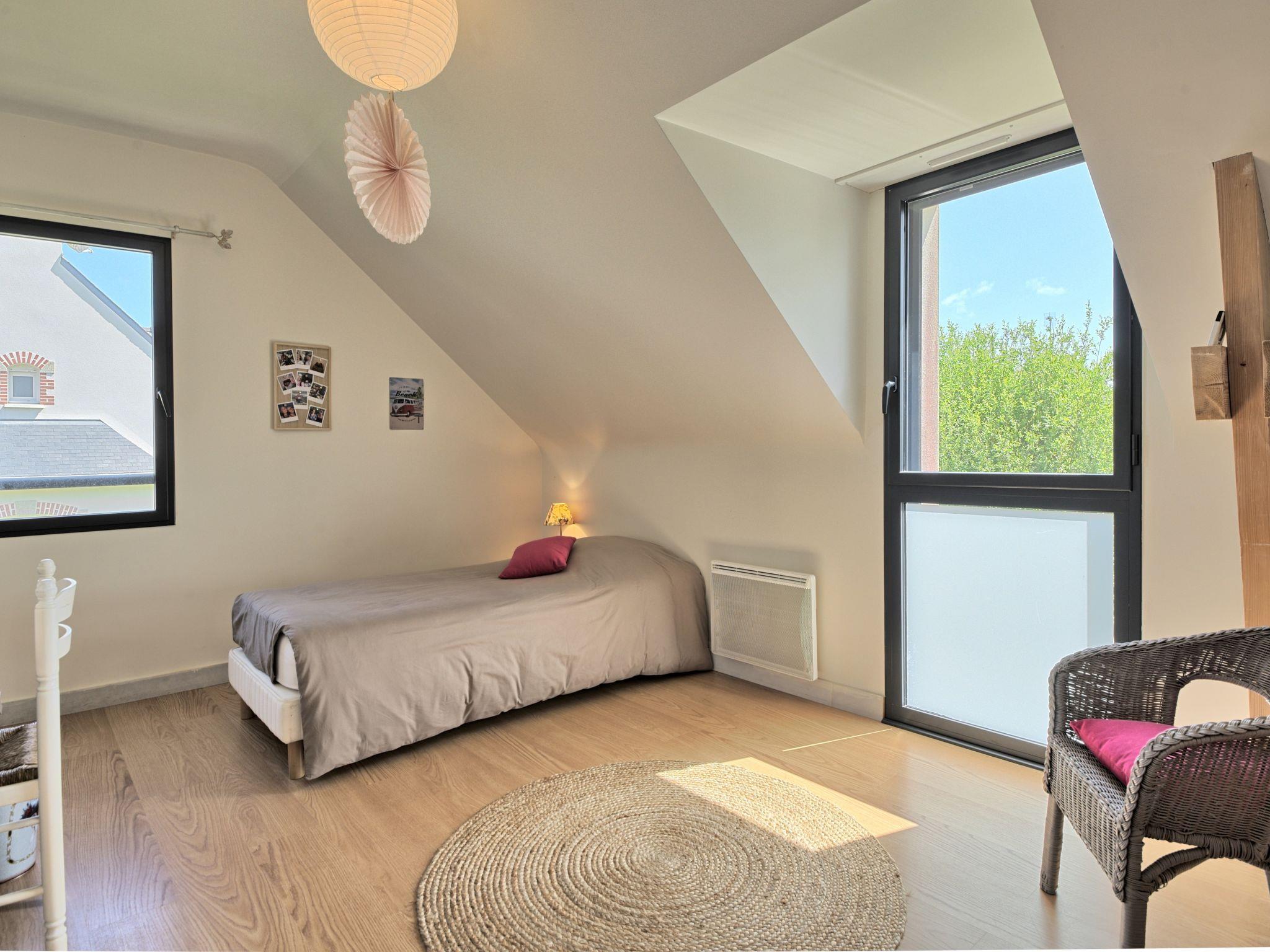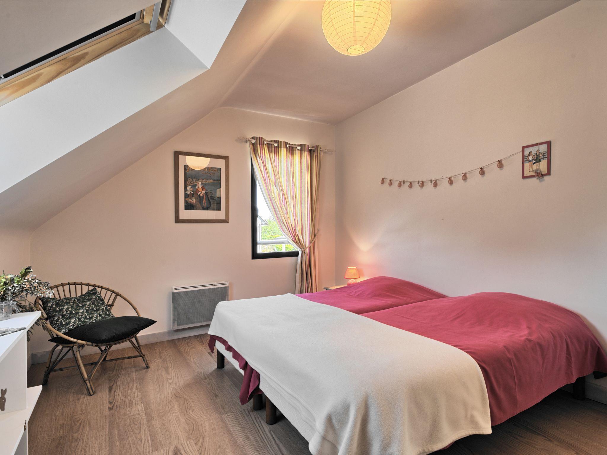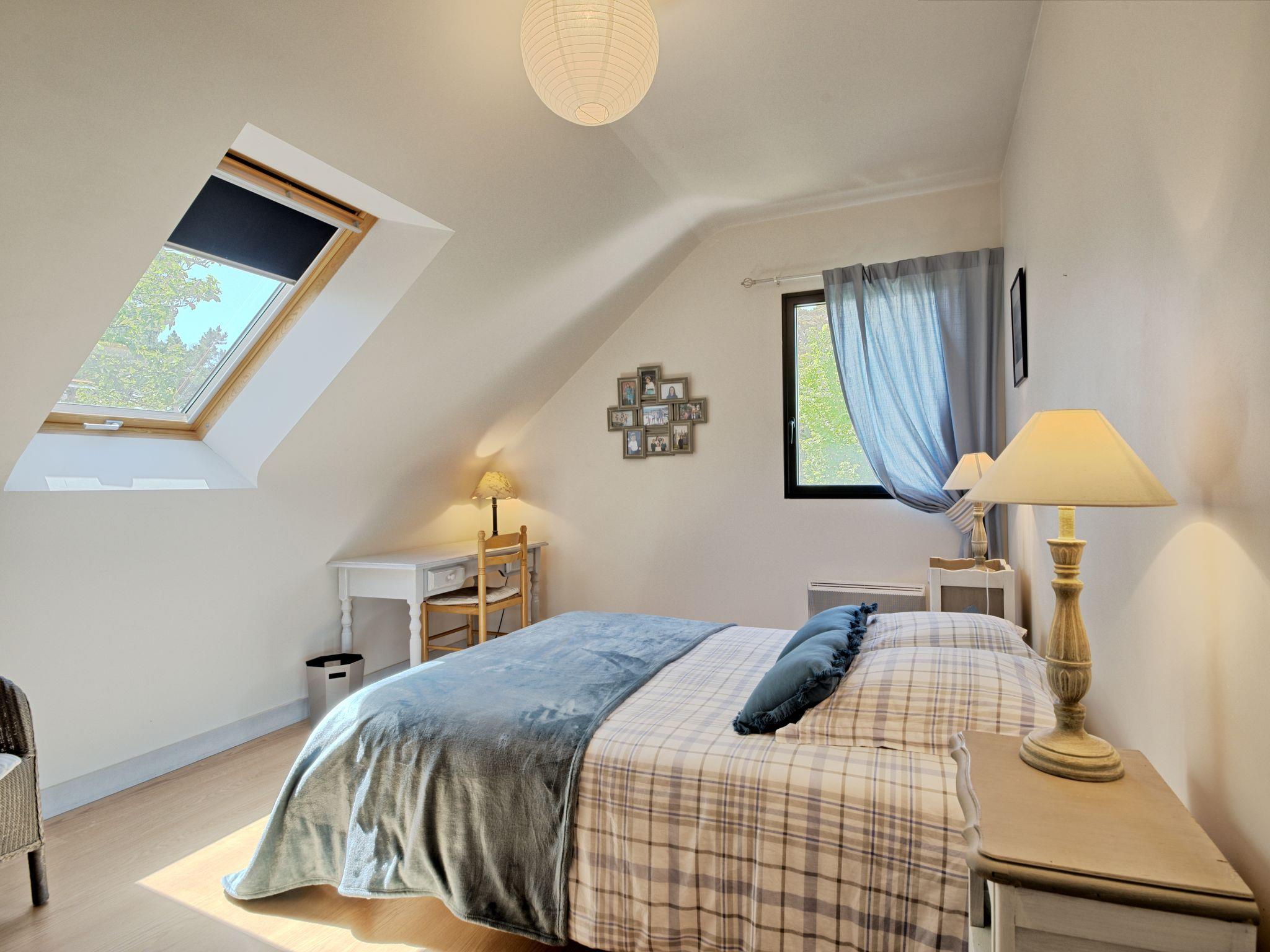 7-room house 160 m2. Object suitable for 10 adults. Spacious and bright, very beautiful furnishings: entrance hall. Large living room with TV (flat screen), hi-fi system. Exit to the garden. 1 room with 1 french bed (140 cm, length 190 cm), shower/WC. Exit to the garden. Kitchen (oven, dishwasher, 3 gas rings, toaster, kettle, microwave, freezer, electric coffee machine). Sep. WC. Upper floor: 1 room with sloping ceilings with 1 french bed (140 cm, length 190 cm). 1 room with sloping ceilings with 2 beds (90 cm, length 190 cm). 1 room with sloping ceilings with 1 double bed (2 x 80 cm, length 200 cm). 1 room with sloping ceilings with 1 bed (90 cm, length 190 cm). 1 room with sloping ceilings with 1 bed (90 cm, length 190 cm). Bathroom, shower, sep. WC. Electric heating. Terrace furniture, barbecue (portable), deck chairs (6). Facilities: washing machine, iron, children's high chair, baby cot for up to 2 year olds. Internet (WiFi, free). Please note: suitable for families. Non-smoking house. Smoke alarm. Offer by a private individual according to Art. 155, IV of CGI. 56214000115K7