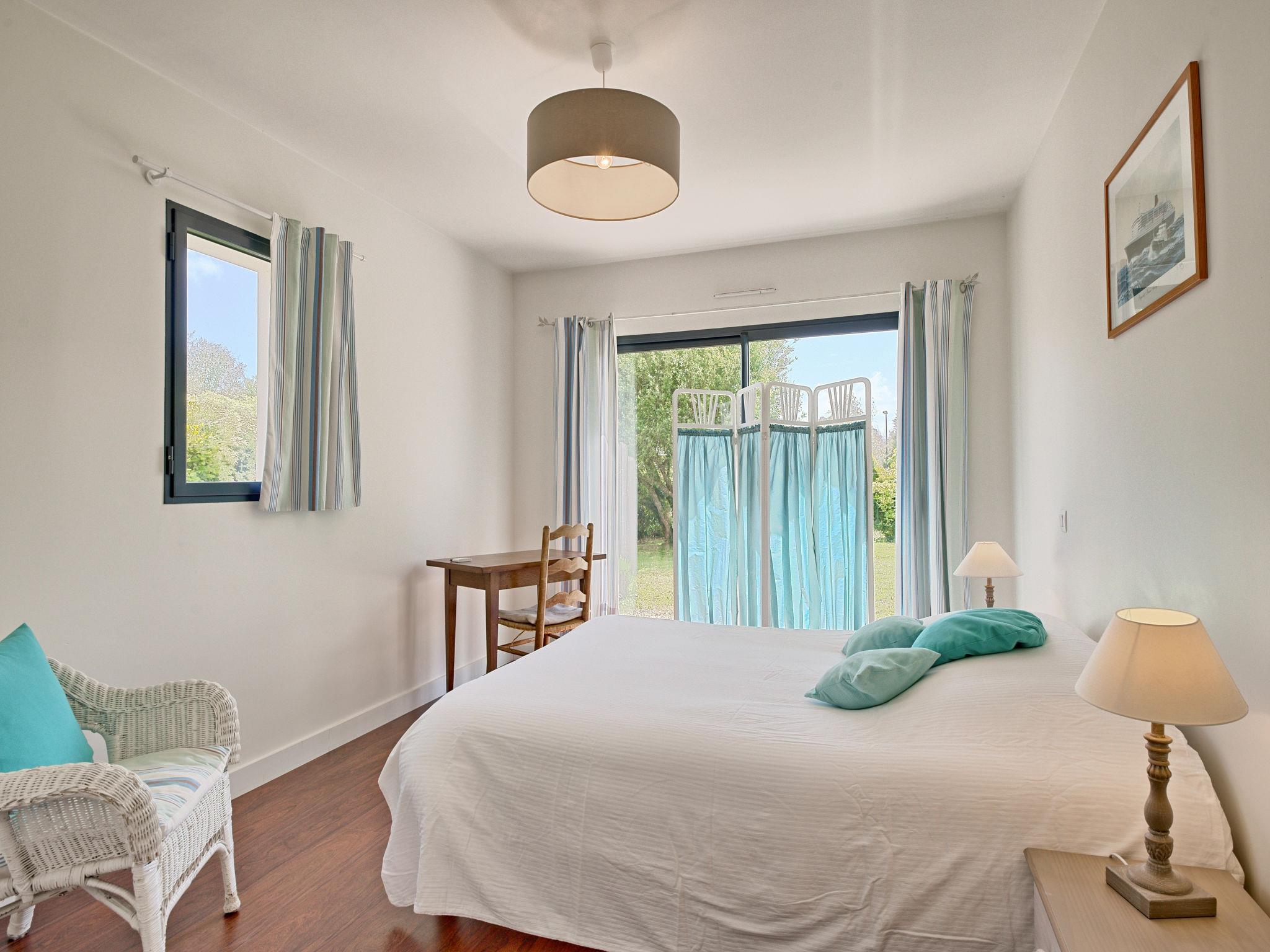 Large single-family house "Charme de Kerfago", built in 2013. In the district of Kerfago 800 m from the centre of Saint-Gildas-de-Rhuys, 7 km from the centre of Sarzeau, 350 m from the sea. Private: natural garden 850 m2 (fenced). In the house: storage room for bicycles. Storeroom available. Parking (for 3 cars) on the premises. Shop 800 m, supermarket 900 m, restaurant, bakery 600 m, bicycle rental 900 m, bus stop 800 m, sandy beach "Plage de Kerfago" 350 m. Sports harbour 400 m, sailing school 2 km, tennis 500 m. Nearby attractions: Golfe du Morbihan 5 km, Port-Crouesty-Arzon 9 km, Vannes 32 km, Carnac (Megalithes) 60 km. Hiking paths: GR34. The owner does not accept any youth groups.
