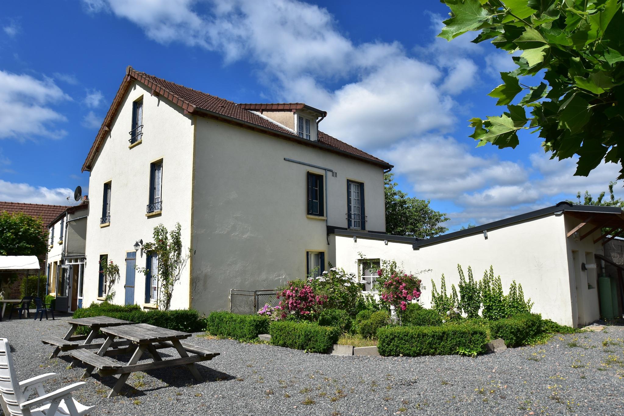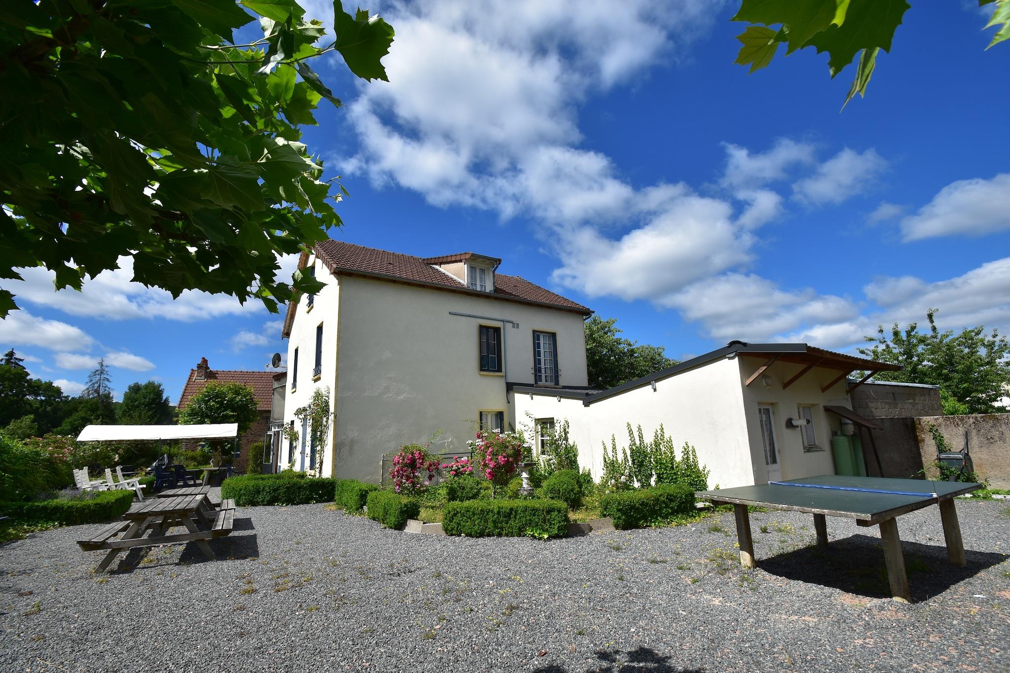 Centralheating. On the side there`s a sitting area with BBQ, tabletennis and bicyclettes. Open playground at the house. Ideal house for families and groups, because its space. Collective entrance with another house on the samen grounds.One bedroom is suitable for disabled people. 2 cots Within walking distance you'll find an indoor and outdoor swimming pool, tennis courts, playground, casino, minigolf, some restaurants, a few small shops and a supermarket. The village is surroundes by magnificent hills, forests (distance 300m from the house) and brooks, where you can walk, bike, fish and horse-riding. Lac de Settons (320 ha)and Lac de Panneciere (520 ha) are large recreation lakes; "Le Pal" at 60 km's is a large amusemant park and a zoo as well. Golf: 18+5 holes in Magny Cours at 50 km's. Beautiful cities Autun, Vezelay Beaune and also the famous wine areas of Chablis, Loire and Burgundy