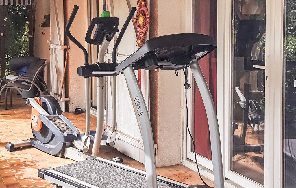 Das Innere des Hauses ist ebenso einladend. Machen Sie es sich im gemütlichen Wohnzimmer auf den Sofas bequem und lassen Sie den Tag bei einem guten Buch ausklingen. Für sportliche Aktivitäten bietet das Haus sogar einen eigenen Fitnessbereich mit einem Laufband, einem Hometrainer und einer Tischtennisplatte.