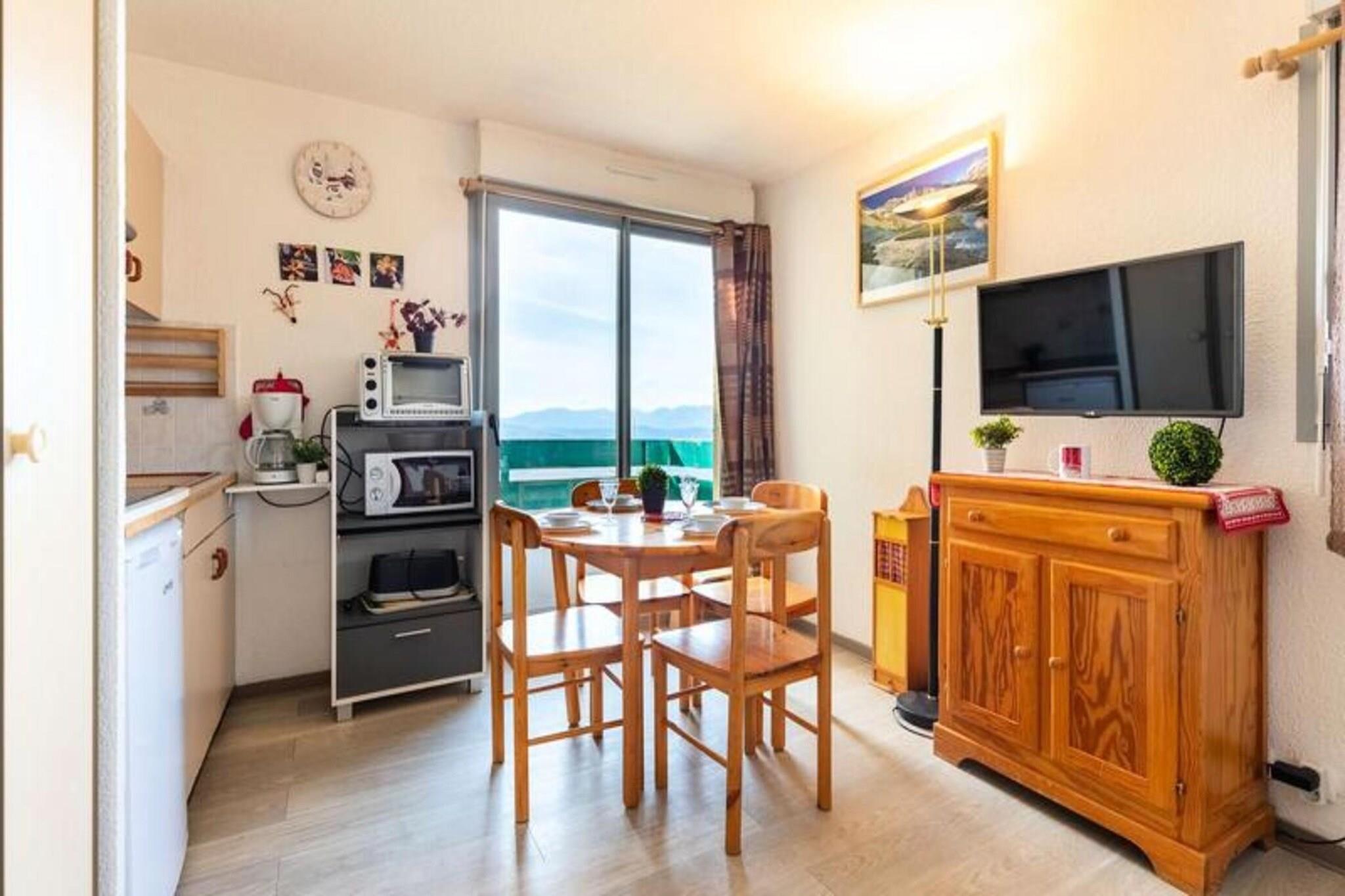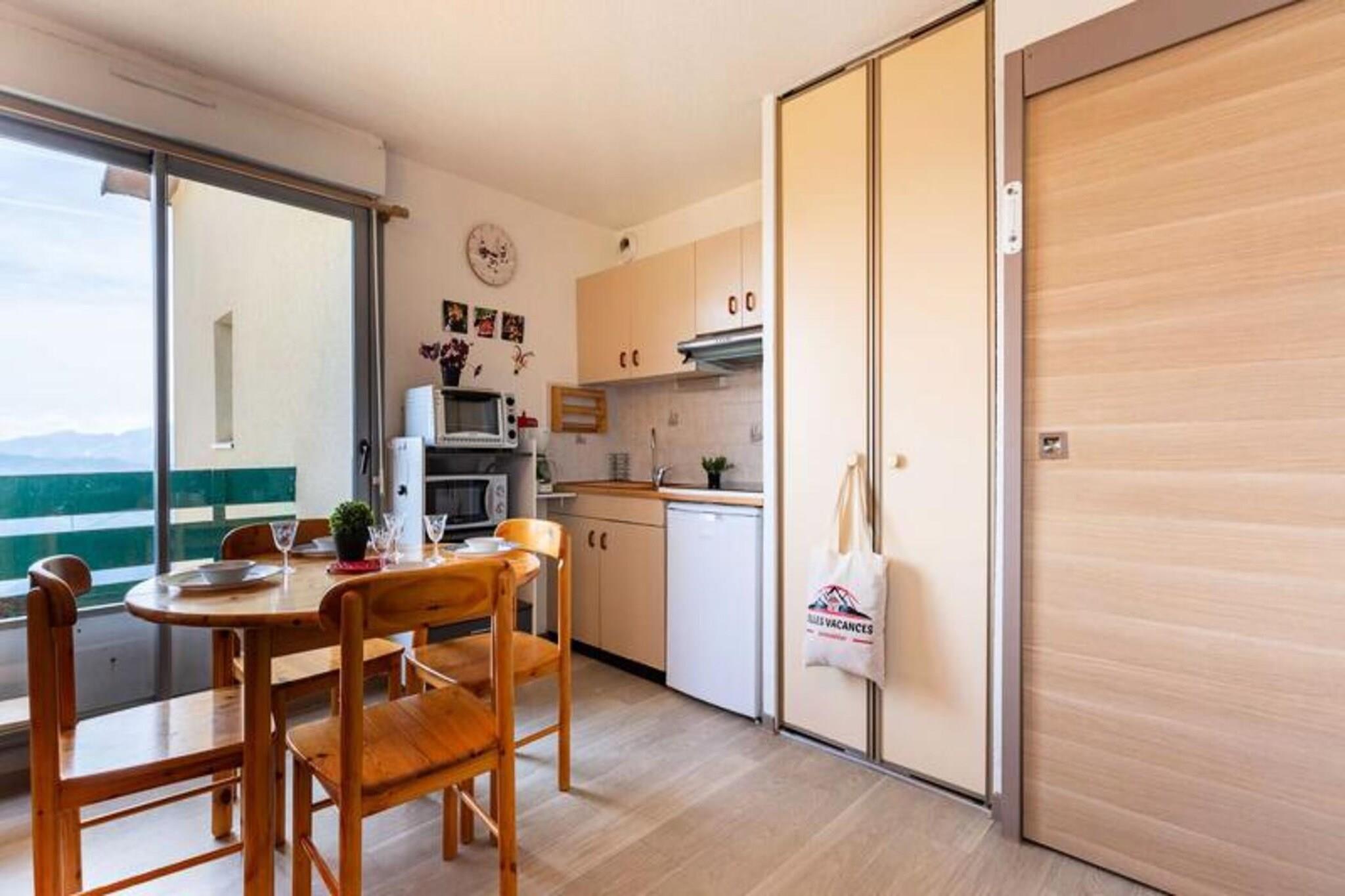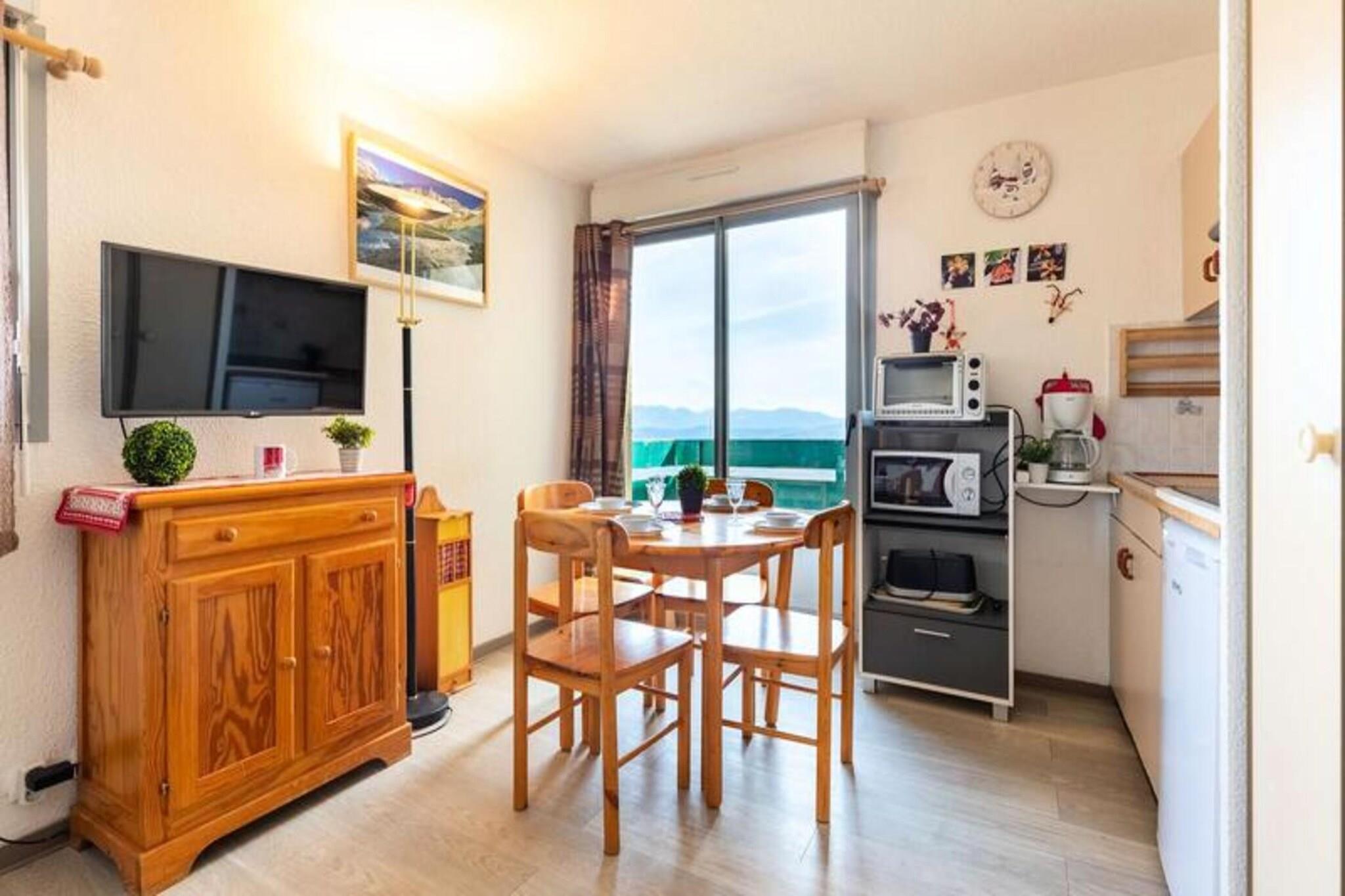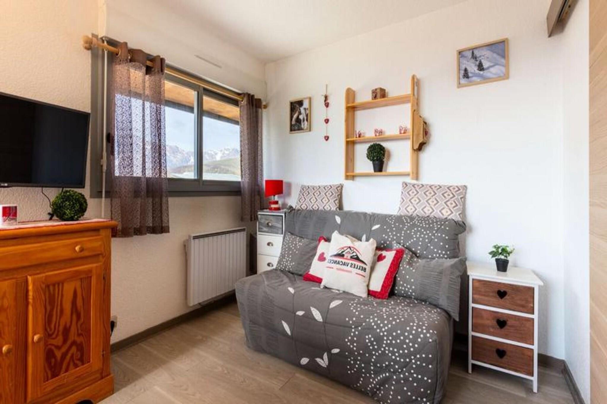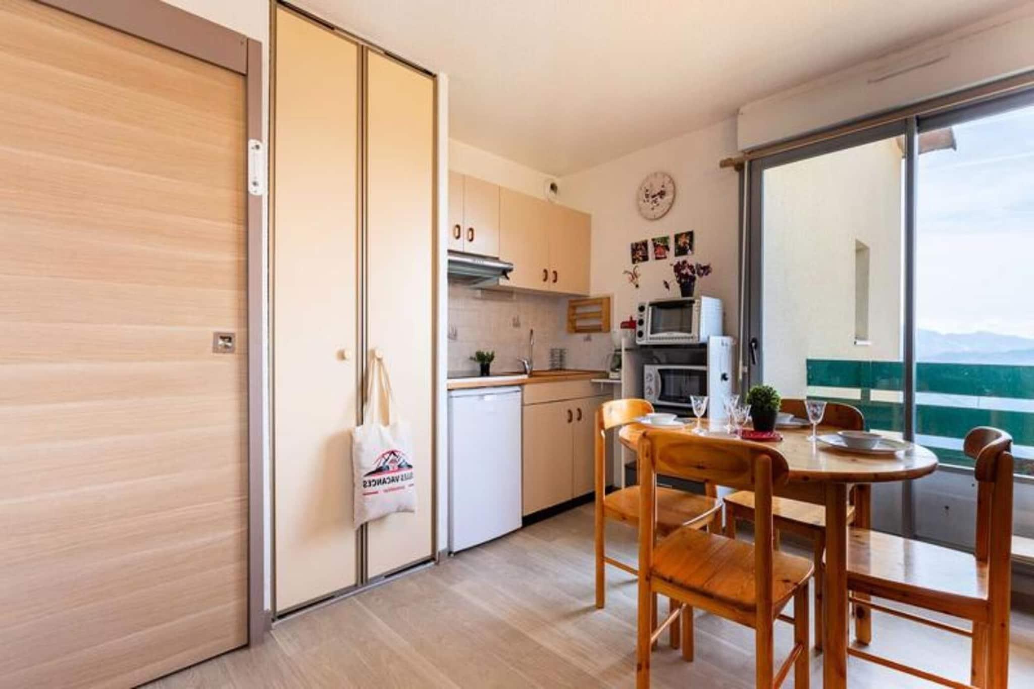 This cozy apartment, ideal for a group or family of up to four, offers direct access to the slopes, ensuring you can make the most of your time in the mountains. A large window frames breathtaking views of the Pyrenees, filling the space with natural light and serenity. The property is thoughtfully designed for a comfortable stay, with heating provided for warmth and relaxation. Please note that pets are not allowed, ensuring a clean and tranquil environment for all guests. Located just 100 meters from the slopes, this property is a dream destination for skiing and snowboarding enthusiasts. Within 300 meters, you’ll find a selection of cafes, restaurants, and shops, offering local delicacies and convenient options for your stay. Outdoor adventure awaits with activities such as snowshoeing, snowmobiling, and canyoning, all organized by certified professionals. The lively surroundings ensure that whether you’re seeking relaxation or adventure, there’s something for everyone. The apartment features a practical and well-equipped kitchenette, perfect for preparing meals after a day of outdoor activities. A private bathroom with a shower, sink, and toilet ensures comfort and convenience. The living area is a cozy retreat where you can unwind and soak in the views of the stunning mountain range. With easy access to nearby attractions and all essential amenities, this property is an excellent choice for a memorable mountain getaway.